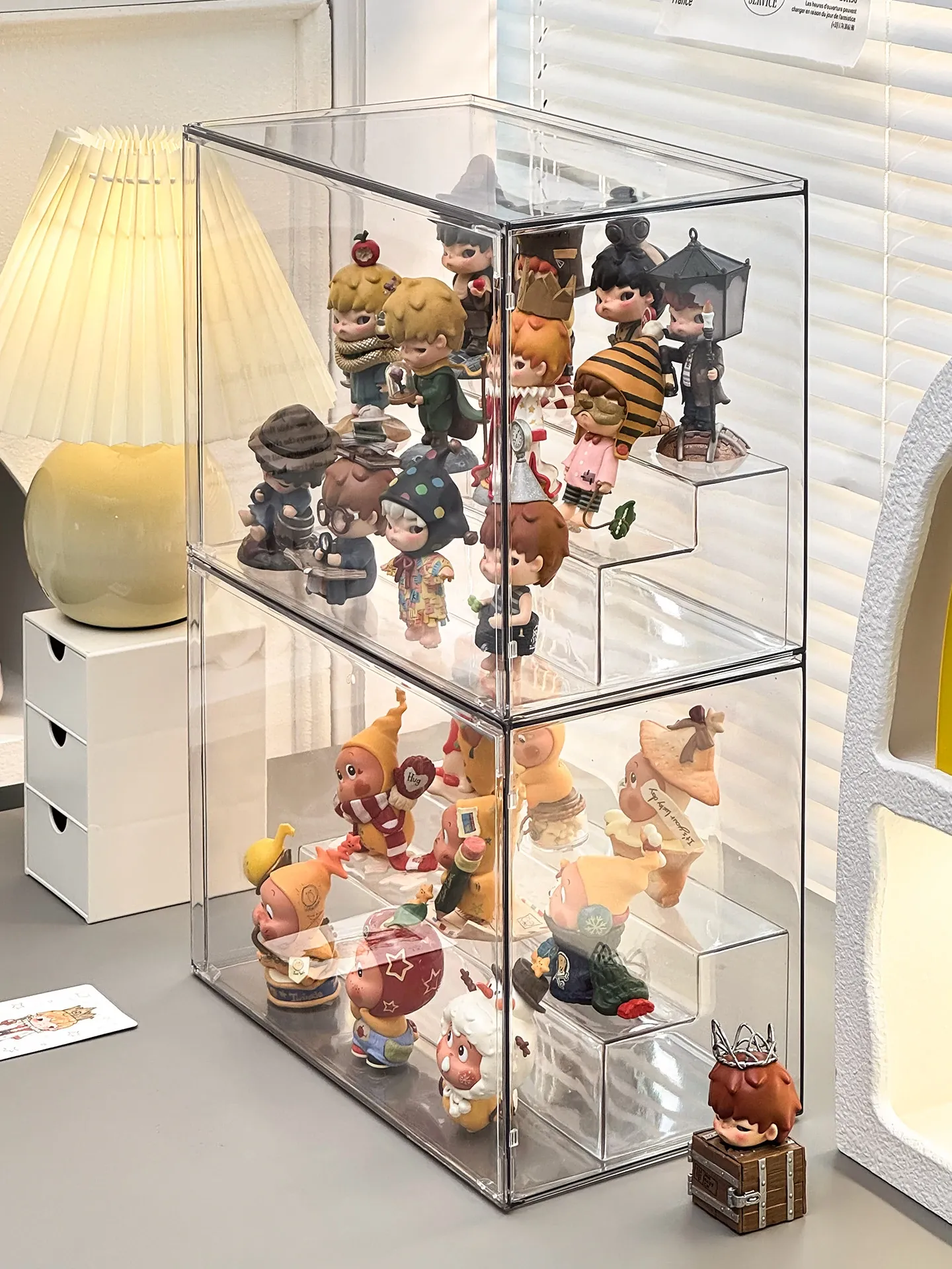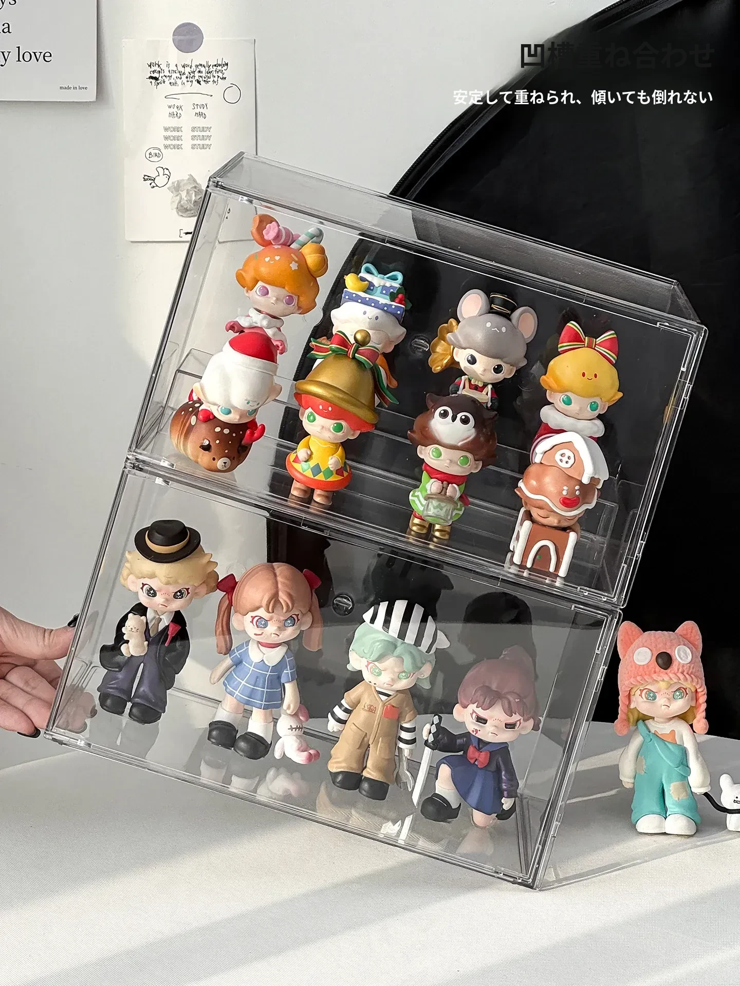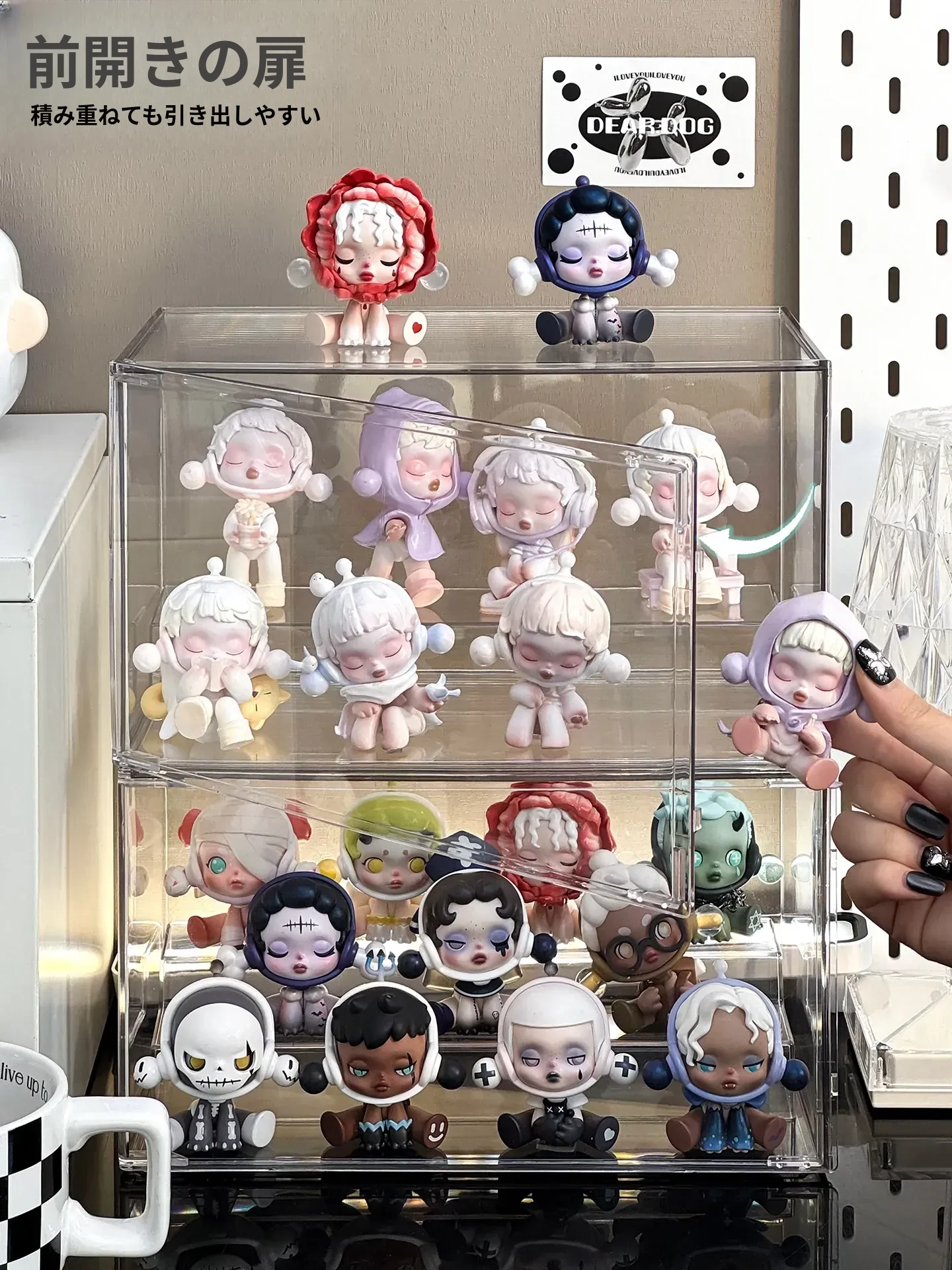 透明アクリル製フィギュアディスプレイケース - SP星人のブラインドボックス収納ボックス!ほこりから守るおしゃれな階段型置物棚で、あなたのコレクションを美しく演出!