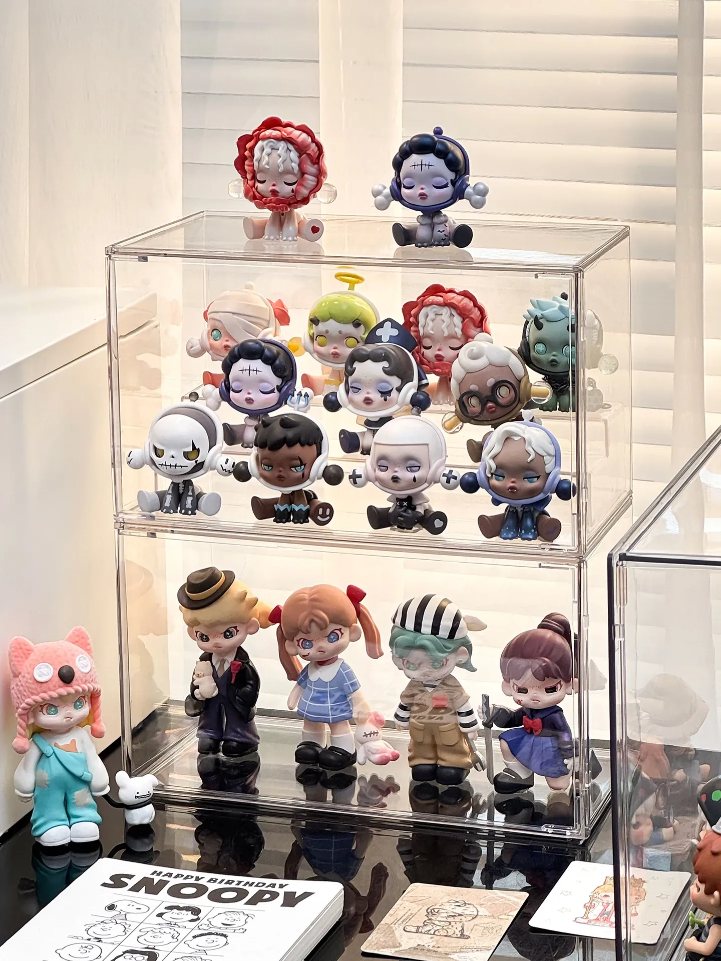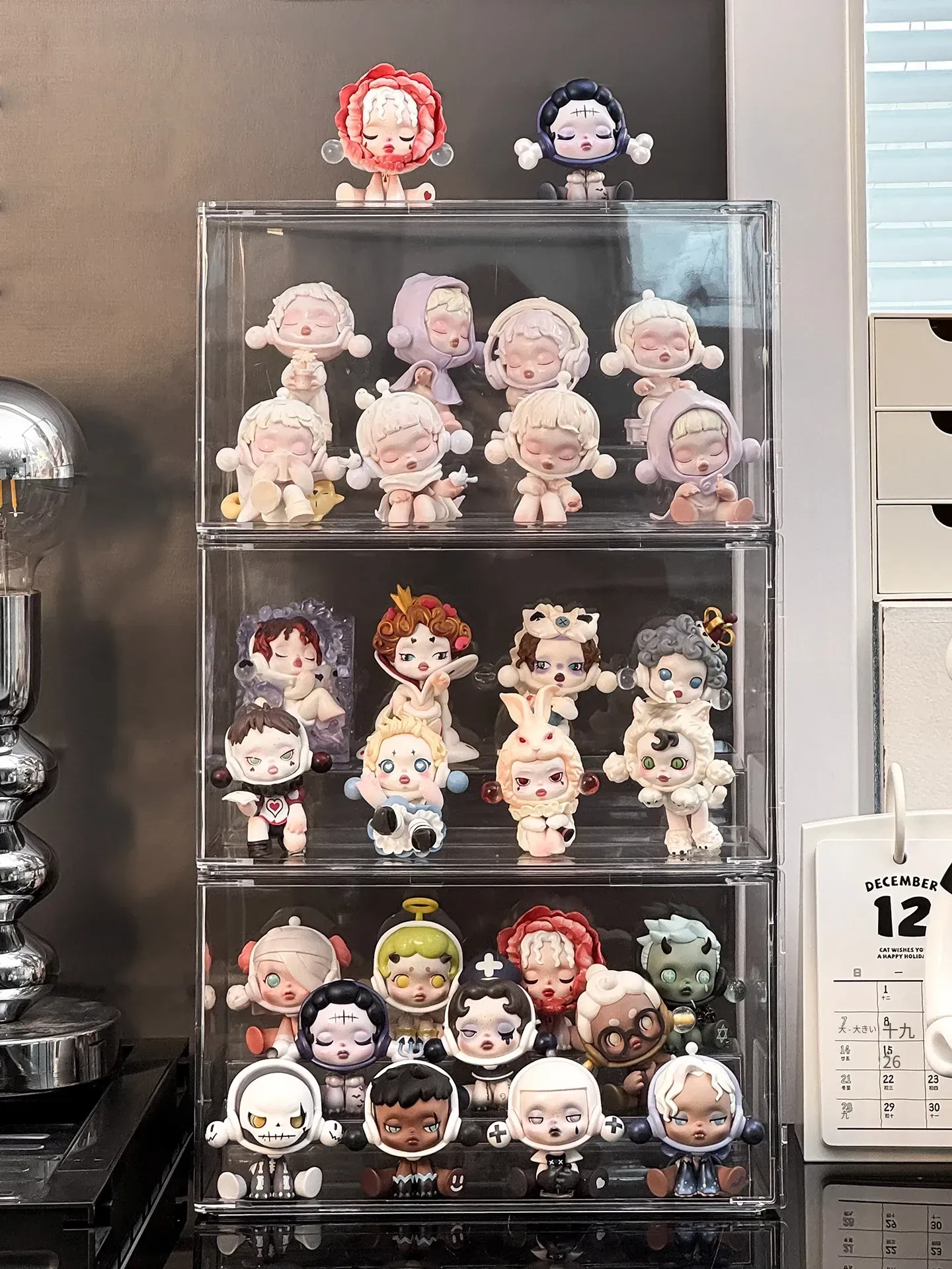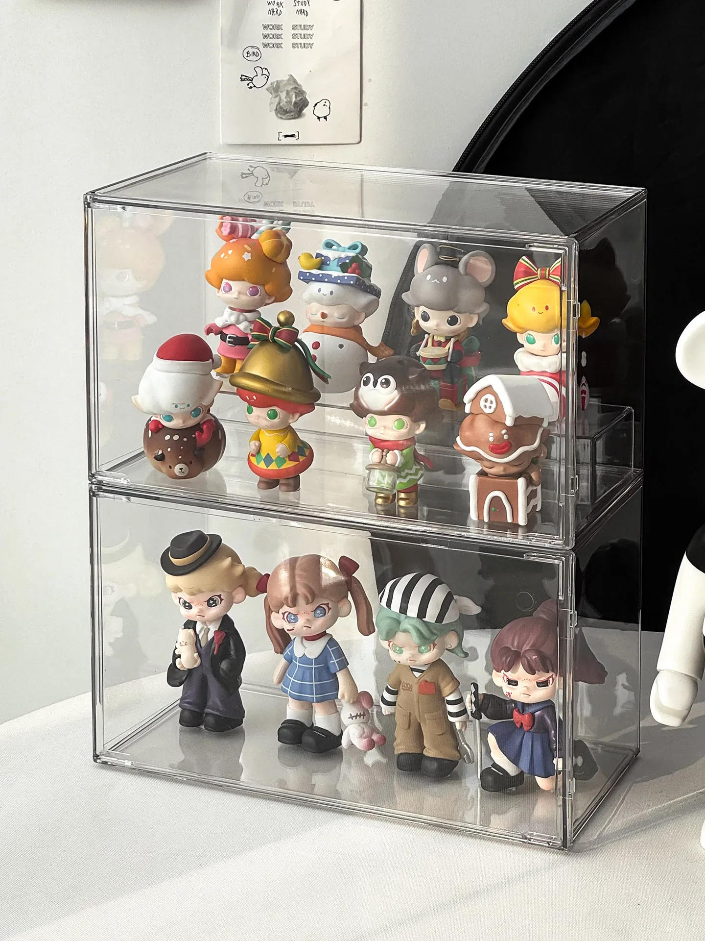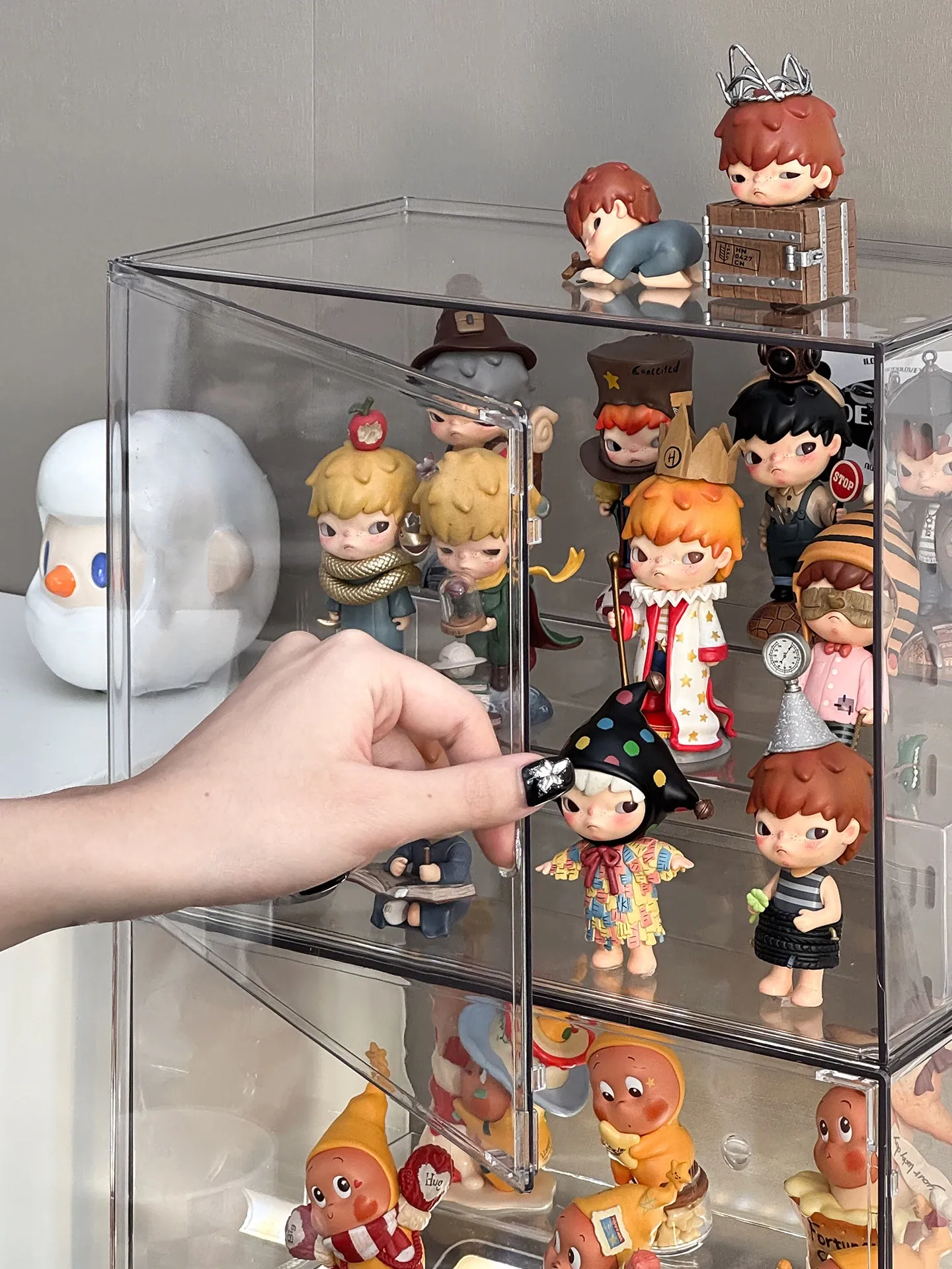 透明アクリル製フィギュアディスプレイケース - SP星人のブラインドボックス収納ボックス!ほこりから守るおしゃれな階段型置物棚で、あなたのコレクションを美しく演出!