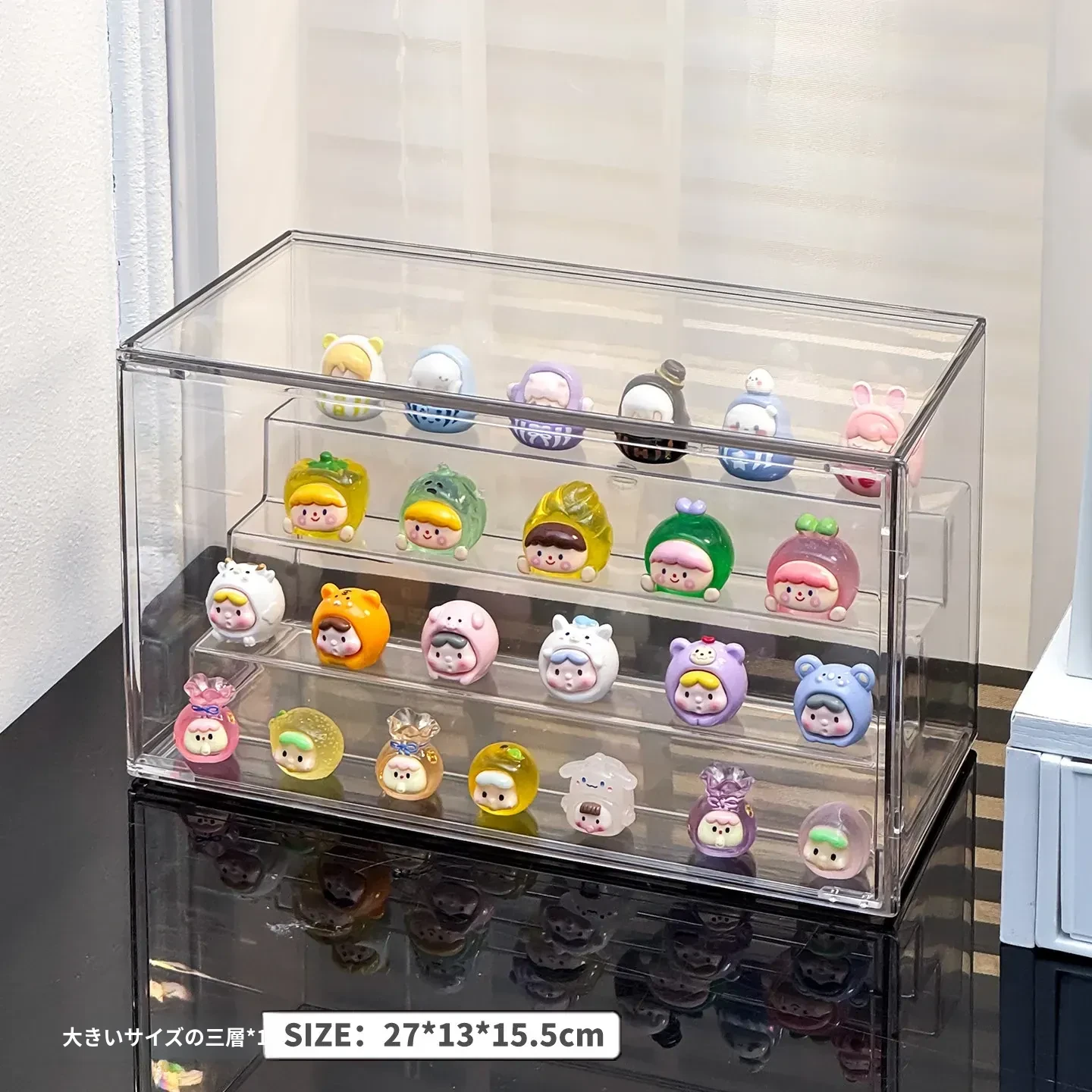 【大号-階段付き3段】前開き防塵フィギュアケース-DF-0003-4T