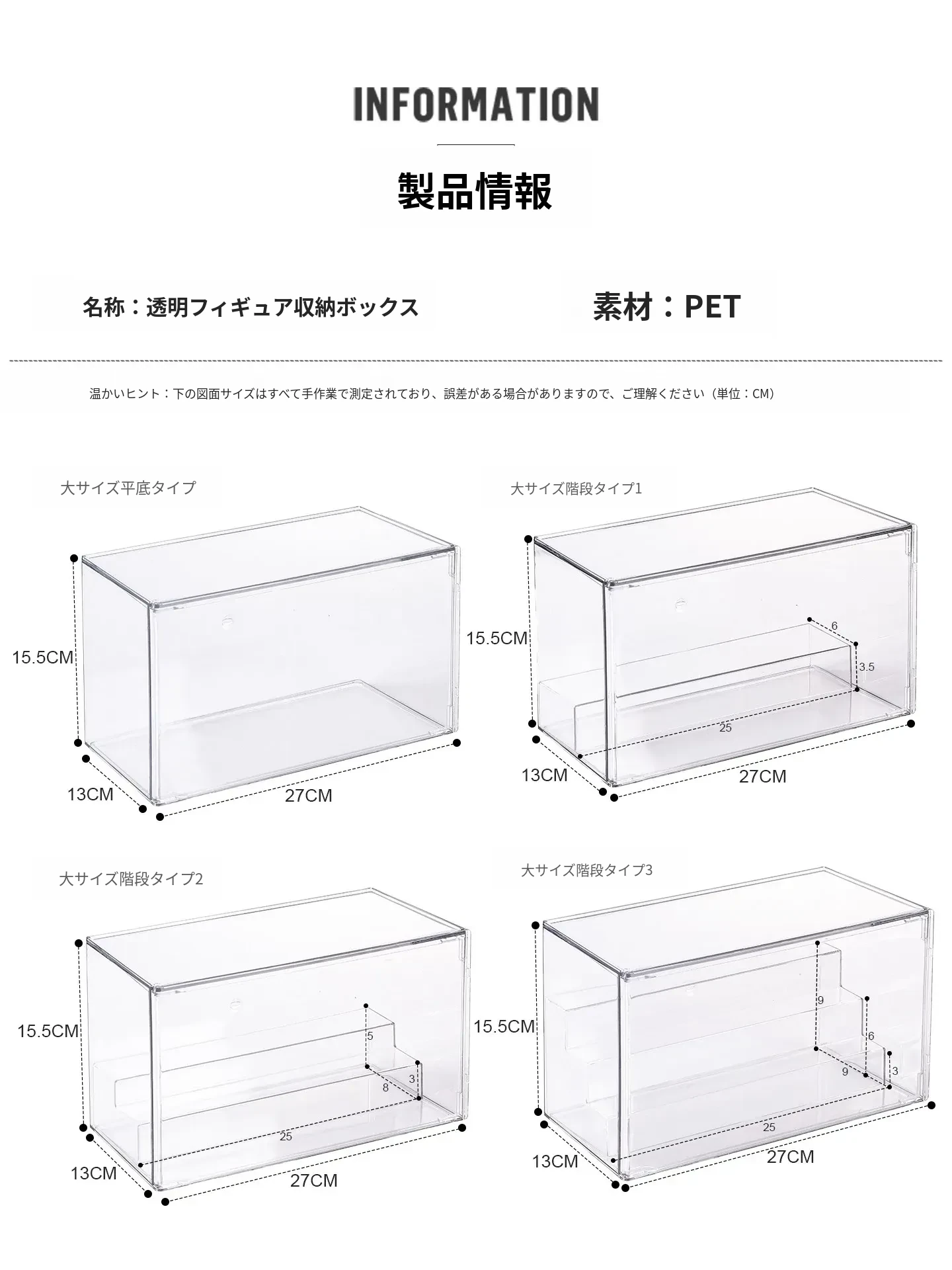 【大号-階段付き1段】前開き防塵フィギュアケース-DF-0003-2T