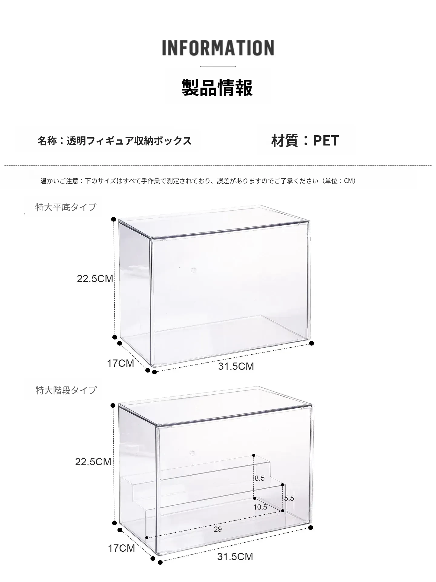 【特大号-階段付き2段】前開き防塵フィギュアケース-DF-0004-T