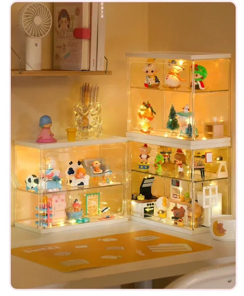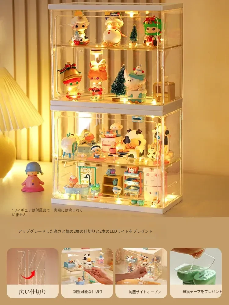 【メイン画像タイプ-アップグレード高-幅広の仕切り-LEDストリップと接着剤付き】2つのフィギュアボックス-SF0164JY