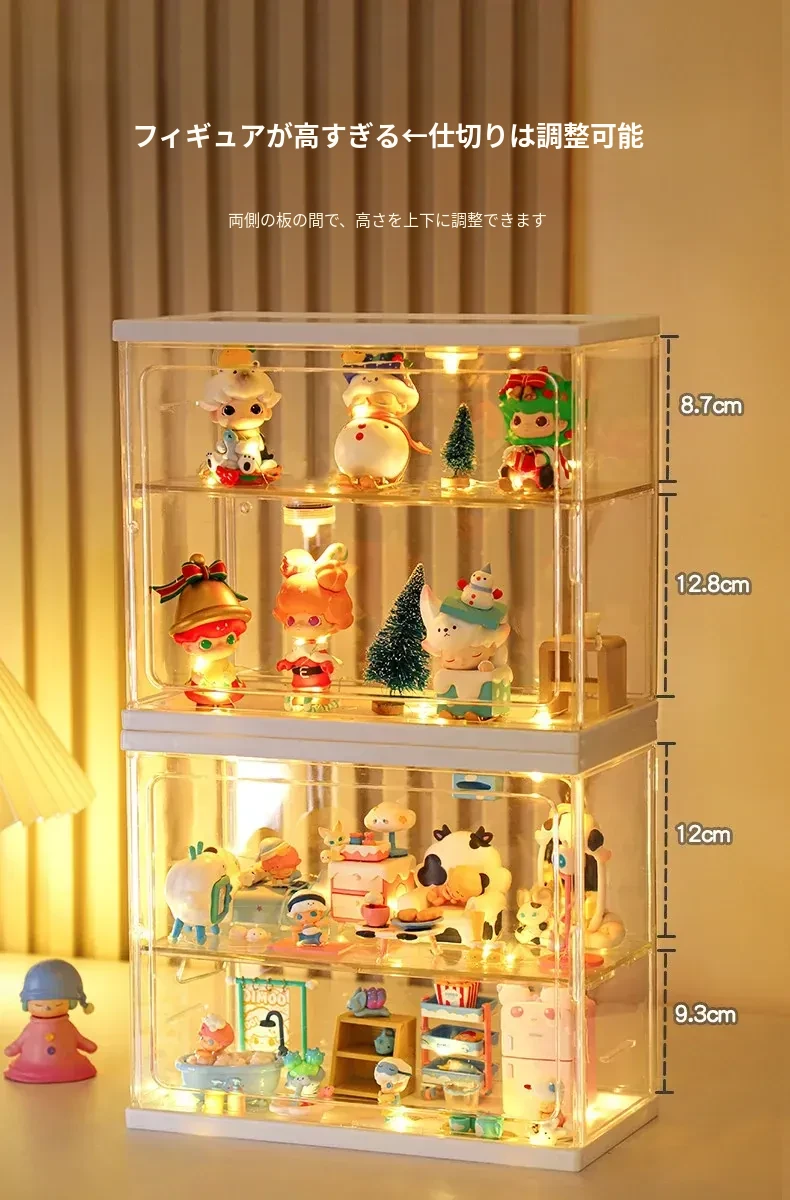 【メイン画像タイプ-アップグレード高-幅広の仕切り-接着剤のみ、LEDストリップなし】単体フィギュアボックス-SF8109