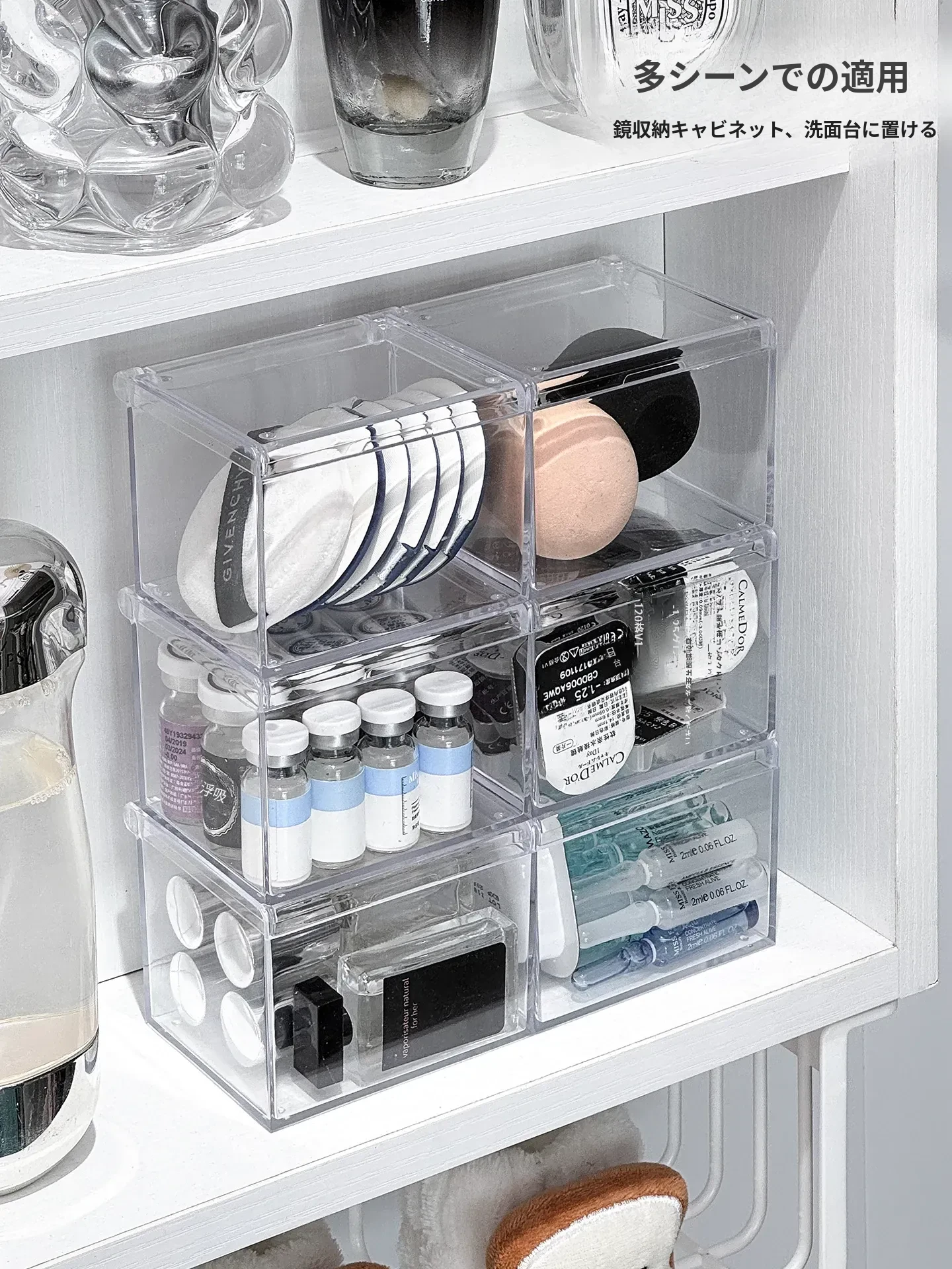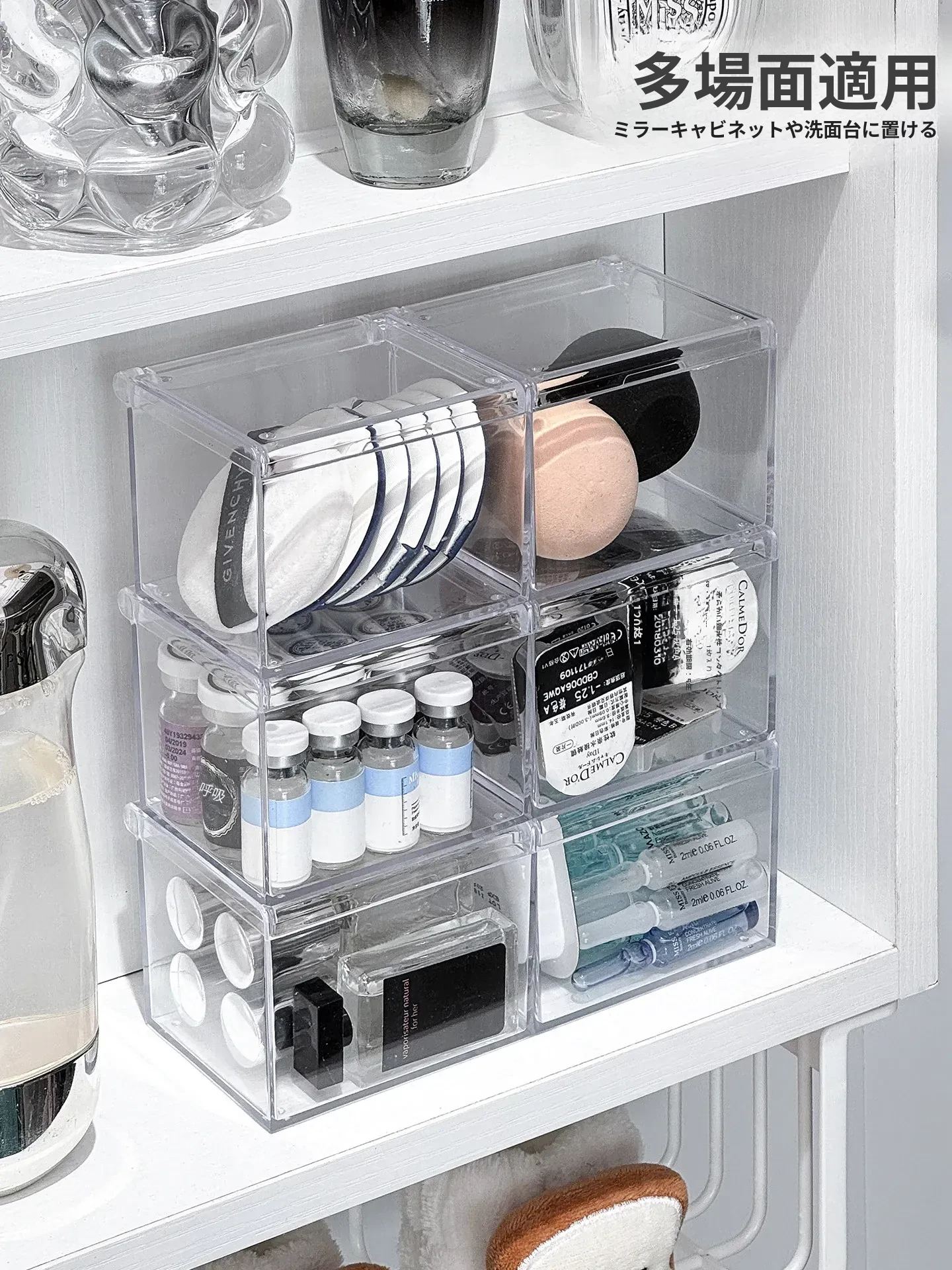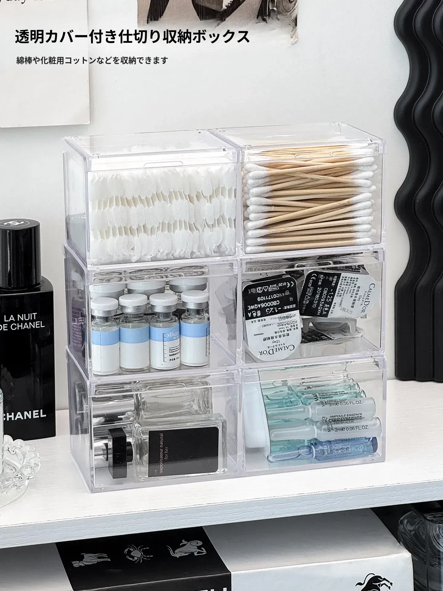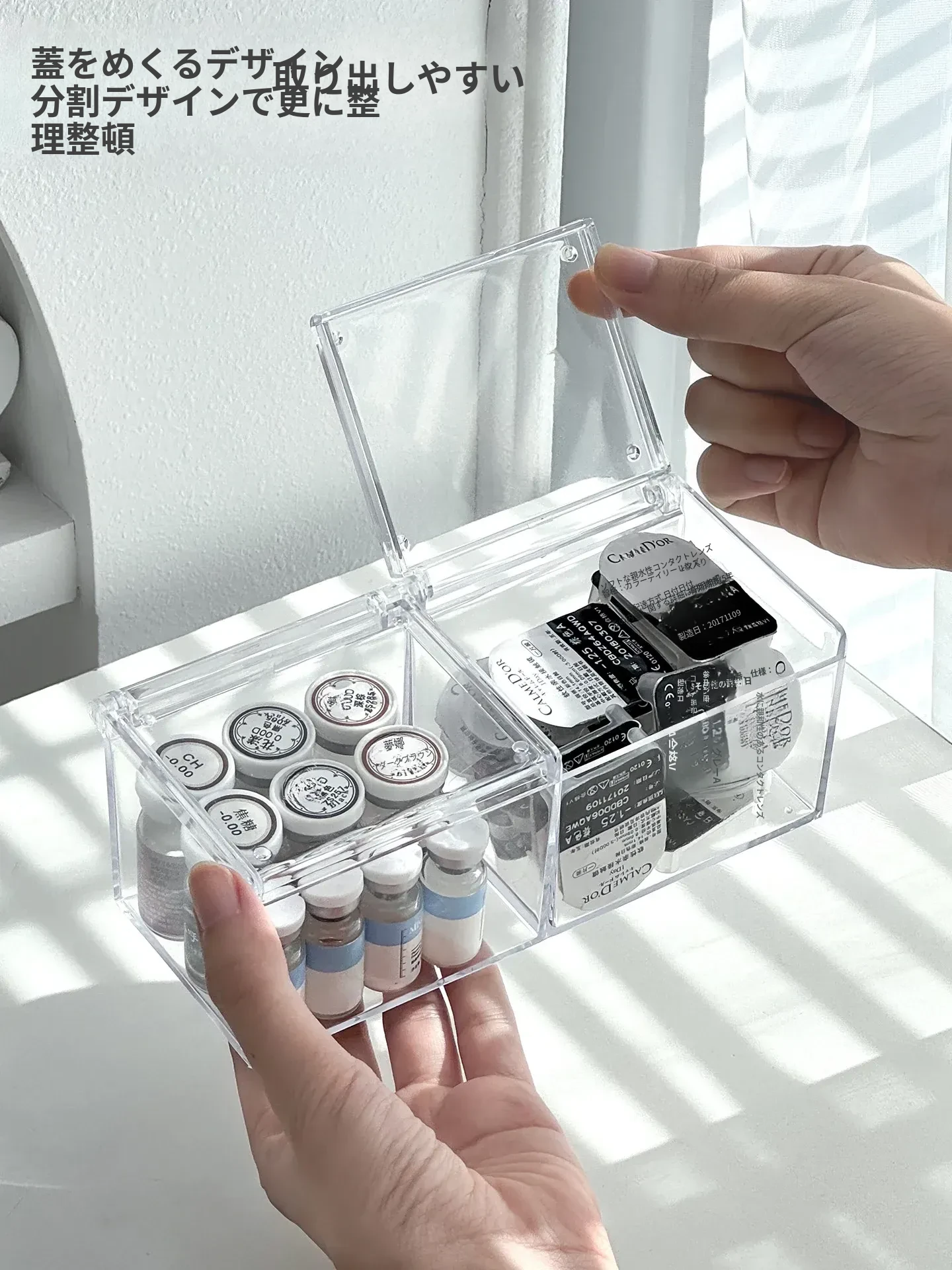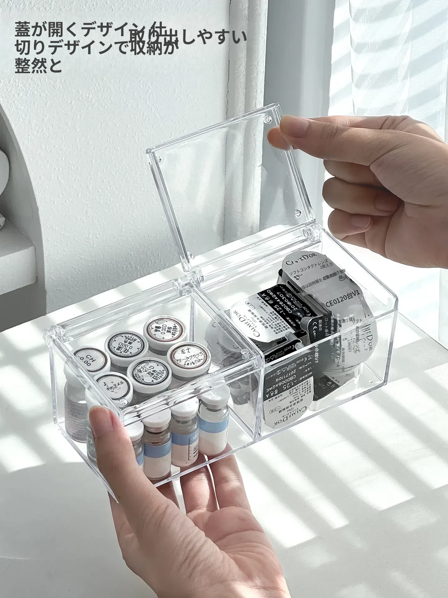 透明防塵ミラー収納ボックス|小物整理の必需品|使い捨てエッセンス&日用コンタクトレンズケース|美しさを保つ整理術!