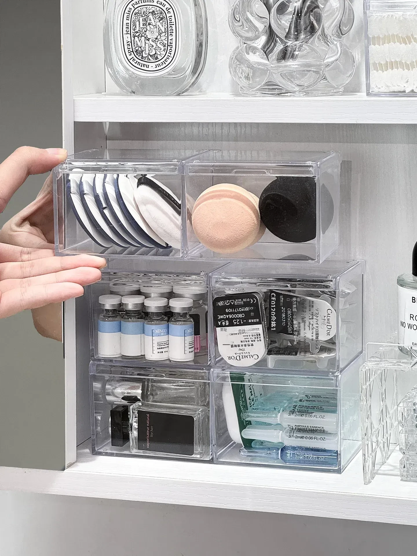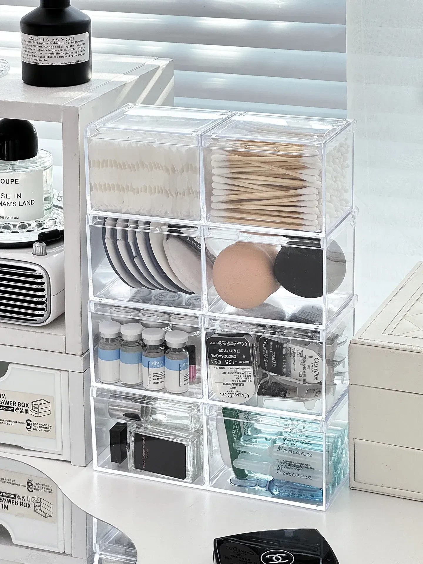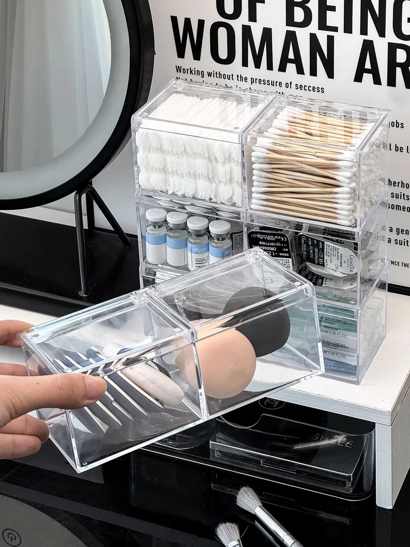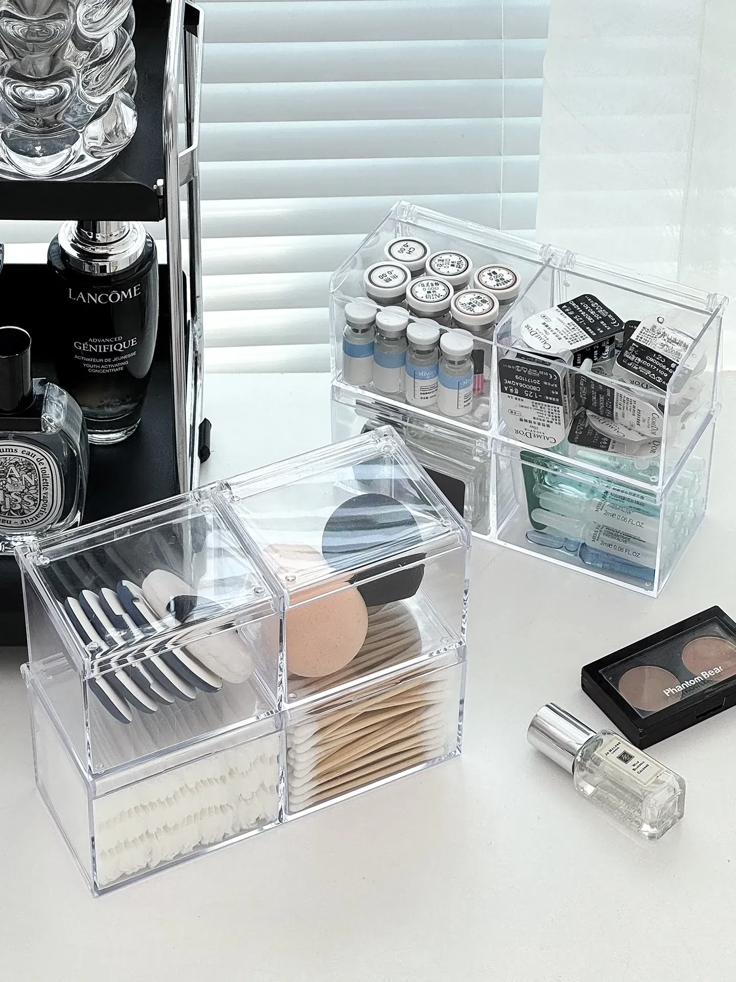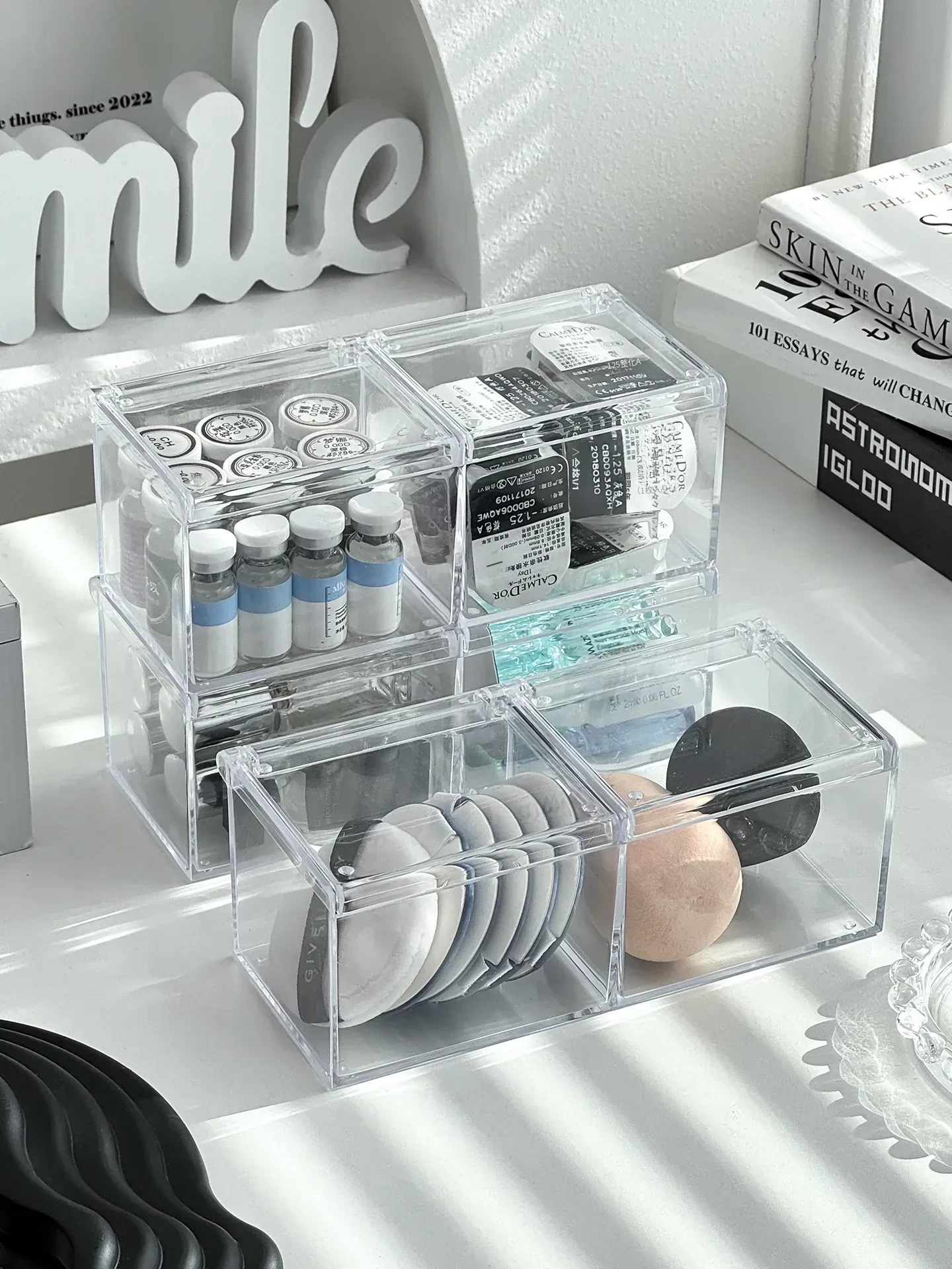 透明防塵ミラー収納ボックス|小物整理の必需品|使い捨てエッセンス&日用コンタクトレンズケース|美しさを保つ整理術!