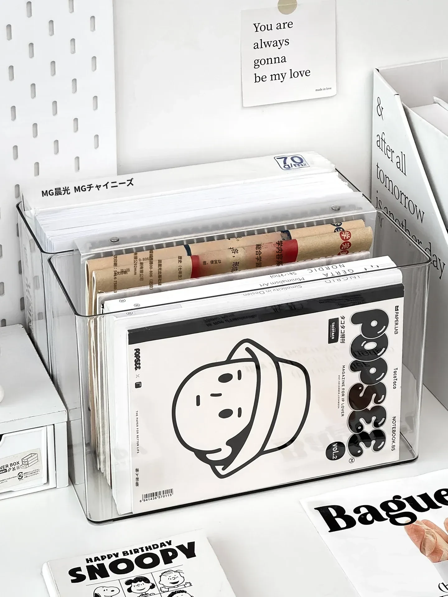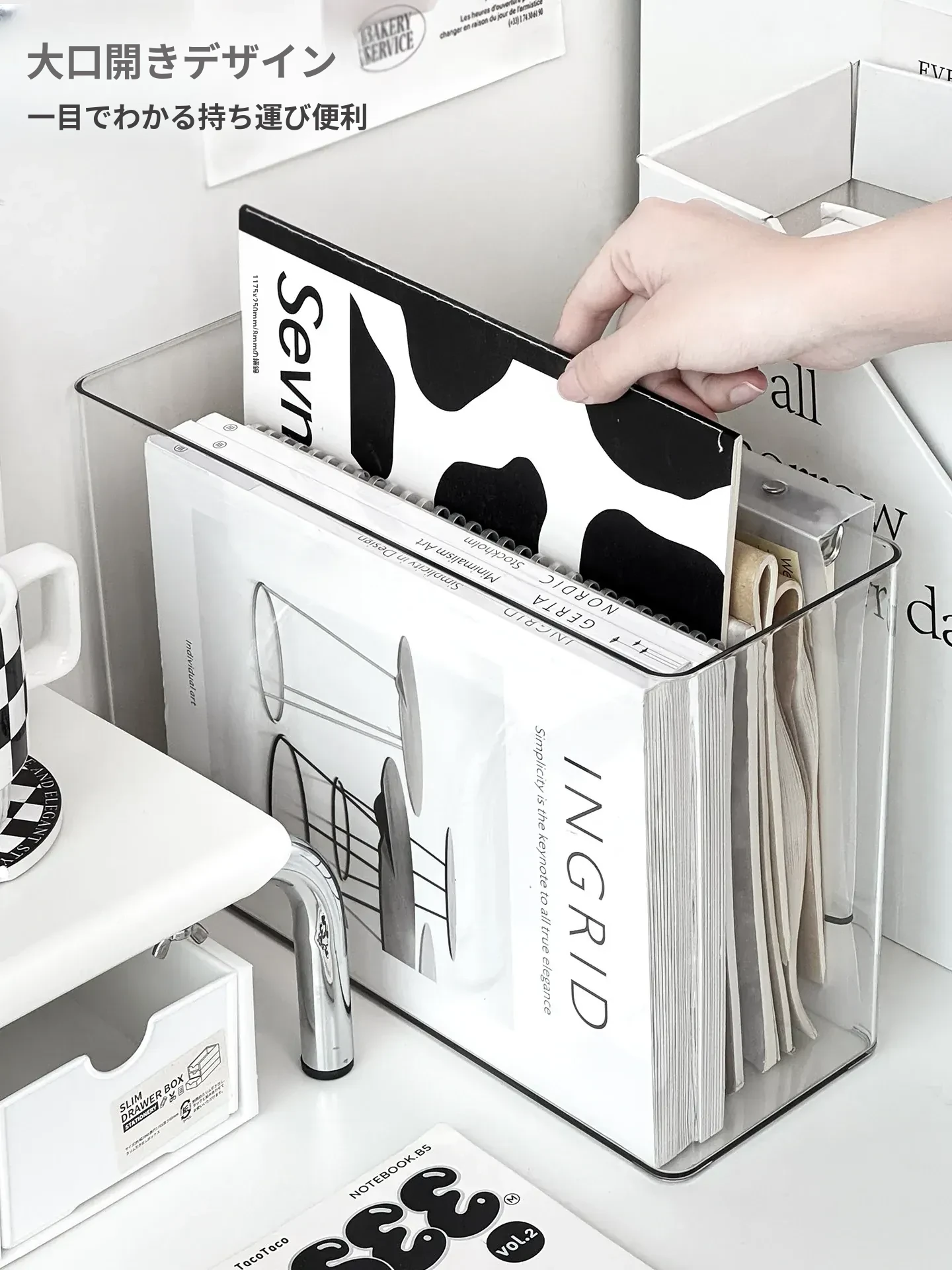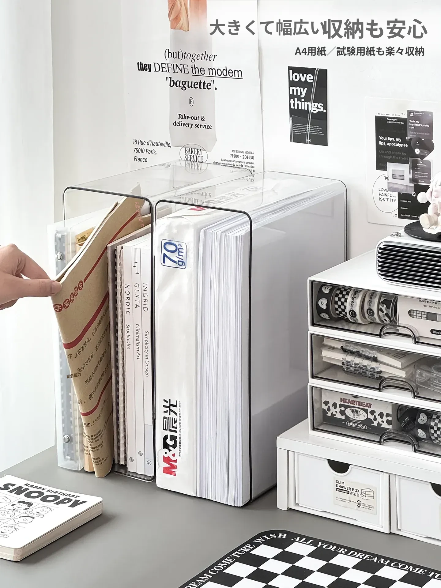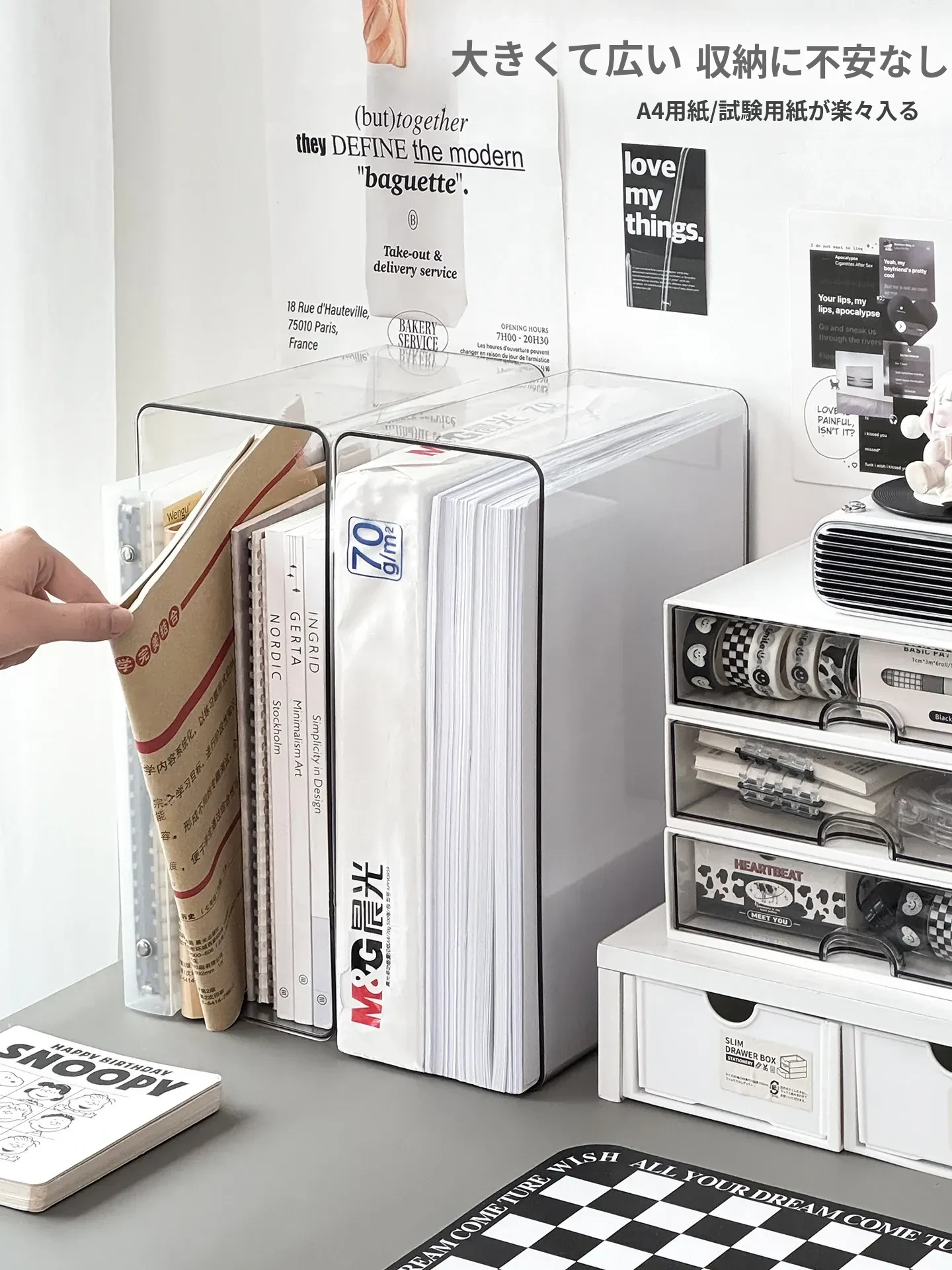 A4サイズのプリント用紙収納ボックス - 透明で大容量!オフィスの書類整理に最適なファイルスタンド。資料や試験用紙をスッキリ収納、作業効率をアップ!