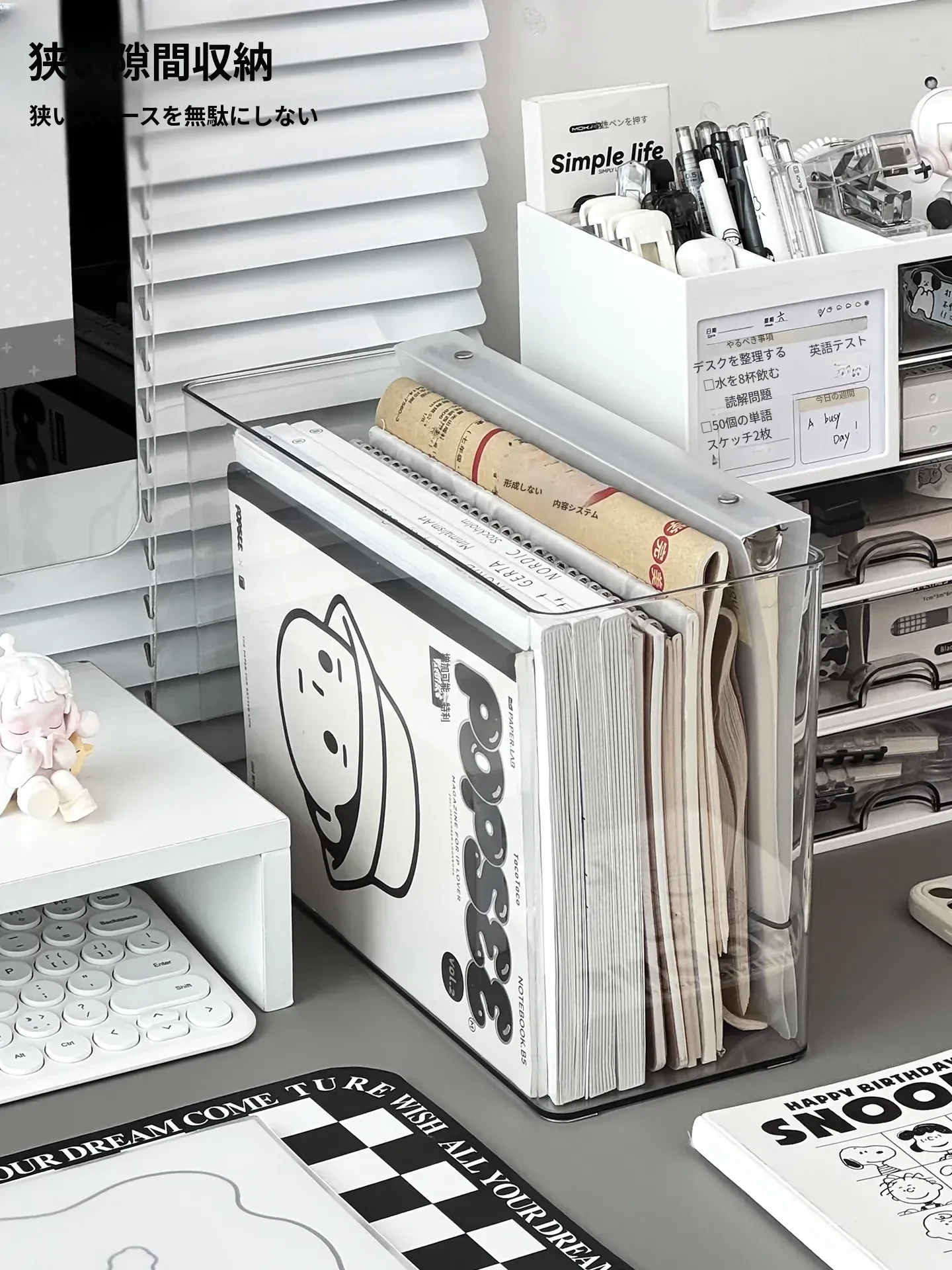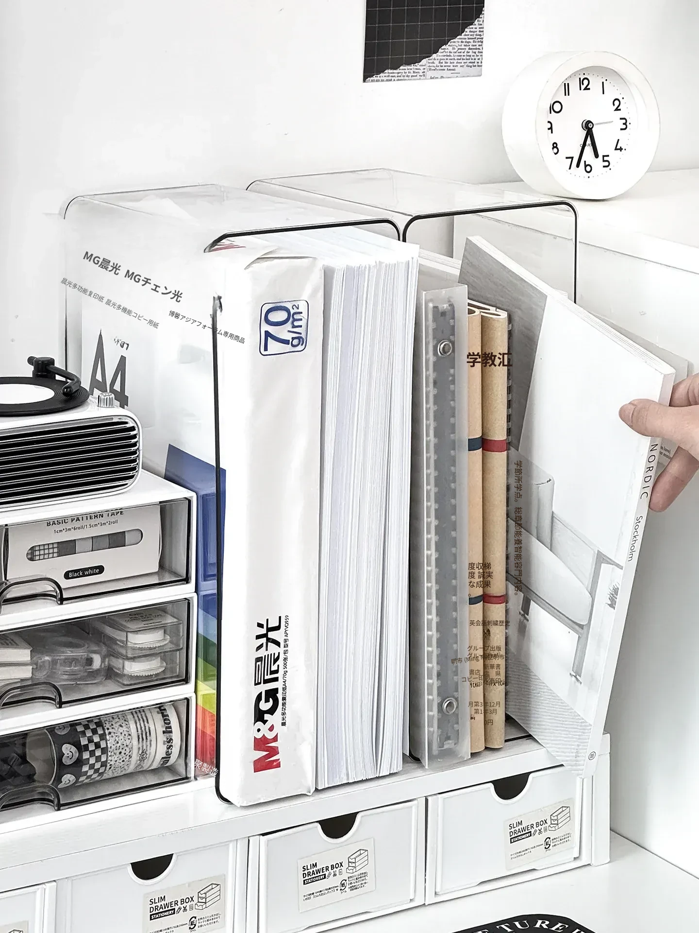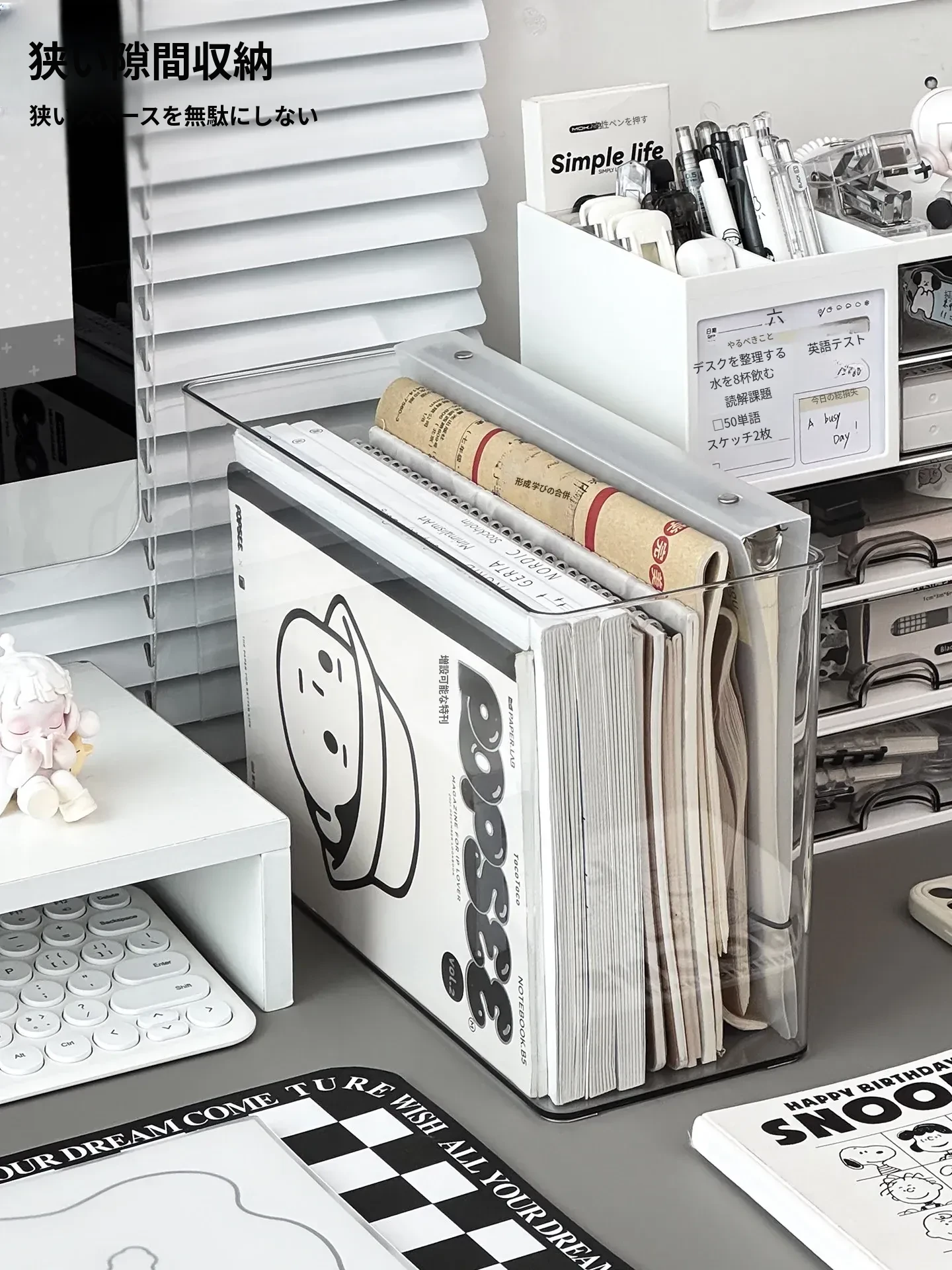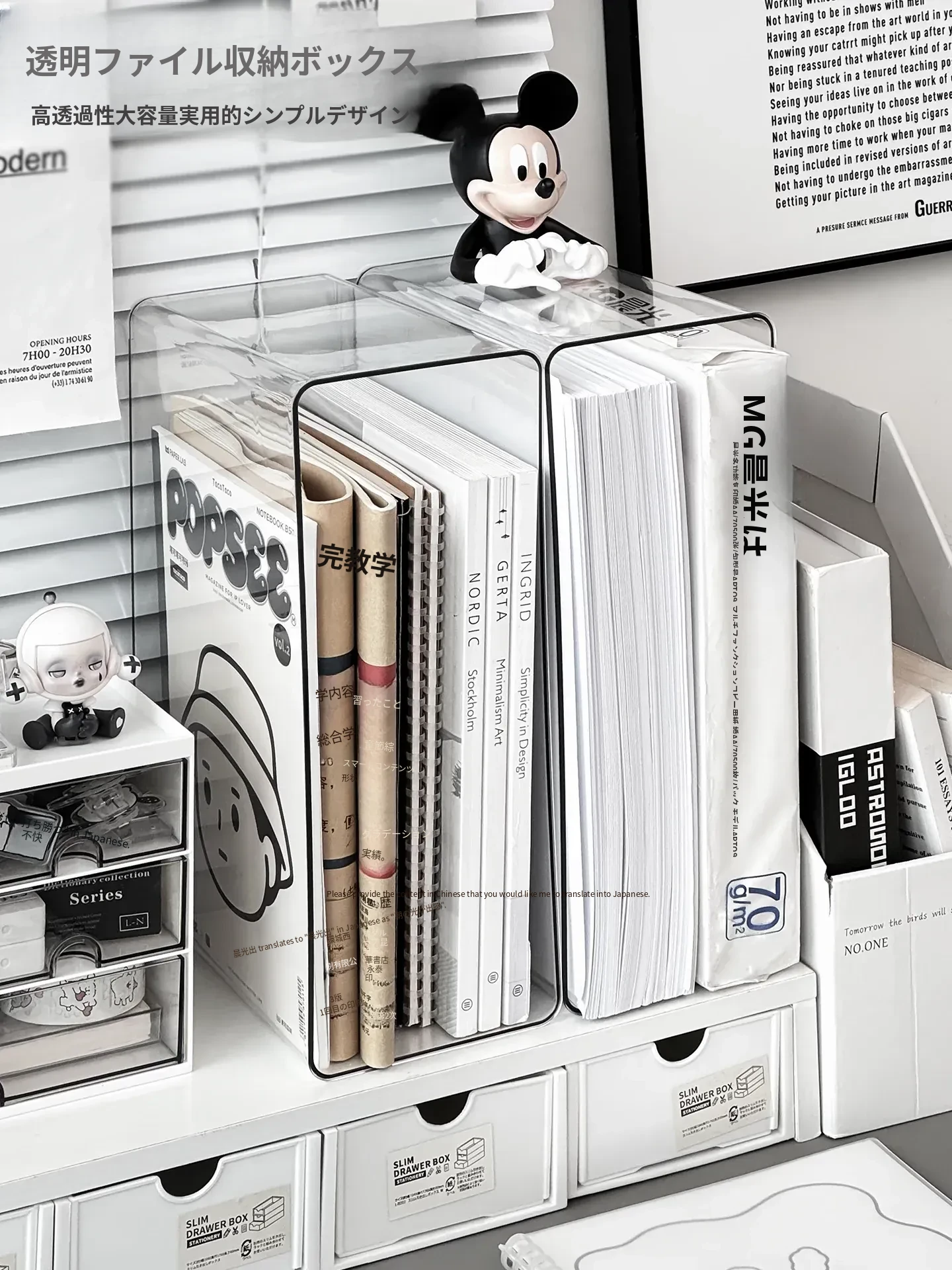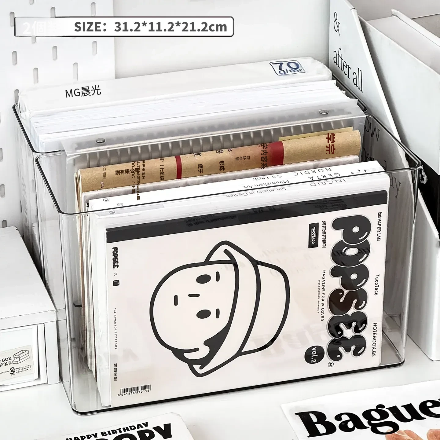 A4サイズのプリント用紙収納ボックス - 透明で大容量!オフィスの書類整理に最適なファイルスタンド。資料や試験用紙をスッキリ収納、作業効率をアップ!