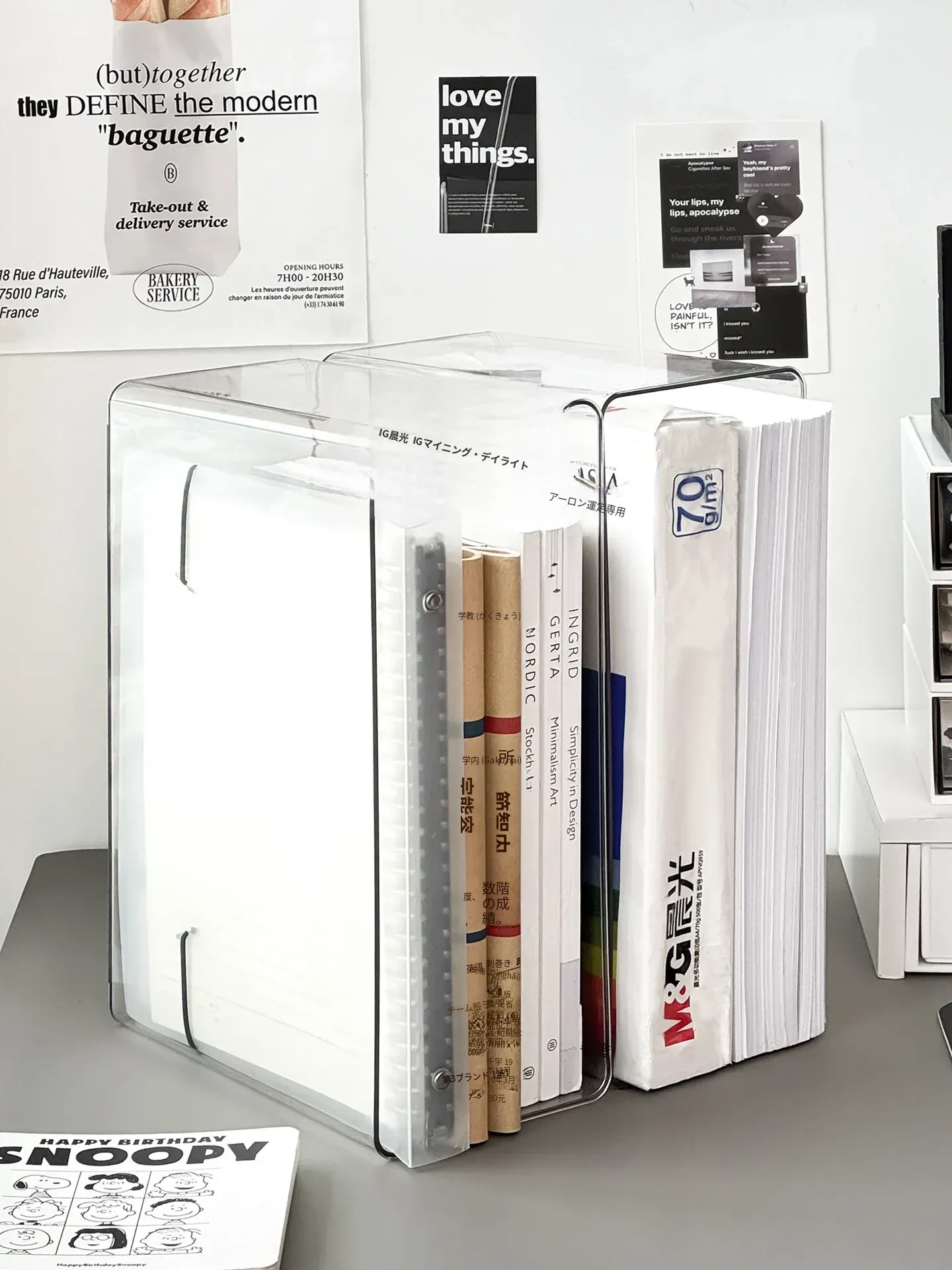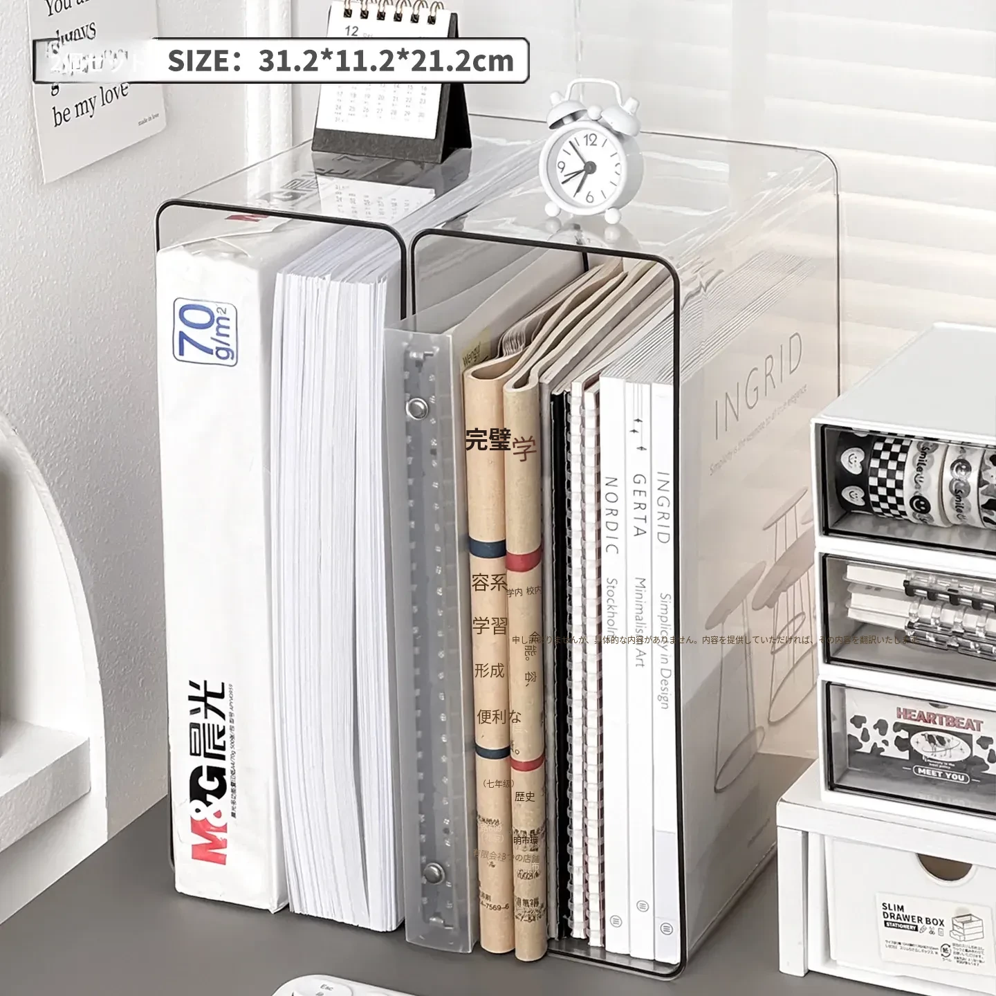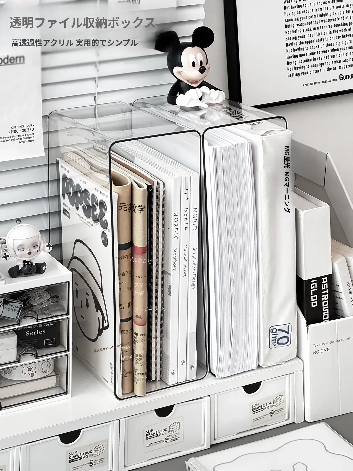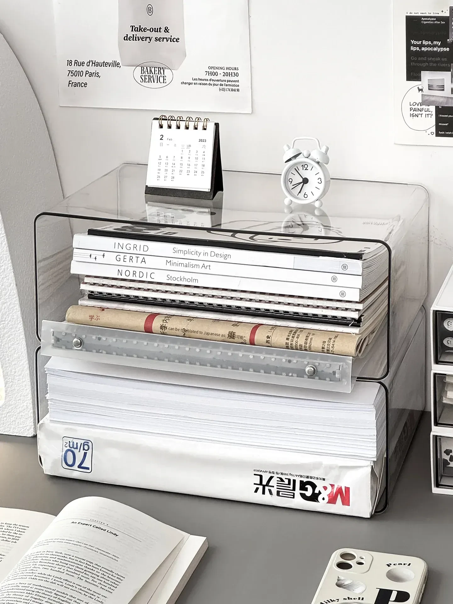 A4サイズのプリント用紙収納ボックス - 透明で大容量!オフィスの書類整理に最適なファイルスタンド。資料や試験用紙をスッキリ収納、作業効率をアップ!