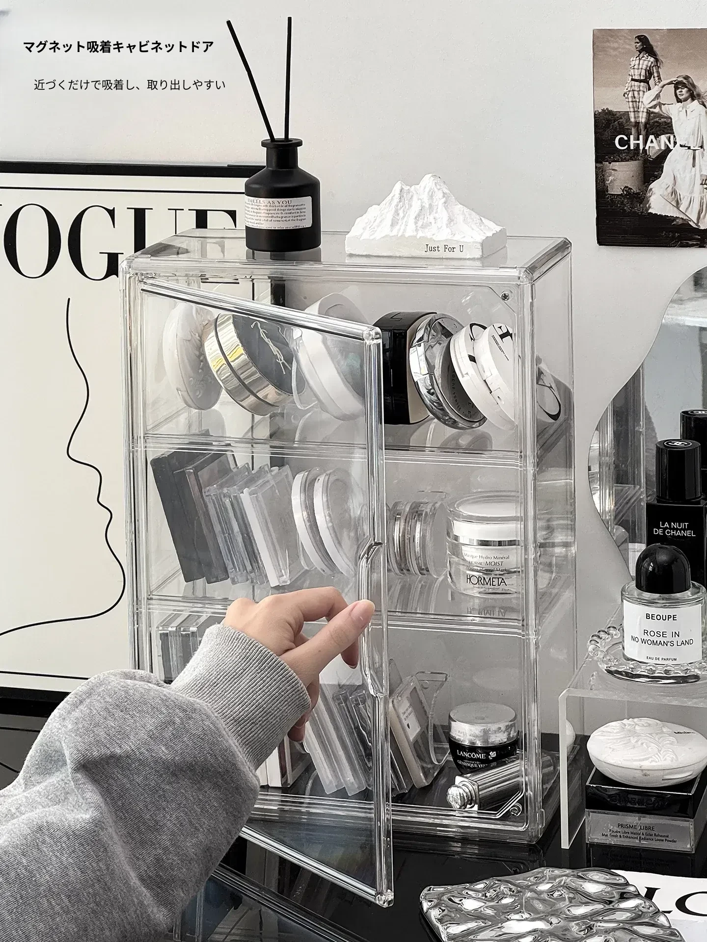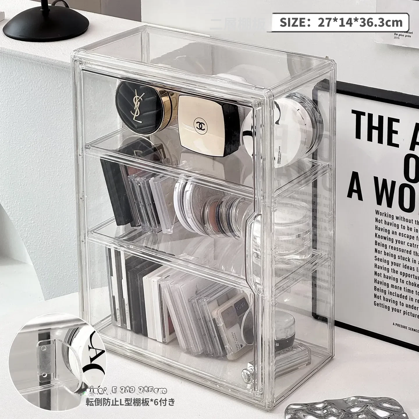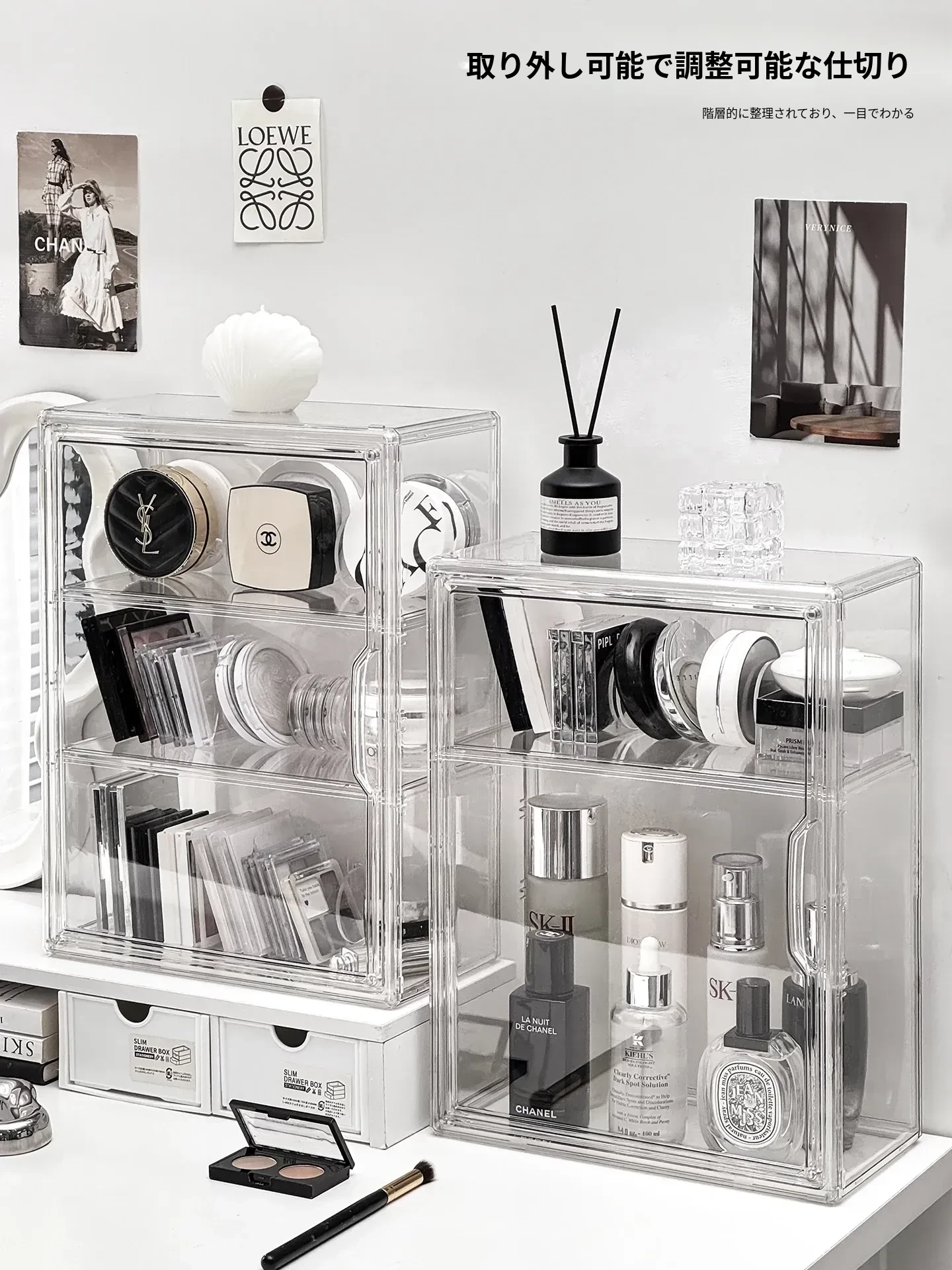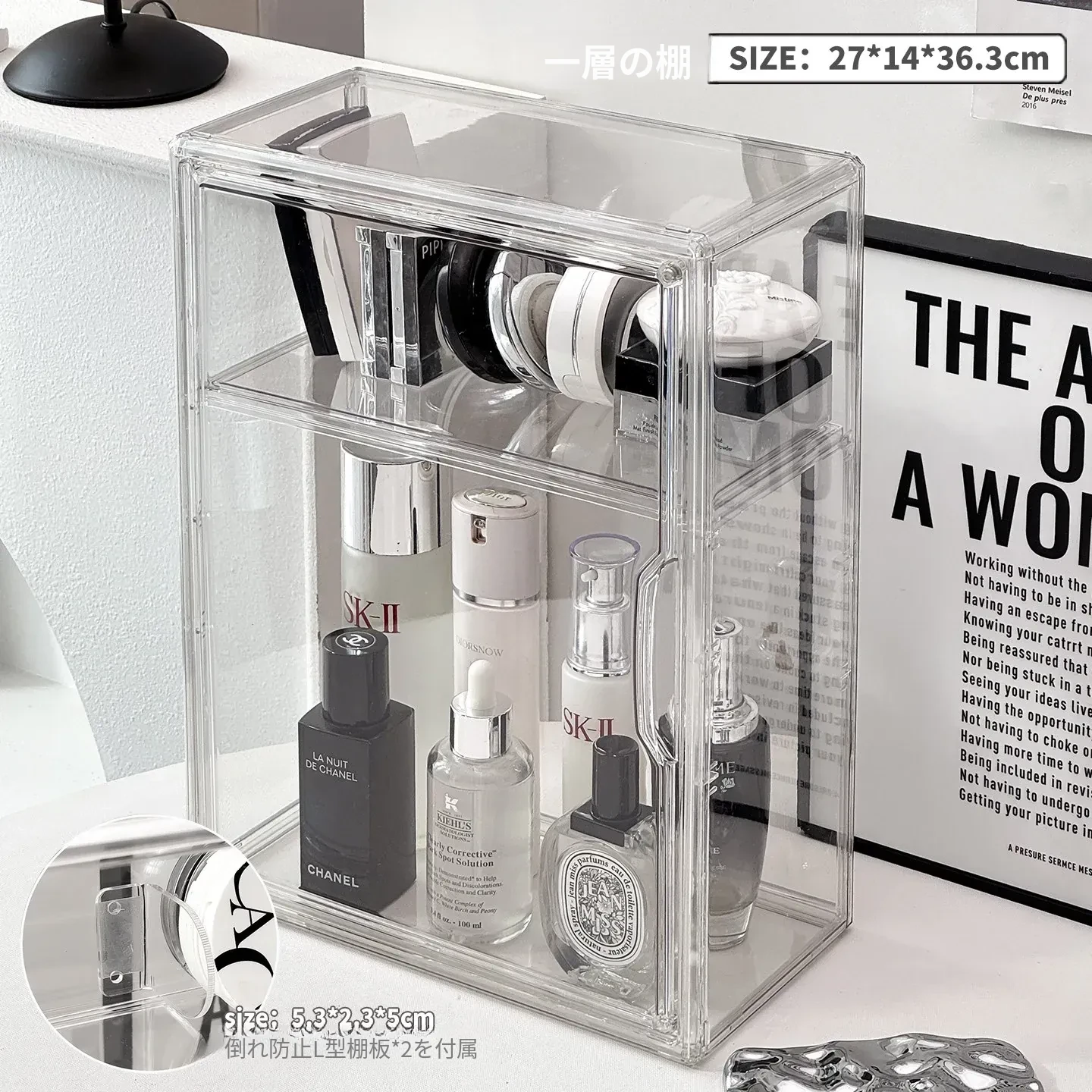【2段仕切り/6個の仕切り板付き】化粧品収納ボックス