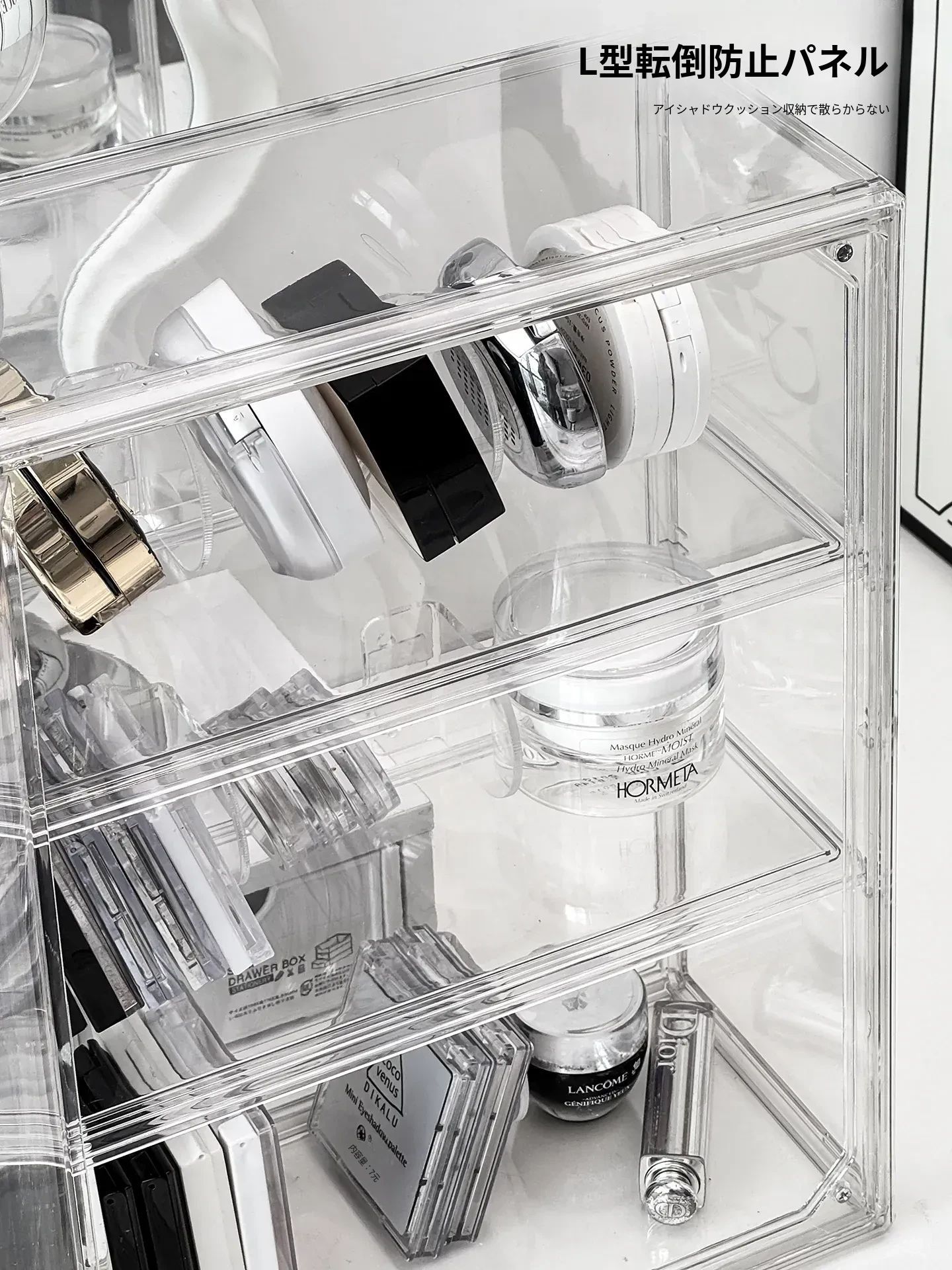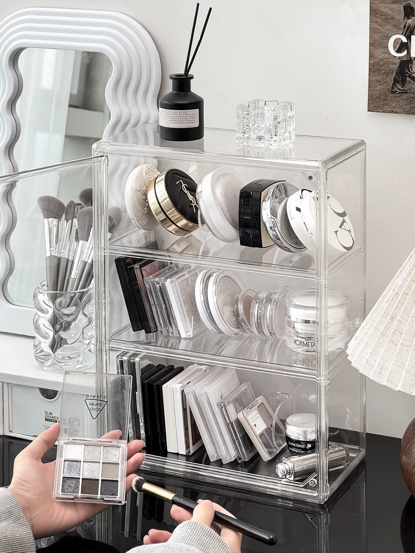 防塵アイシャドウパレットディスプレイスタンド - 透明メイク収納ボックス!おしゃれな化粧台に最適なリップやパウダーの整理整頓にぴったり。あなたのコレクションを美しく見せる!