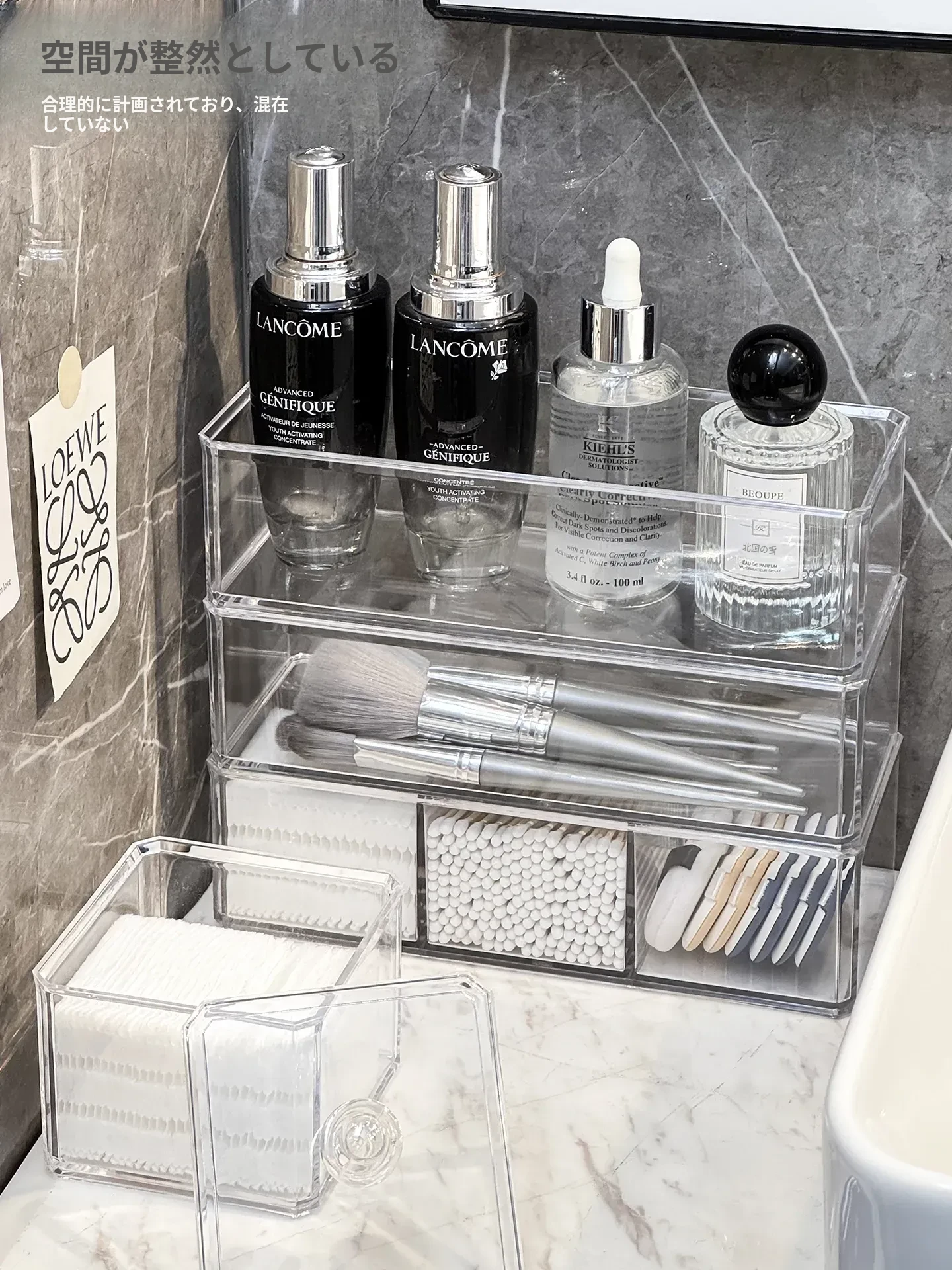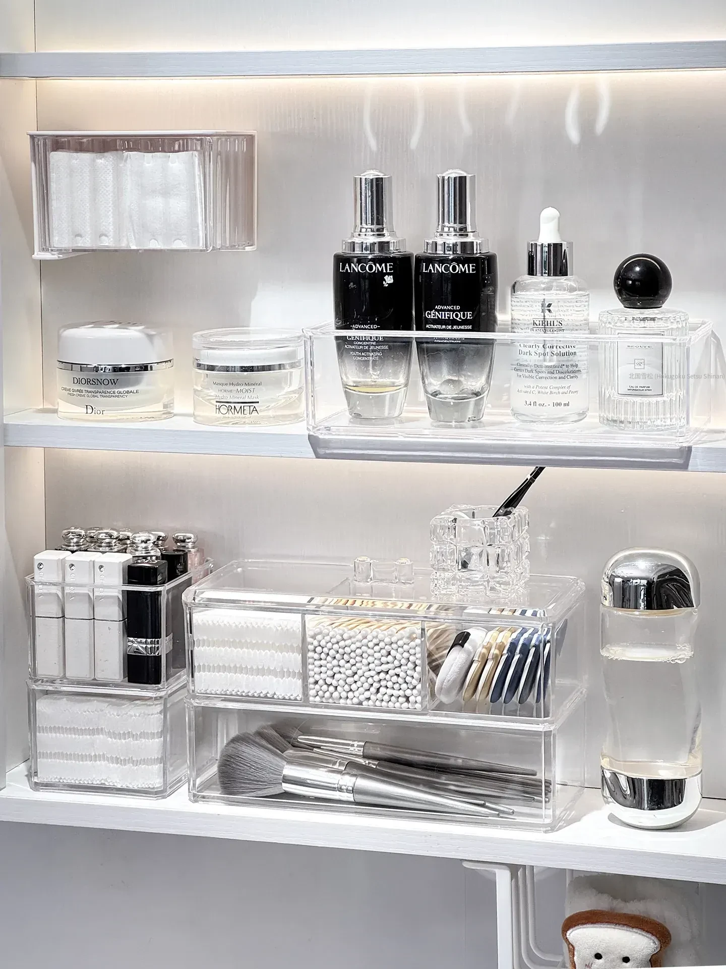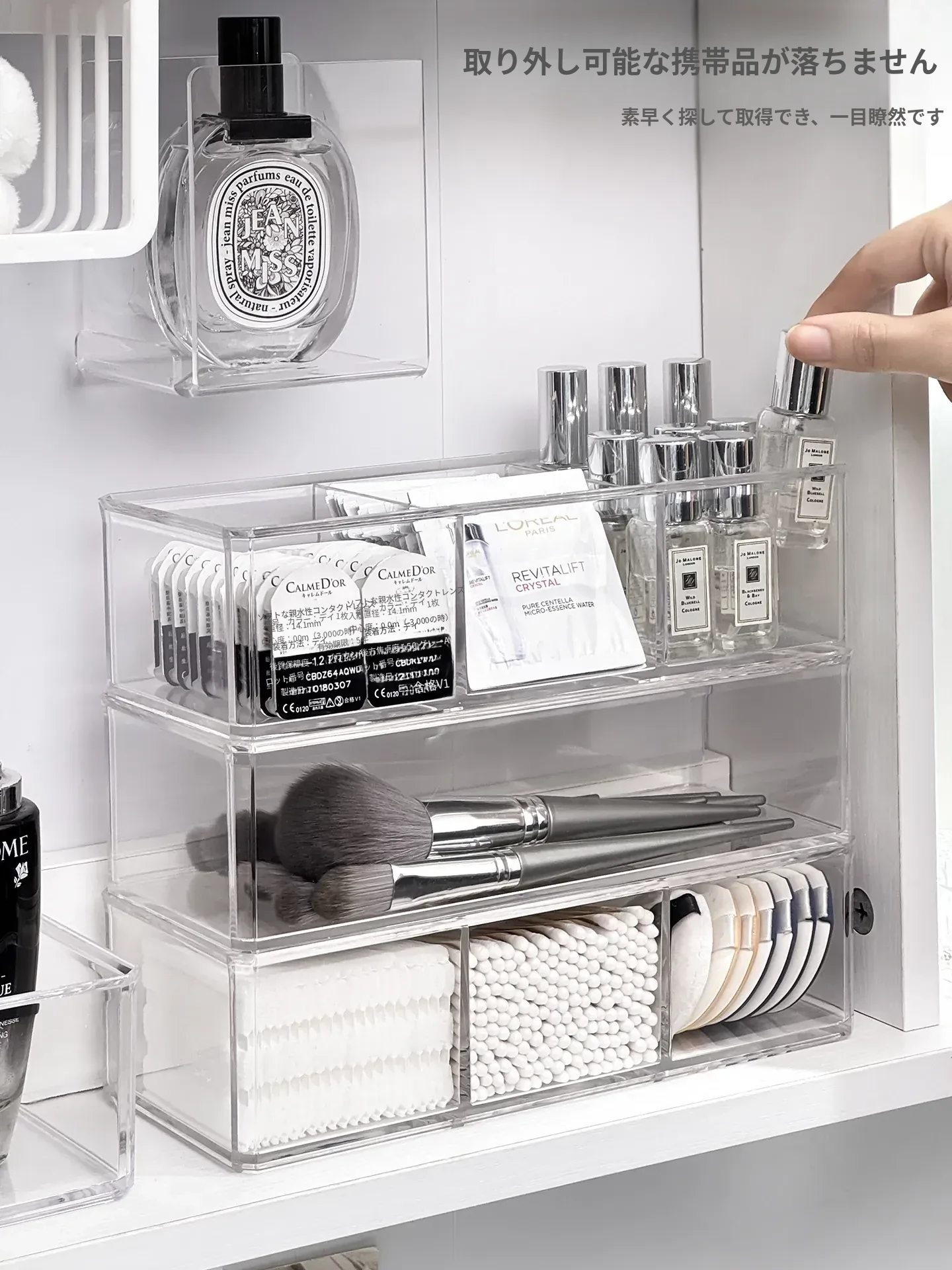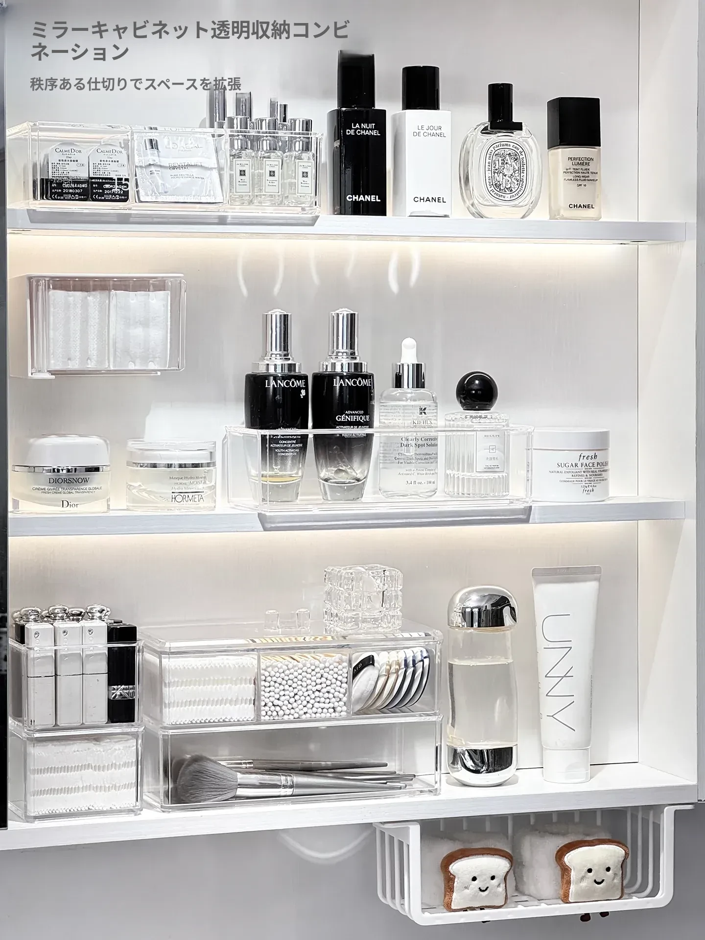透明ミラーキャビネット収納ボックス - バスルームで化粧品や口紅をスッキリ整理!おしゃれで機能的な分格収納ラック、洗面台を美しく保つ必須アイテム!