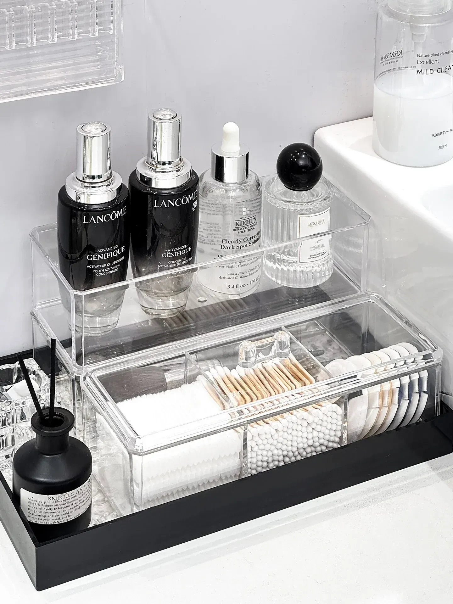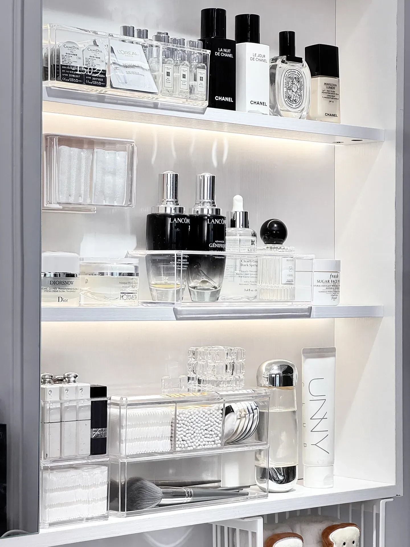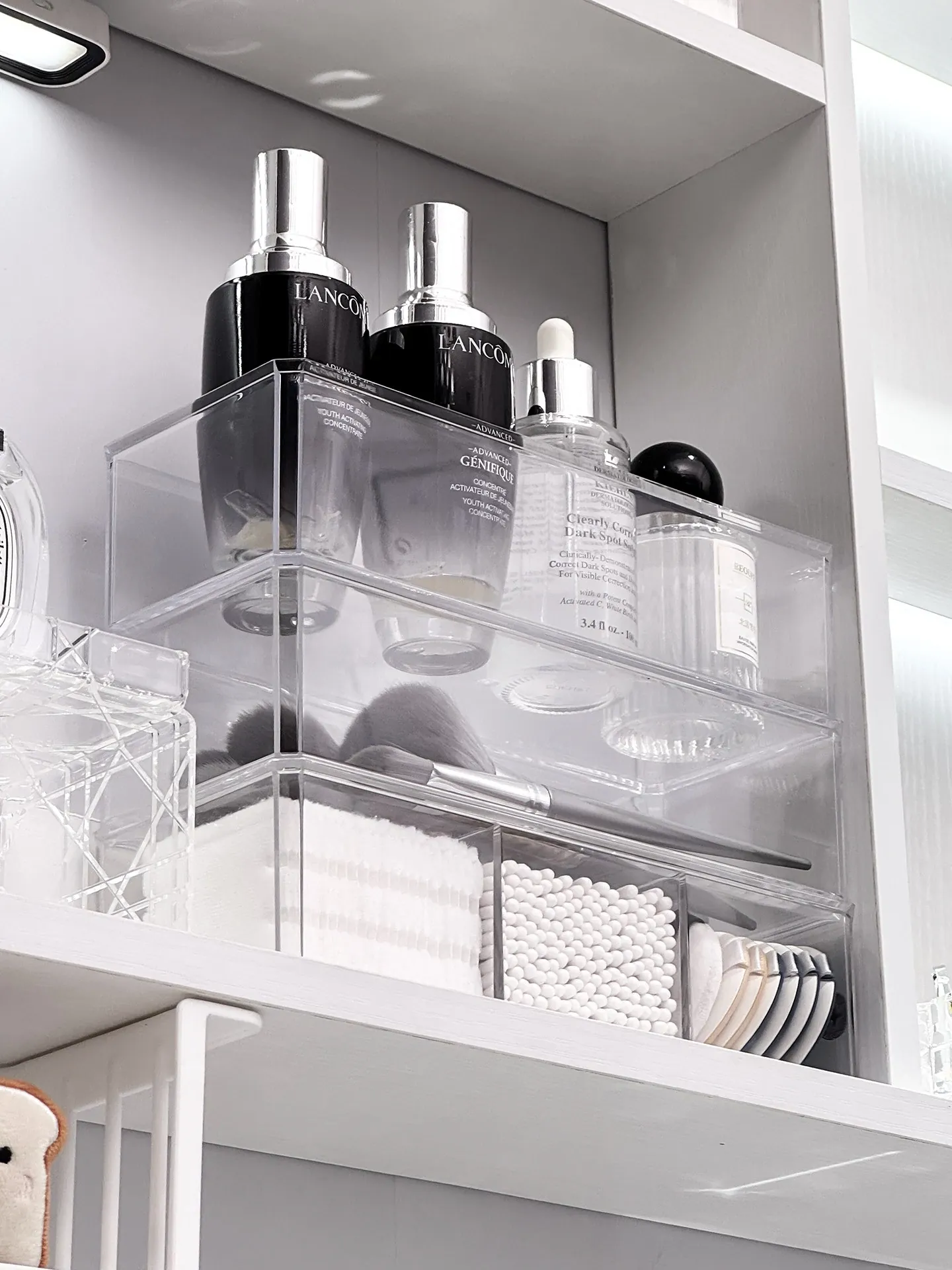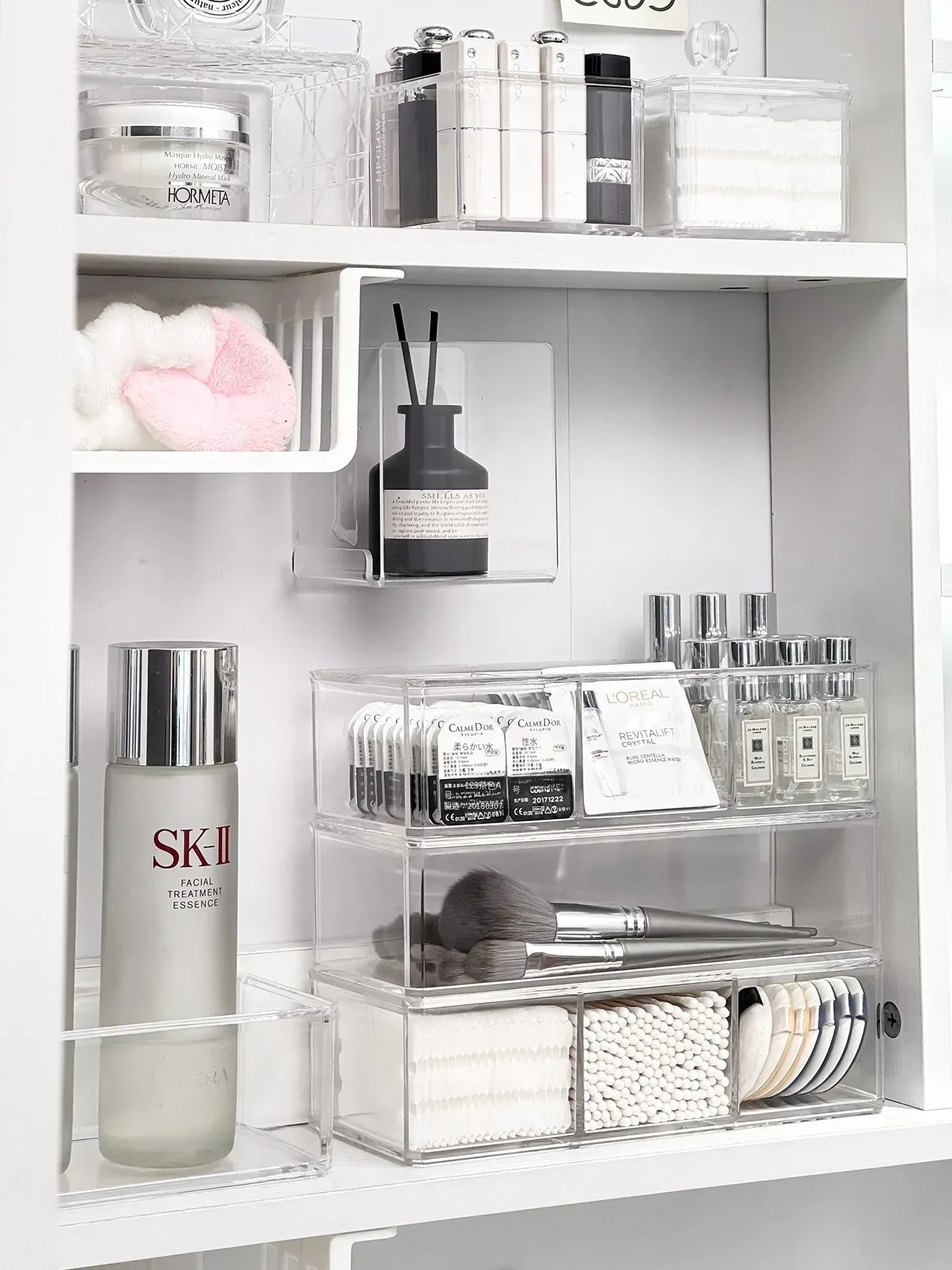 透明ミラーキャビネット収納ボックス - バスルームで化粧品や口紅をスッキリ整理!おしゃれで機能的な分格収納ラック、洗面台を美しく保つ必須アイテム!