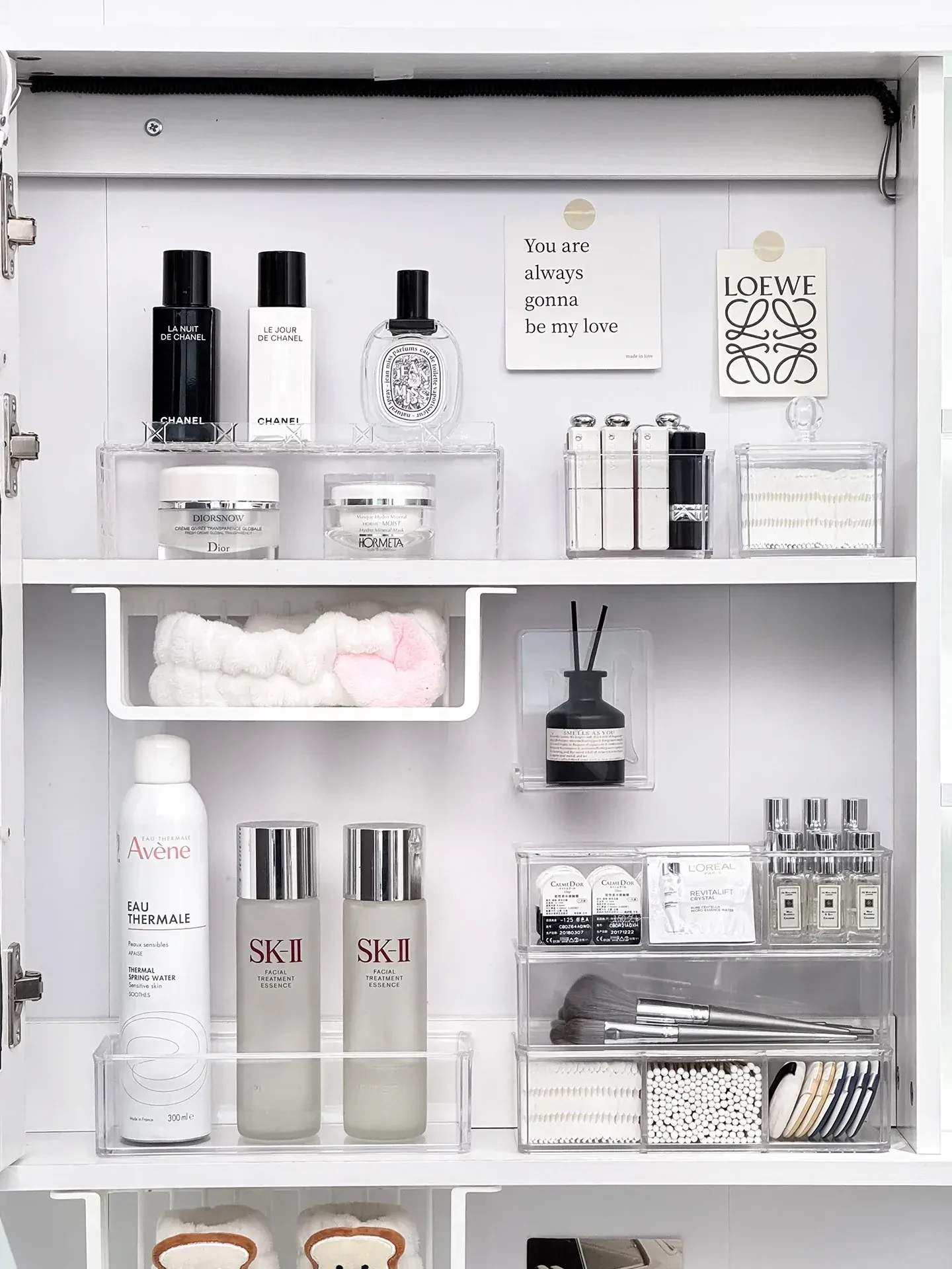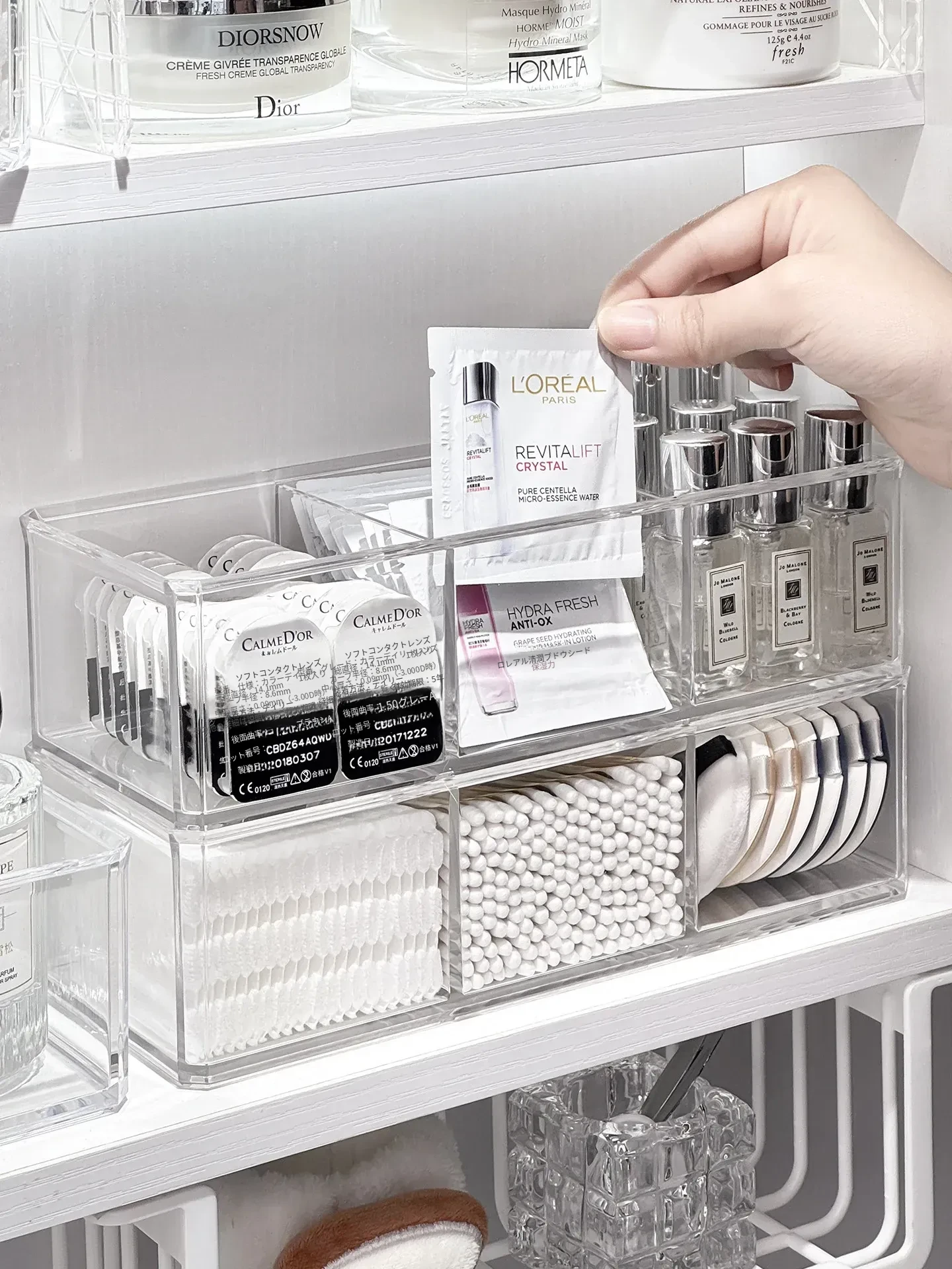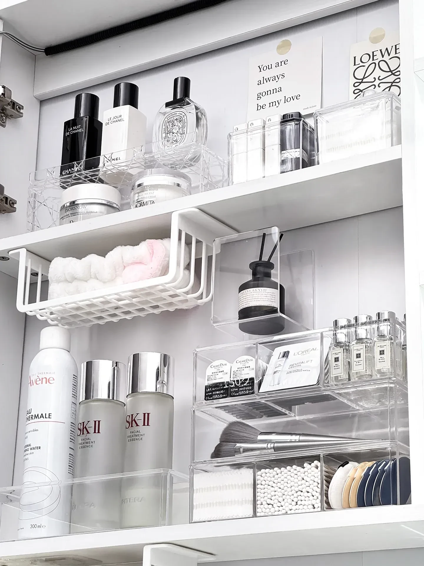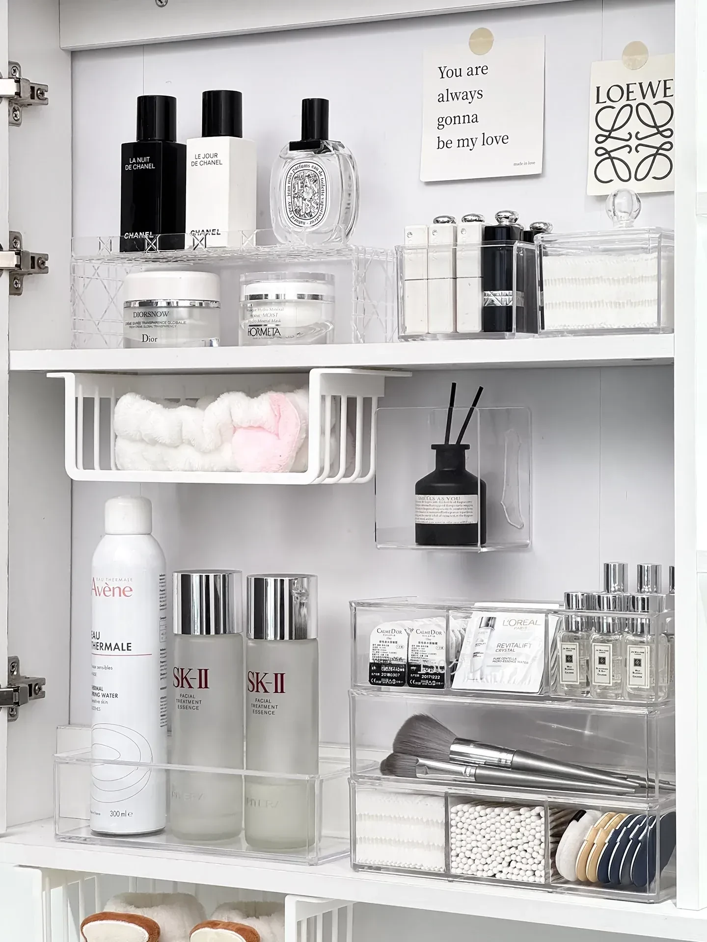 透明ミラーキャビネット収納ボックス - バスルームで化粧品や口紅をスッキリ整理!おしゃれで機能的な分格収納ラック、洗面台を美しく保つ必須アイテム!