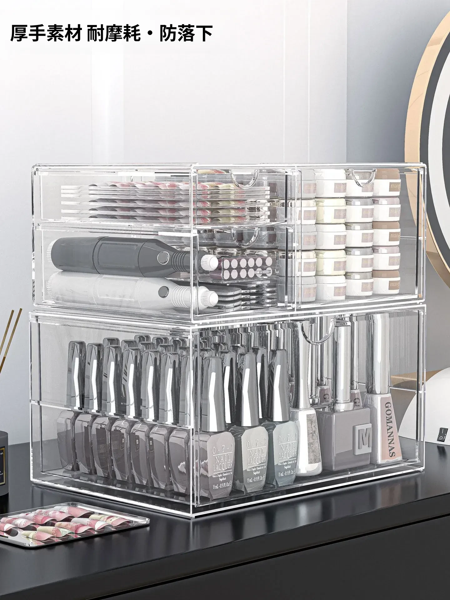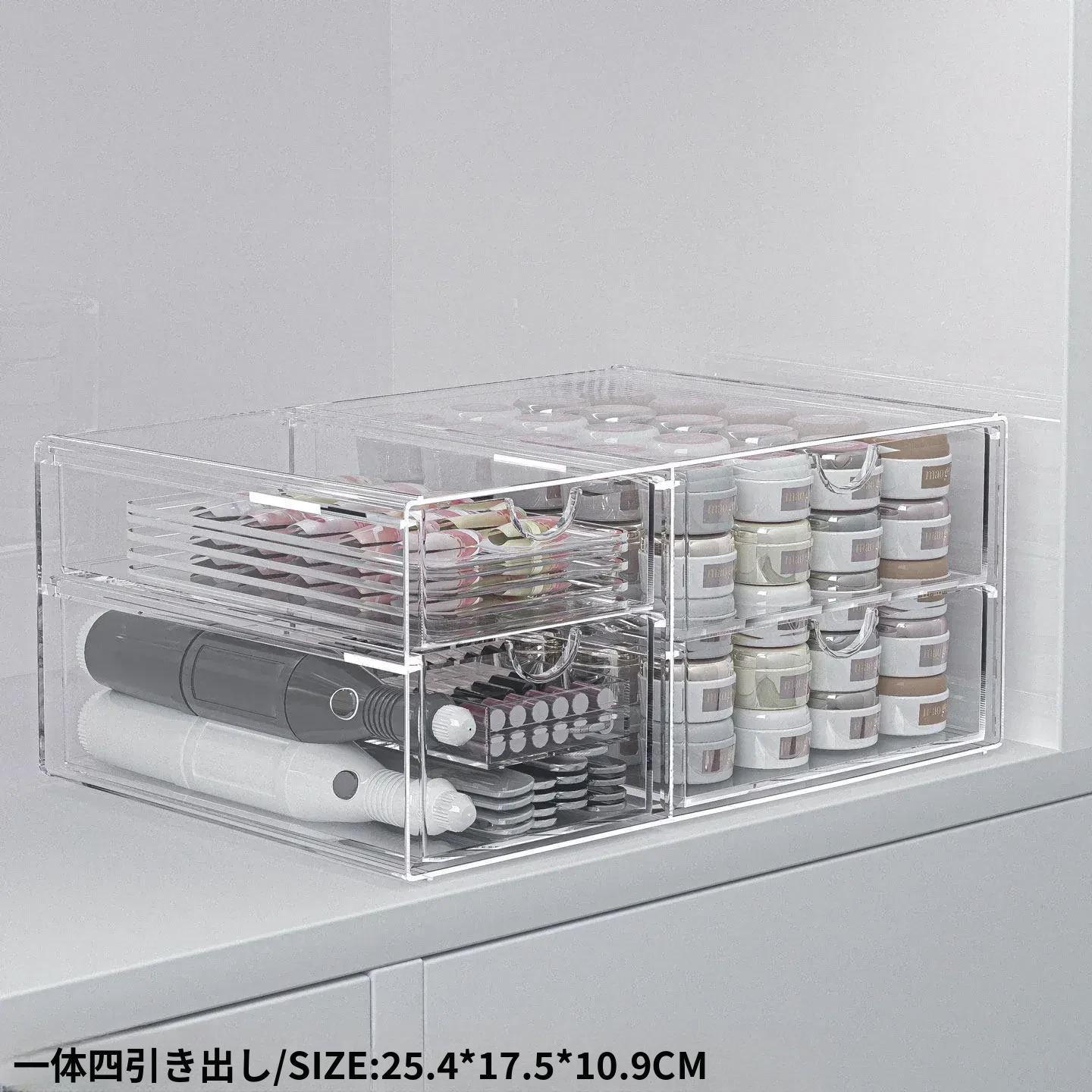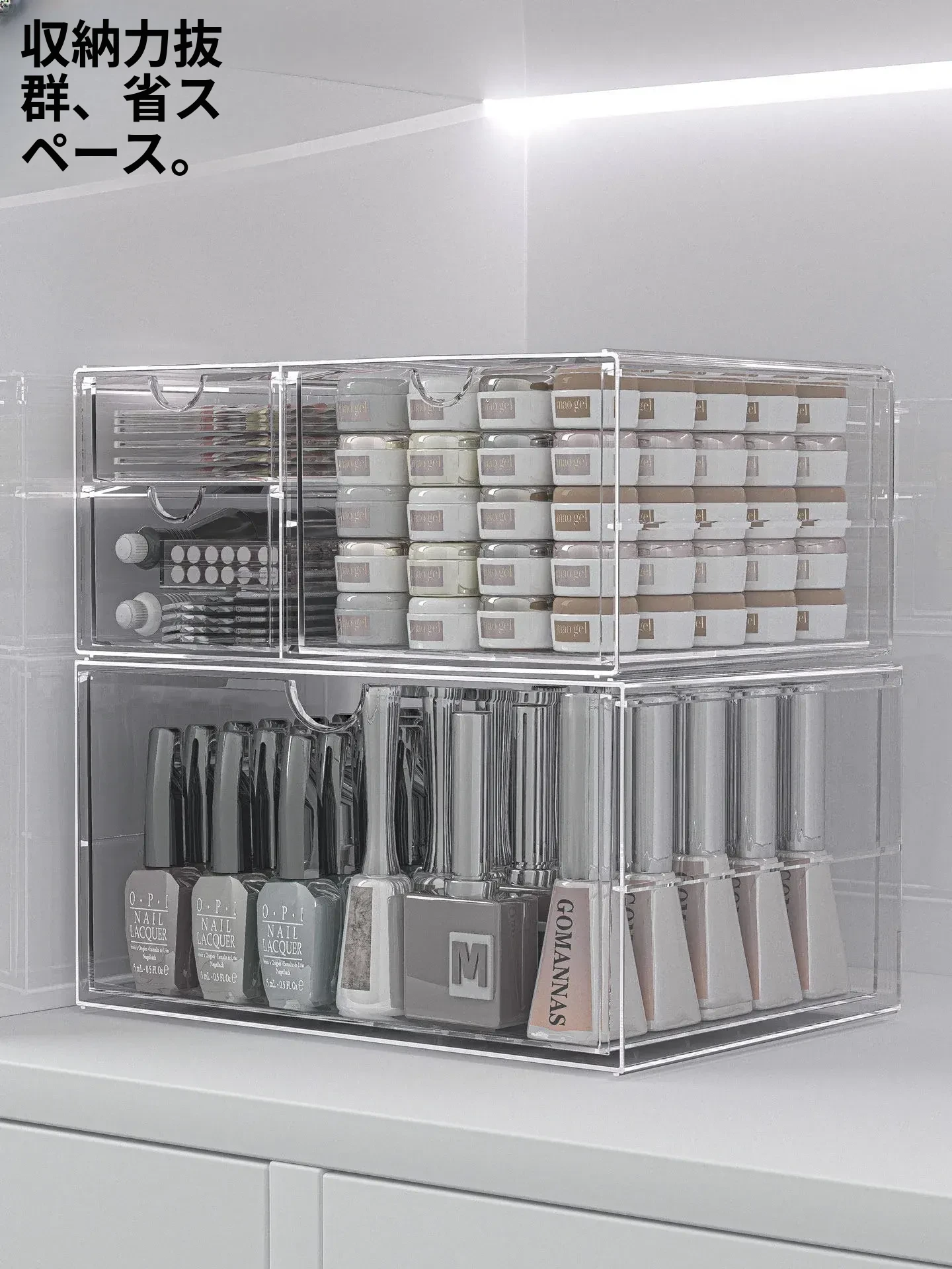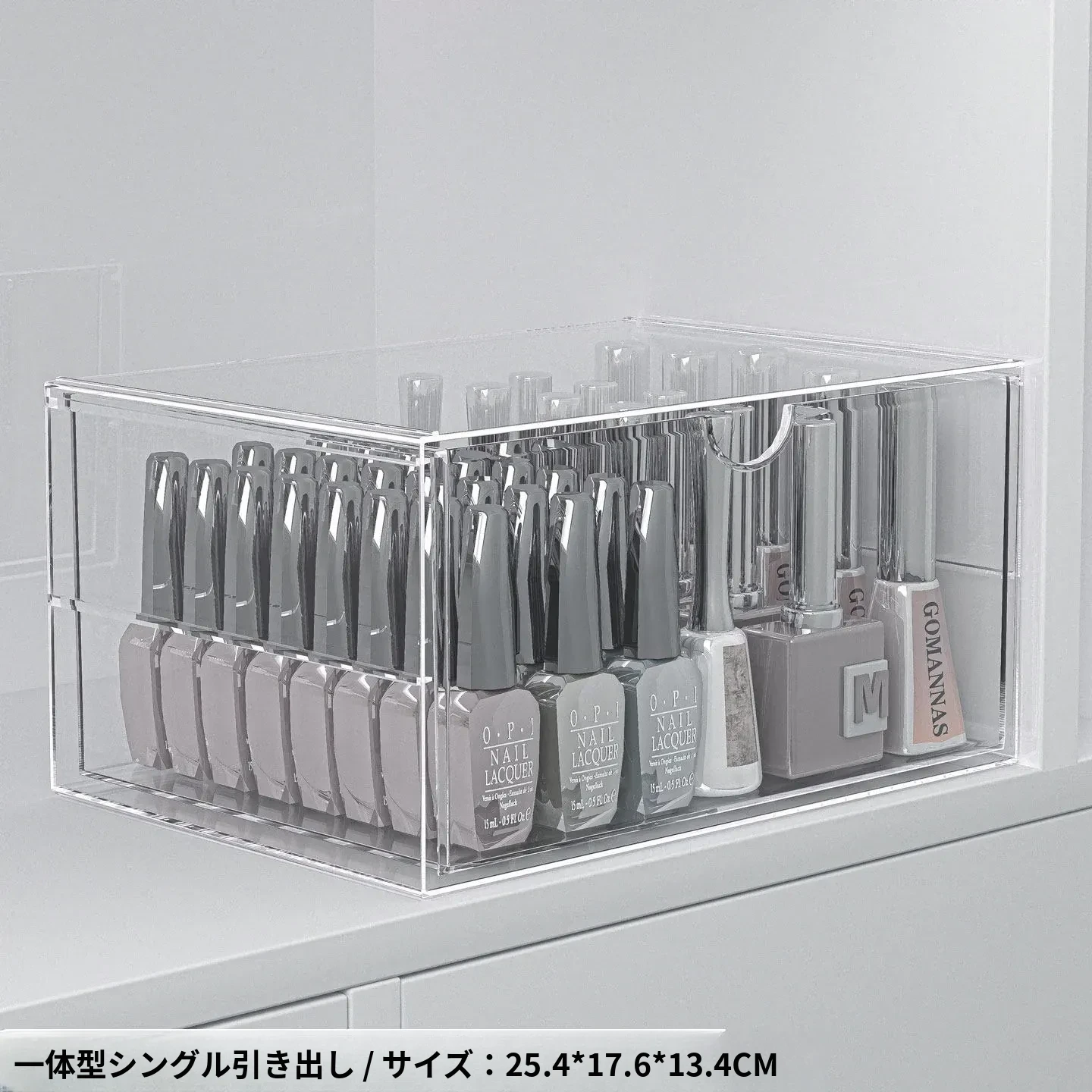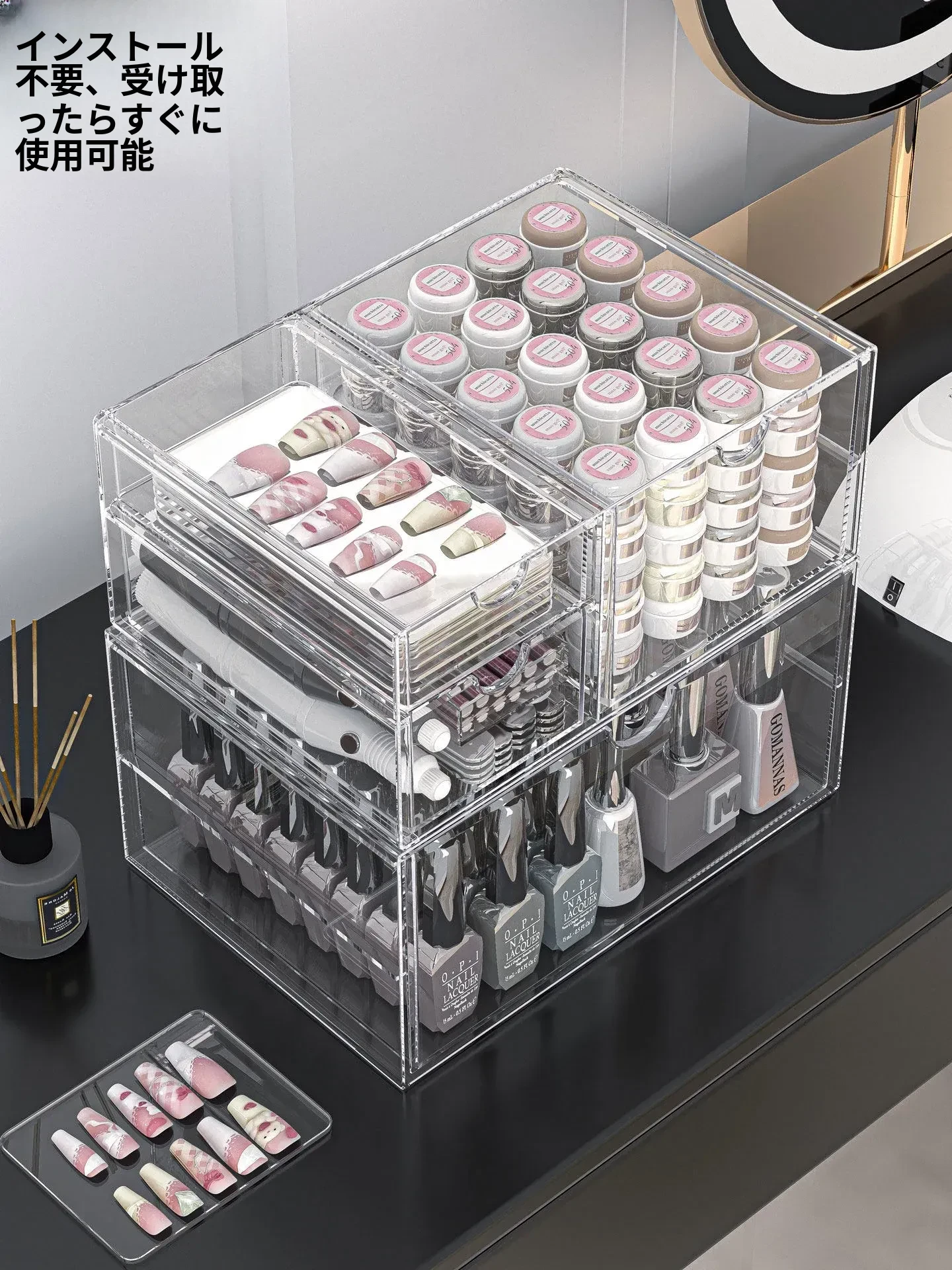透明なネイルポリッシュ収納ボックス!デスク上で使える美甲ツールケース、引き出し式で家でも簡単に整理整頓。ネイルジェルやアクセサリーもすっきり収納でき、あなたの美しさを引き立てます。