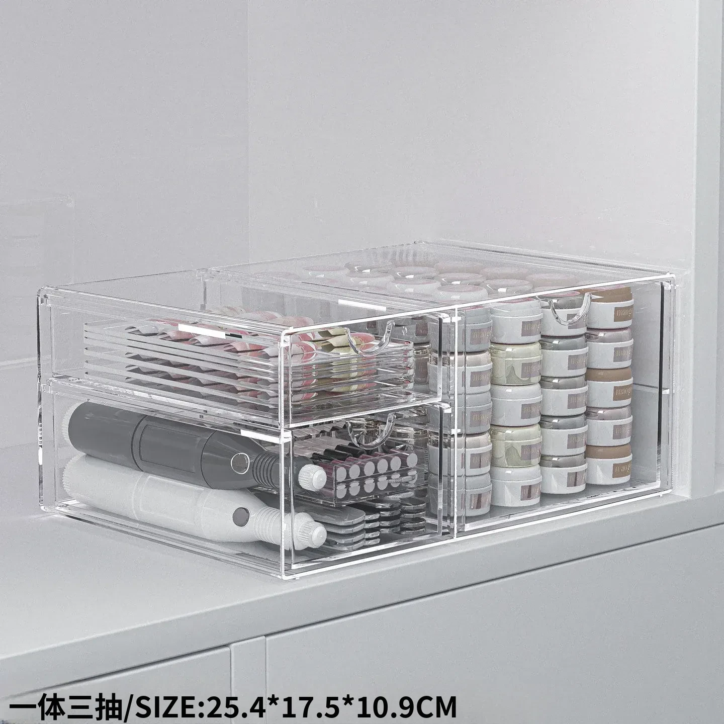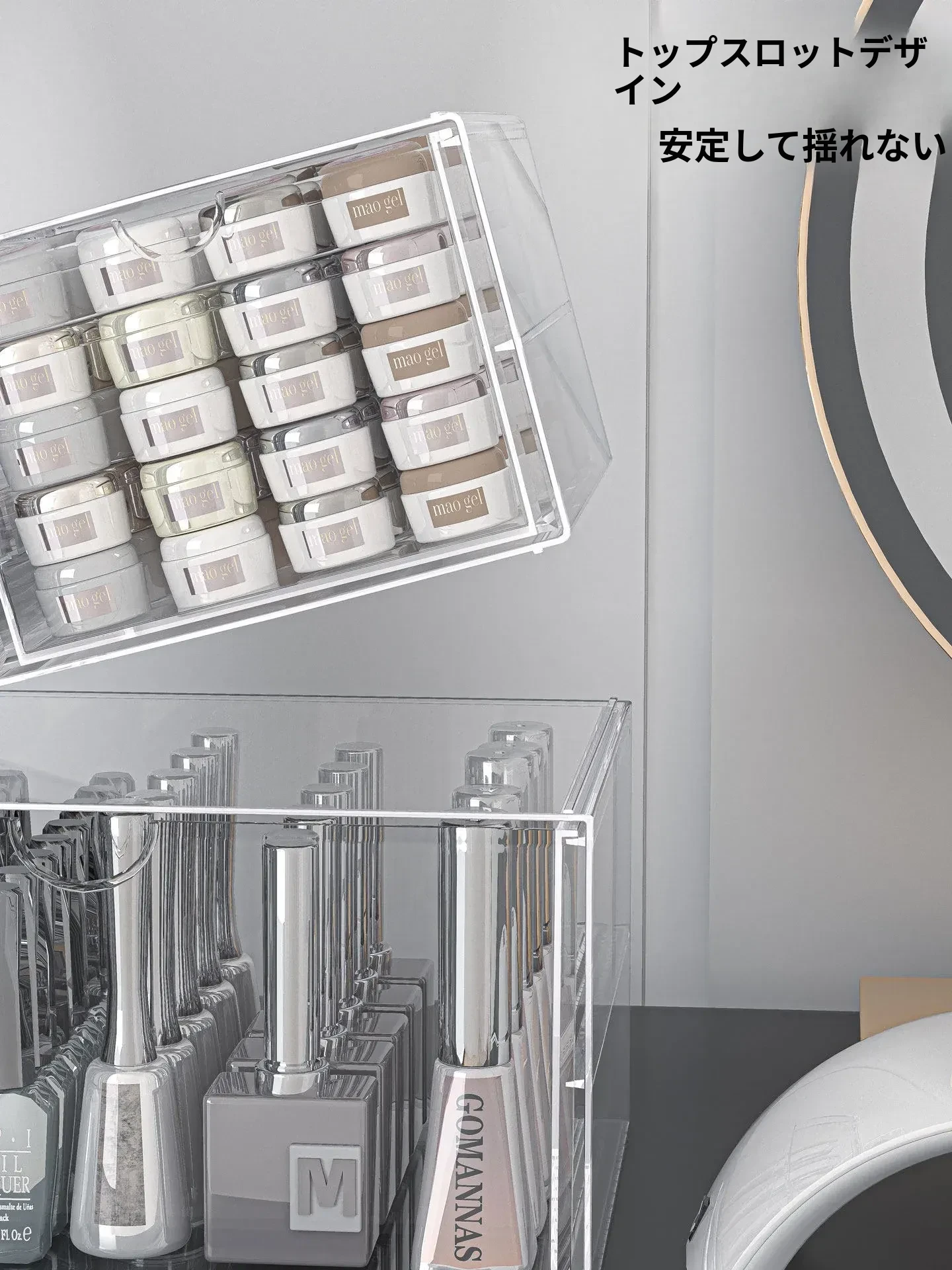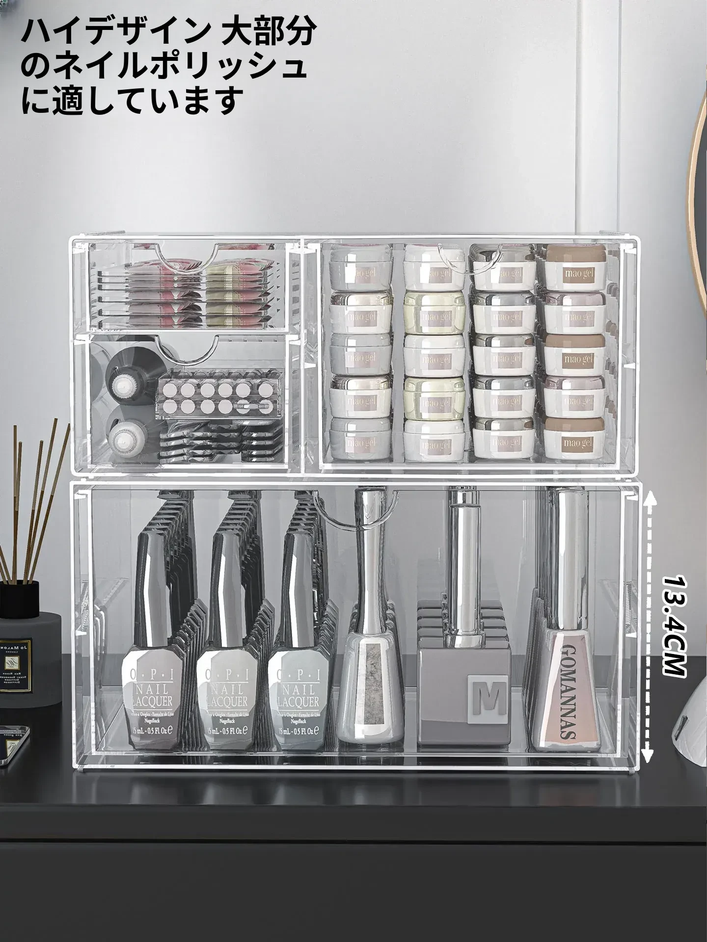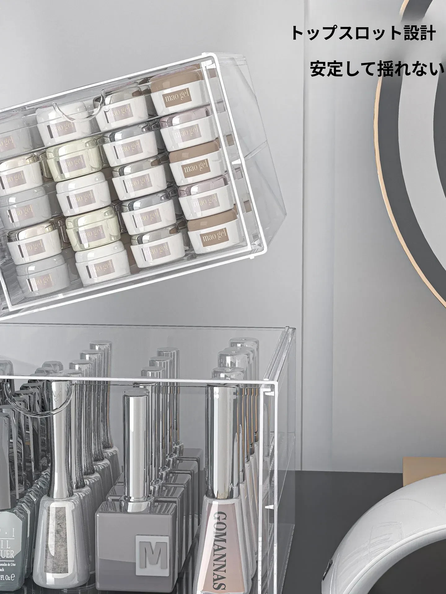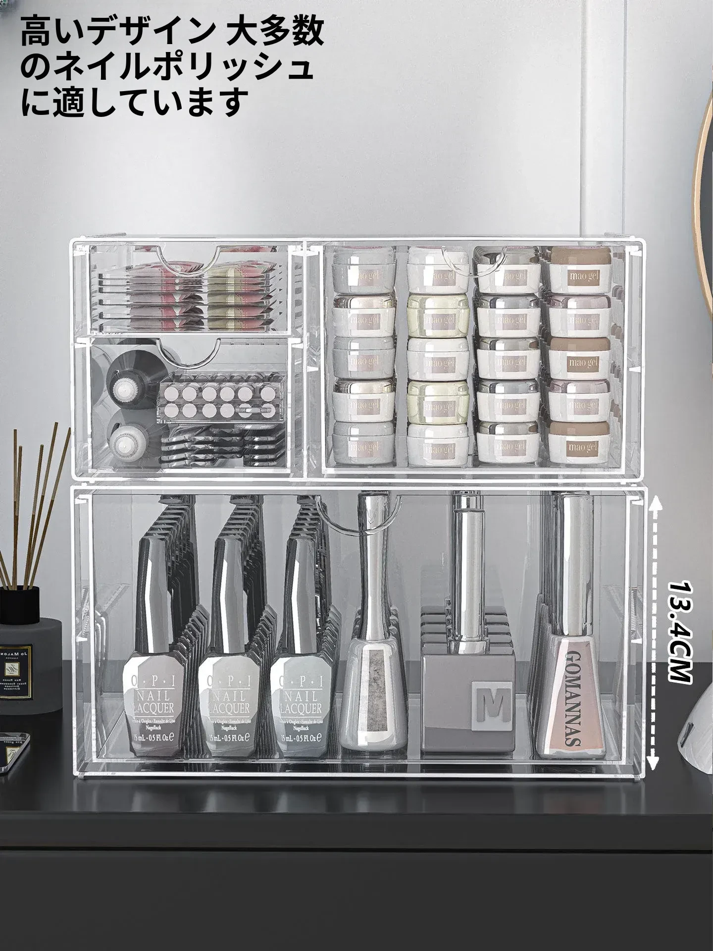 透明なネイルポリッシュ収納ボックス!デスク上で使える美甲ツールケース、引き出し式で家でも簡単に整理整頓。ネイルジェルやアクセサリーもすっきり収納でき、あなたの美しさを引き立てます。