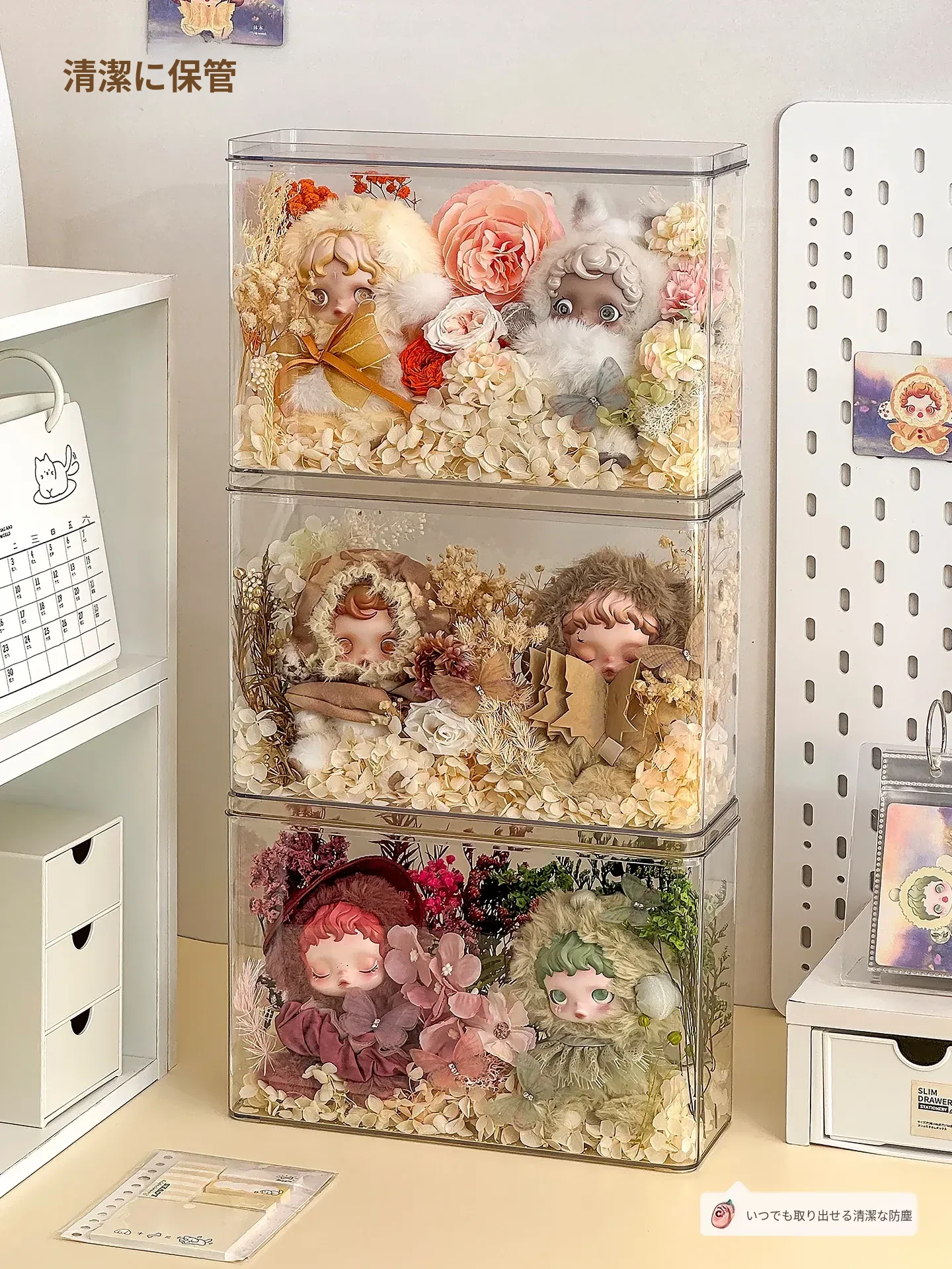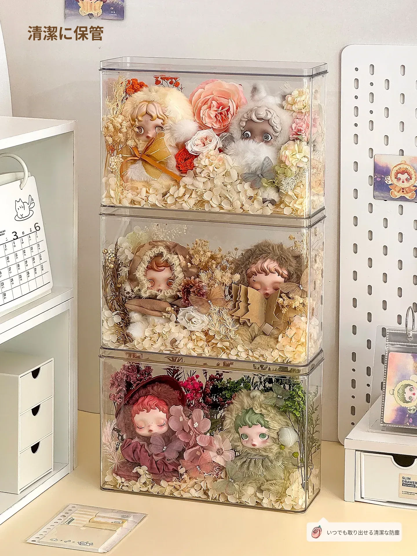 【3個入り/蓋付き防塵】人形ディスプレイボックス