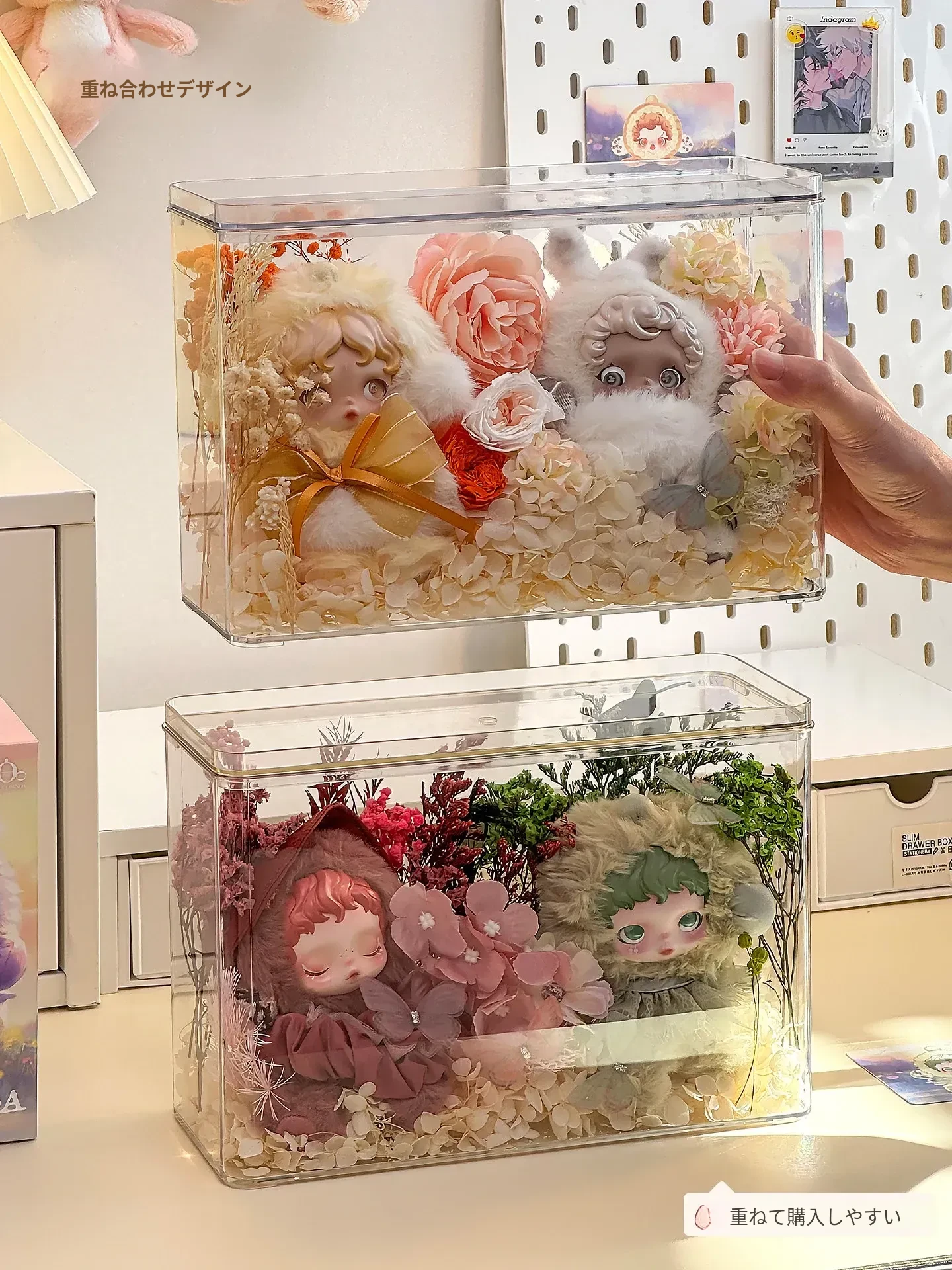 【2個入り/蓋付き防塵】人形ディスプレイボックス