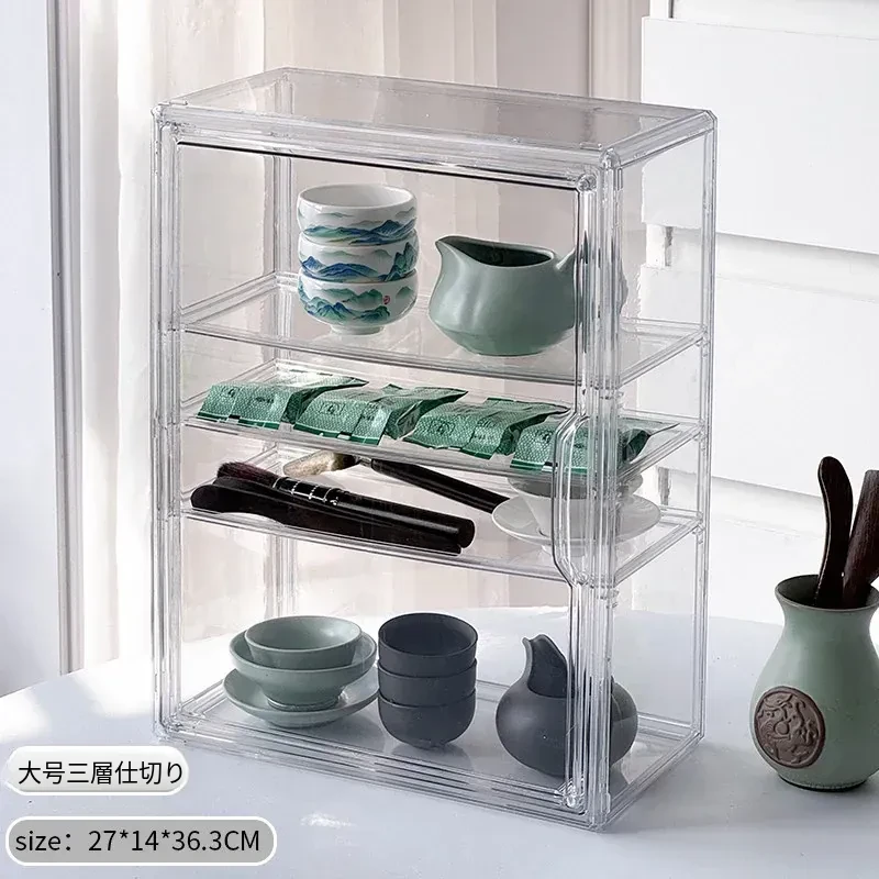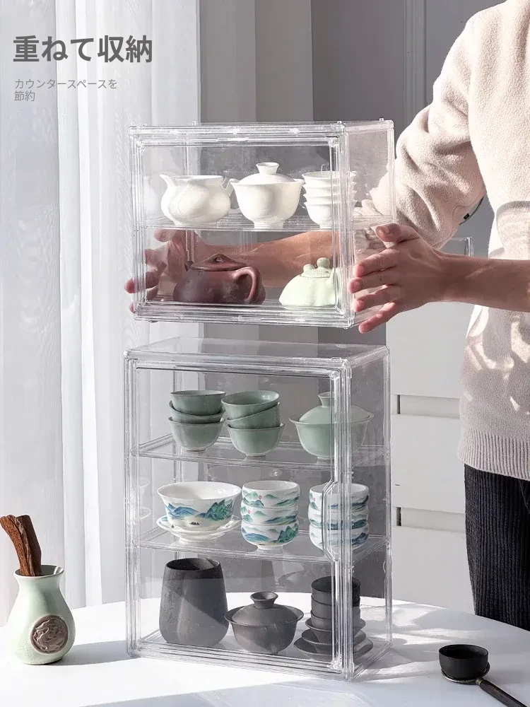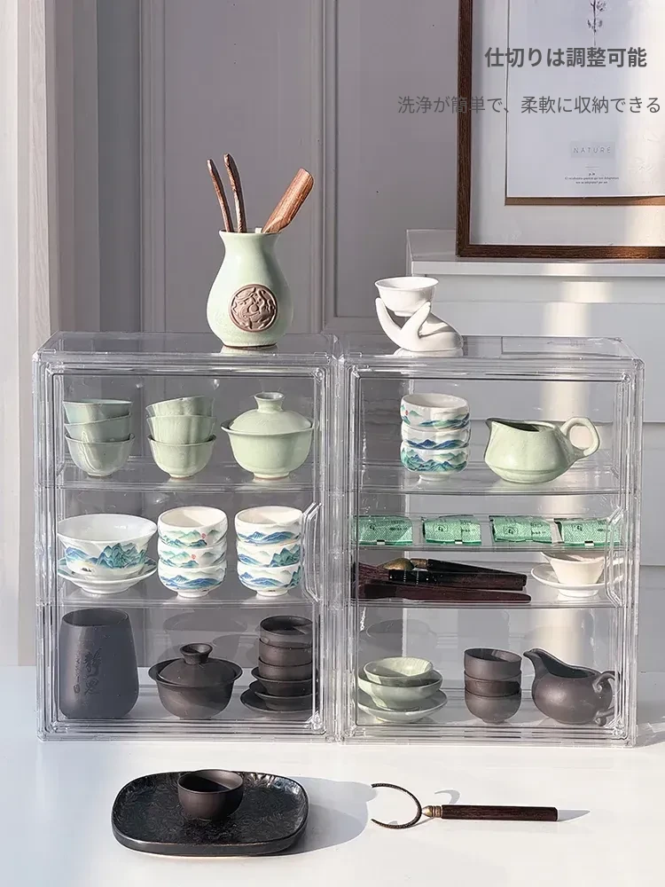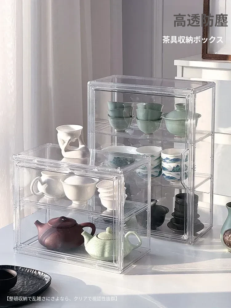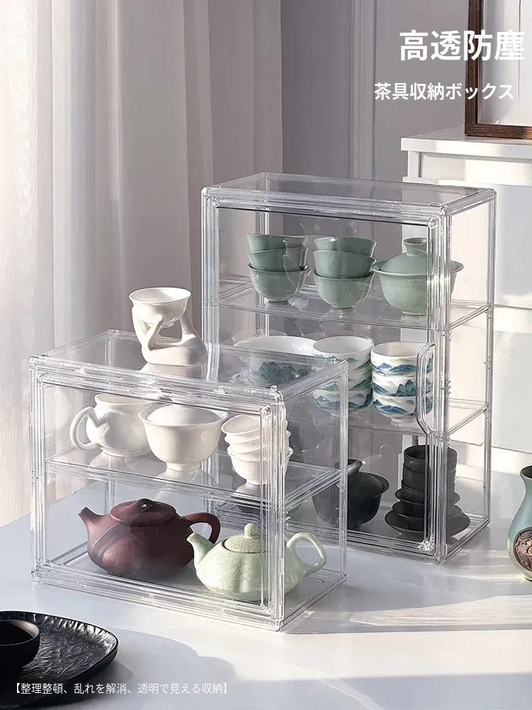 茶器収納ボックス - 防塵・透明デザインの功夫茶セット専用、急須・公道杯・蓋碗を整理するためのキャビネット用収納箱!美しい茶器をすっきりと保管し、使いやすさを追求したアイテムです。