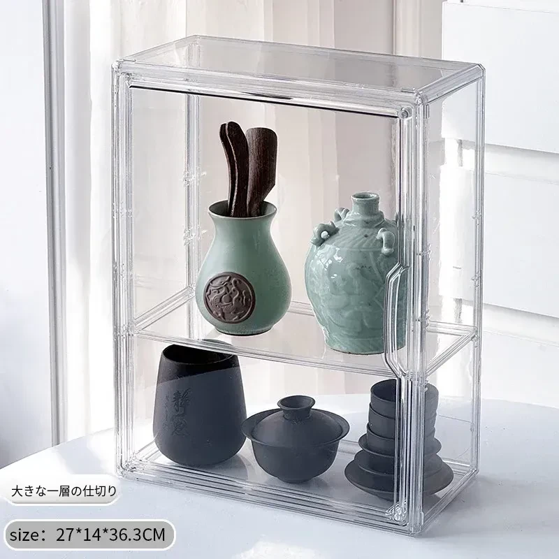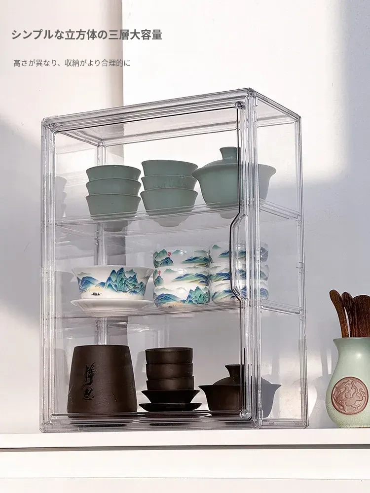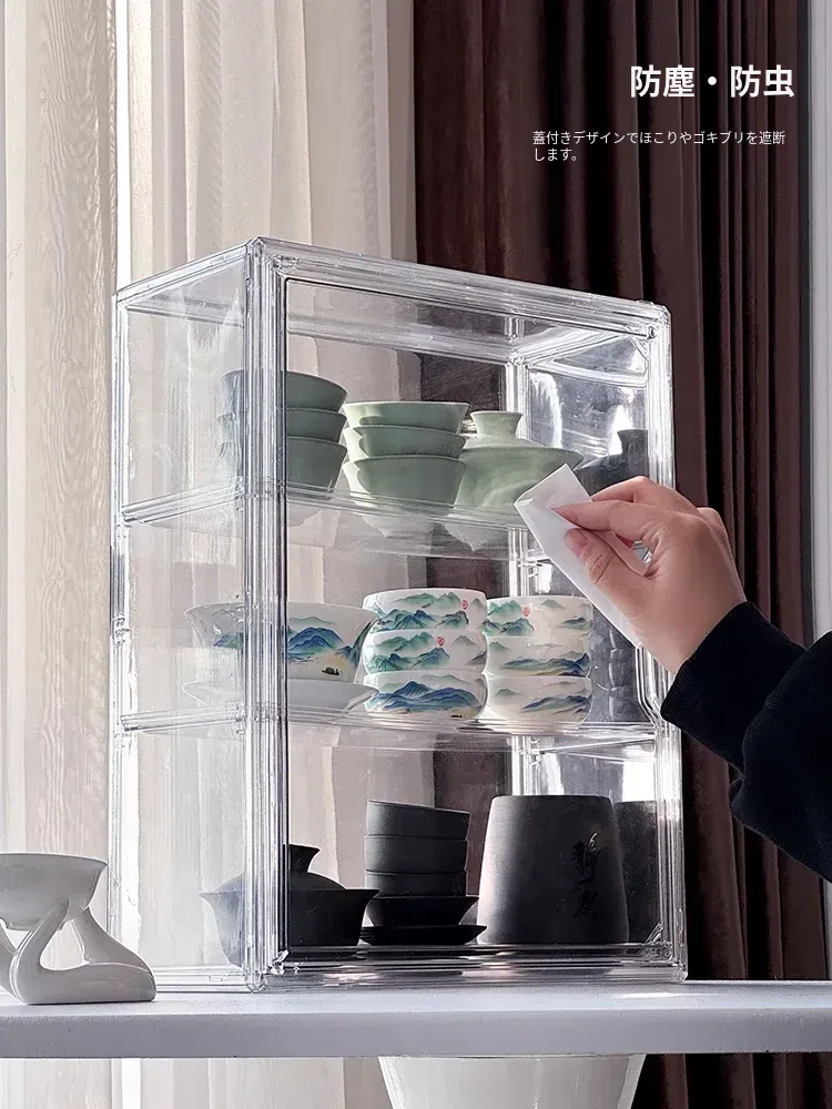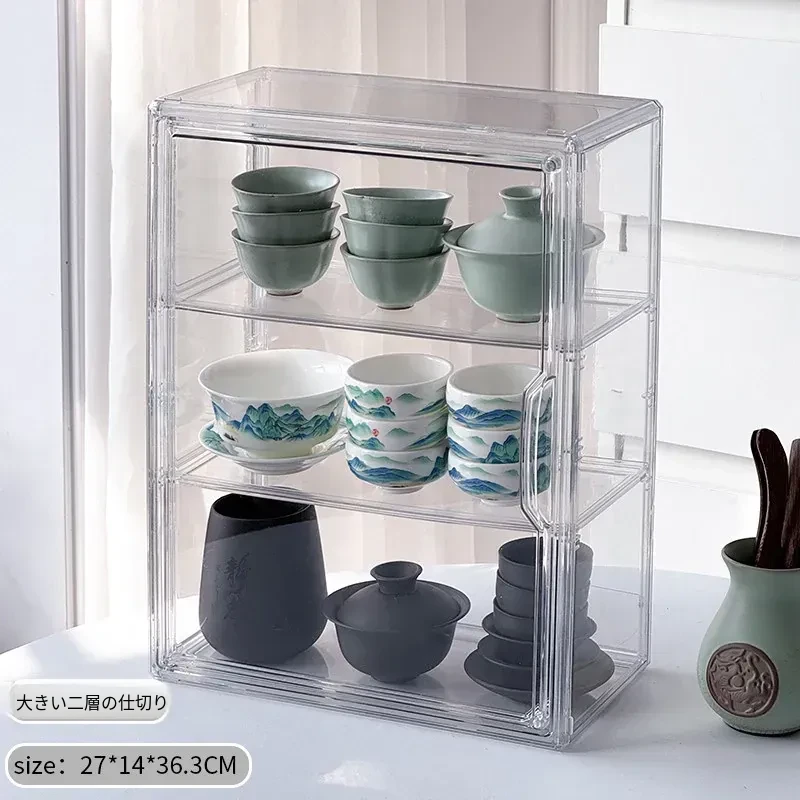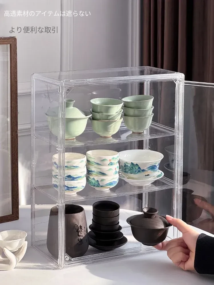 茶器収納ボックス - 防塵・透明デザインの功夫茶セット専用、急須・公道杯・蓋碗を整理するためのキャビネット用収納箱!美しい茶器をすっきりと保管し、使いやすさを追求したアイテムです。