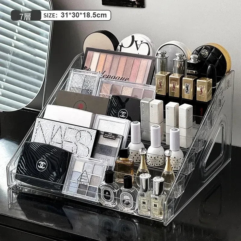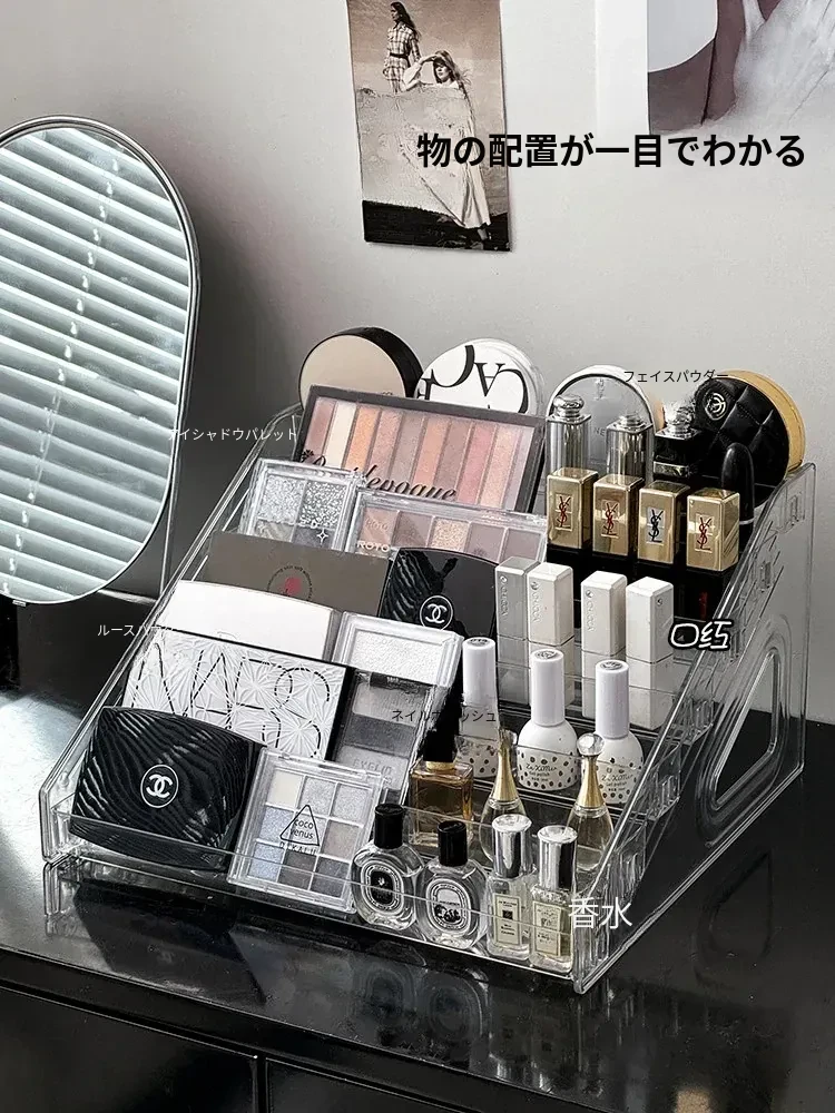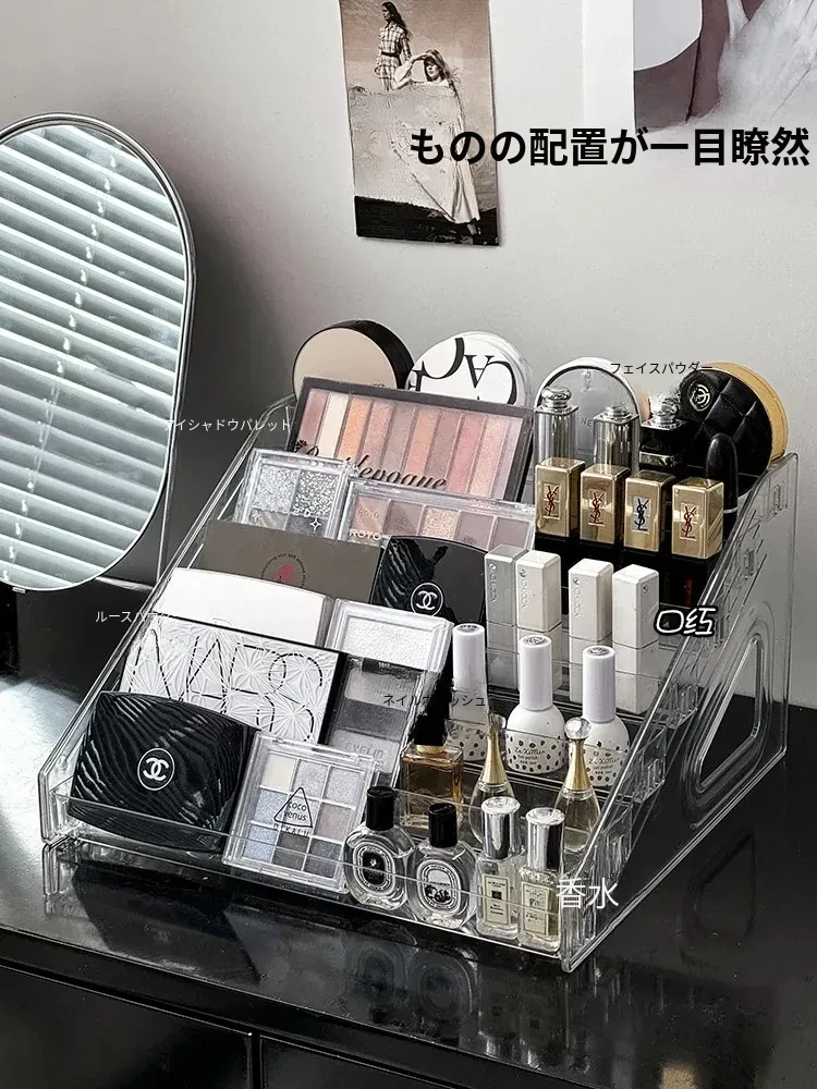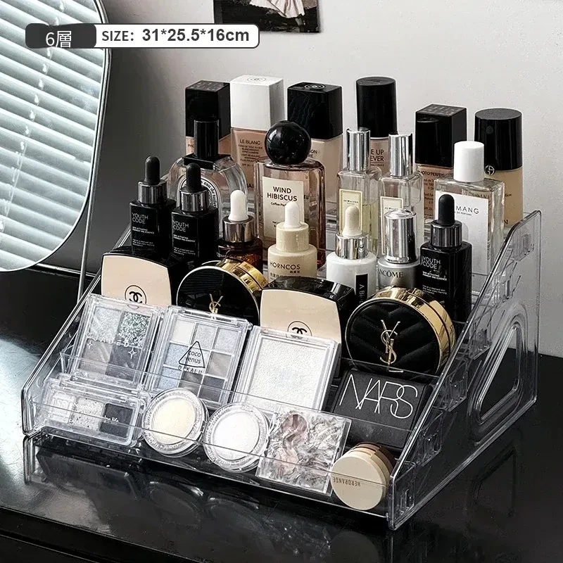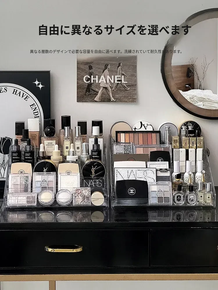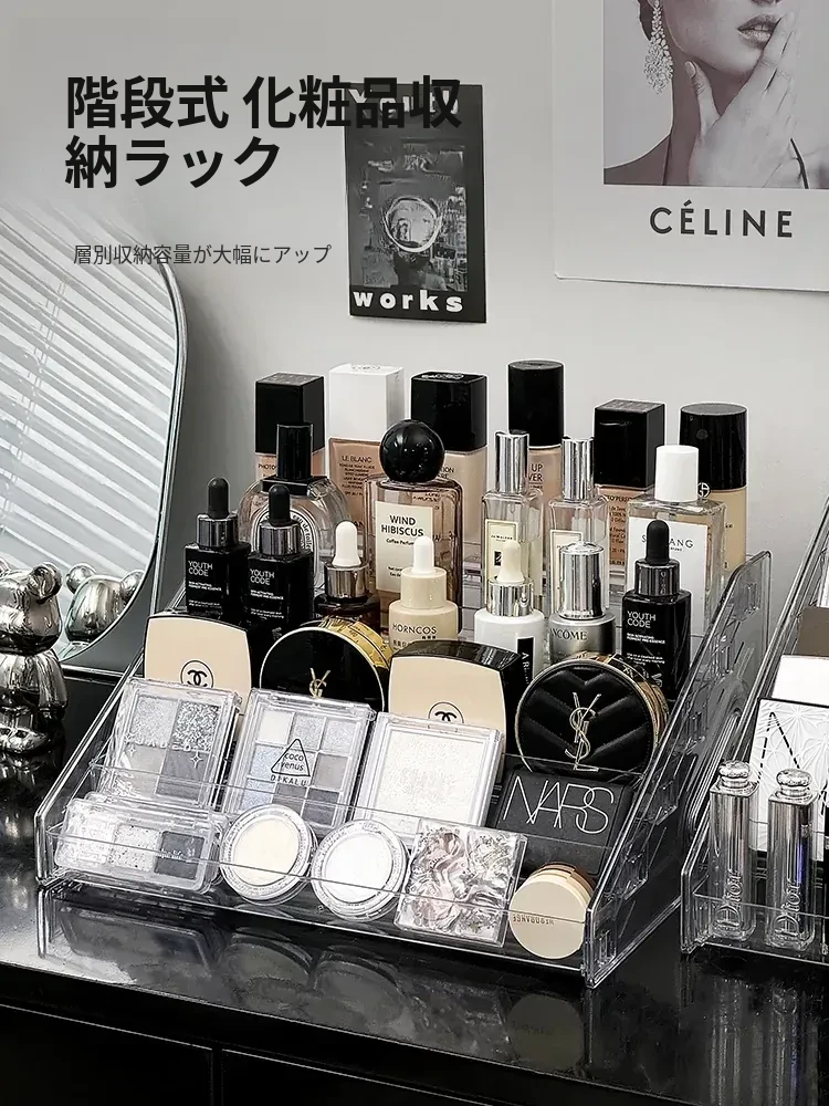 透明な階段型アイシャドウパレット収納ラック - メイクアップコスメを美しく整理!デスクトップで使いやすい化粧品収納ボックス、ネイルポリッシュや香水もスッキリ整頓!おしゃれなドレッサーにぴったり!