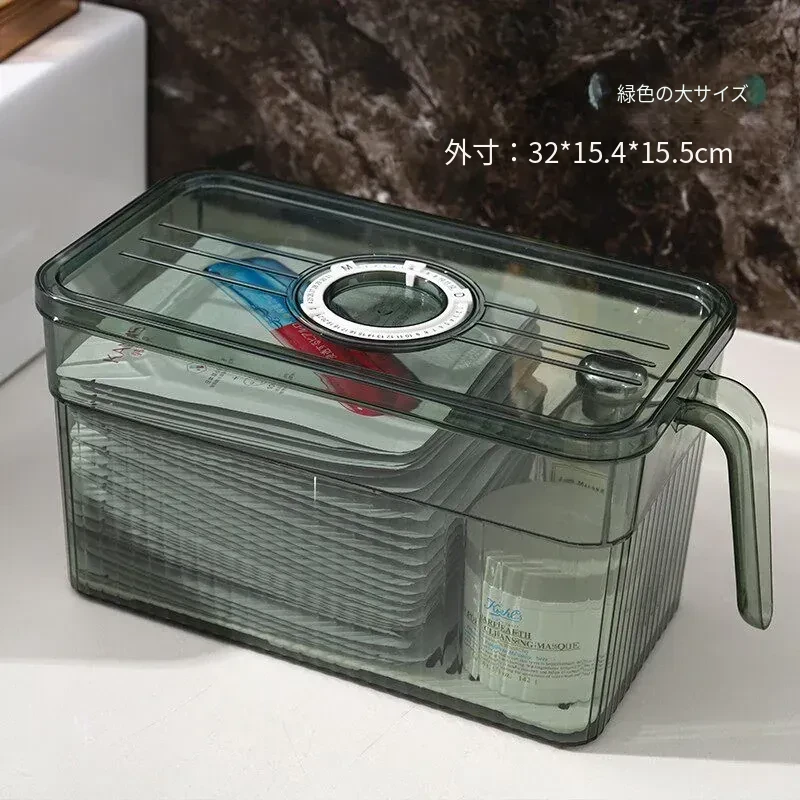 【低型-冷蔵庫に入れられる】透緑タイマー付きフェイスマスク収納ボックス-WG-7049