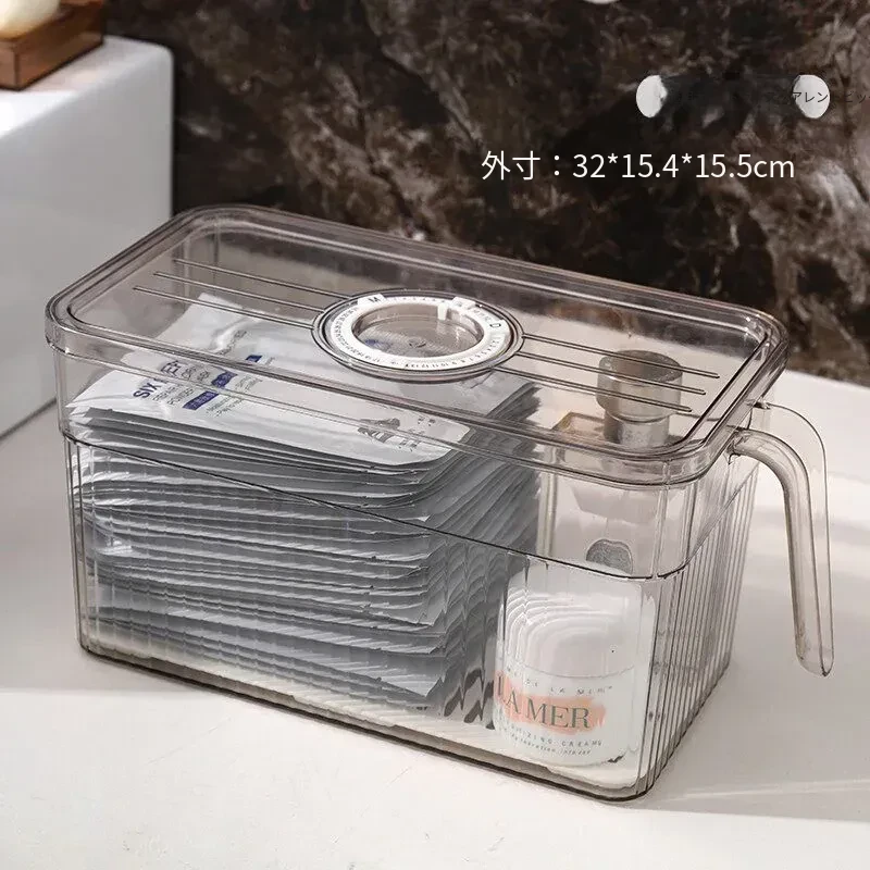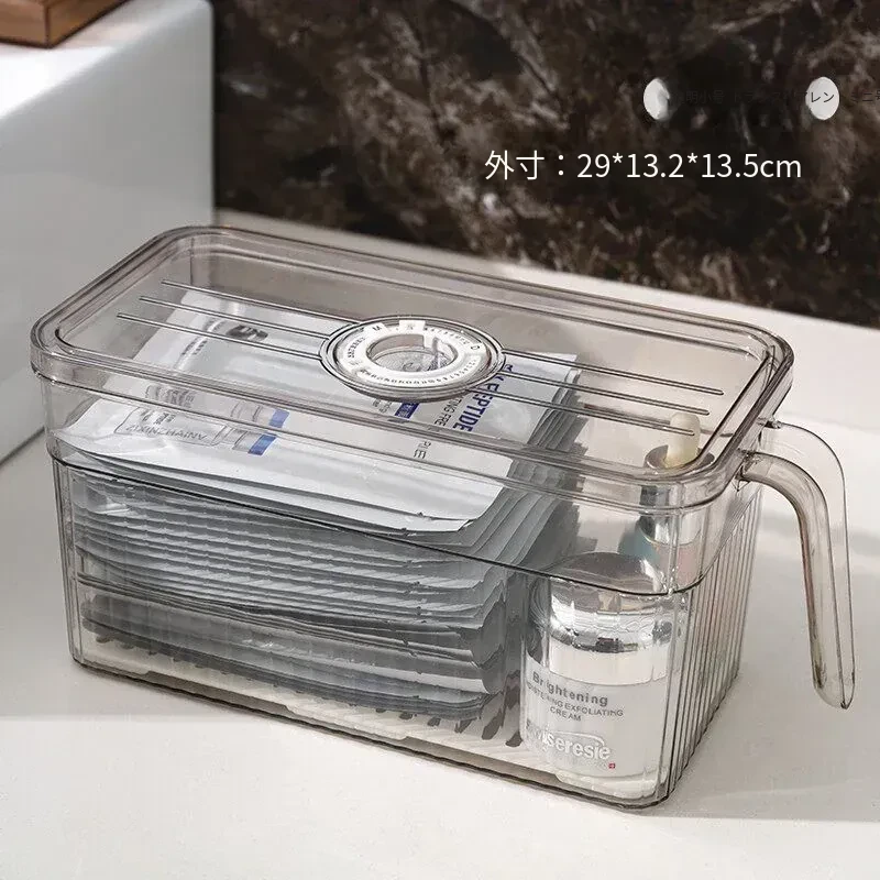 【低型-冷蔵庫に入れられる】透明タイマー付きフェイスマスク収納ボックス-WG-7048