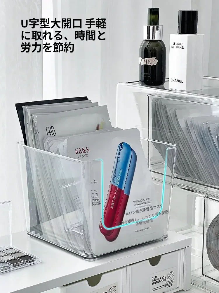 人気のフェイスマスク収納ボックス!ヨーロッパスタイルの化粧品・スキンケア用ケース。デスクやバスルーム、学生寮にぴったりの便利アイテム!透明アクリル素材でおしゃれに整理整頓!