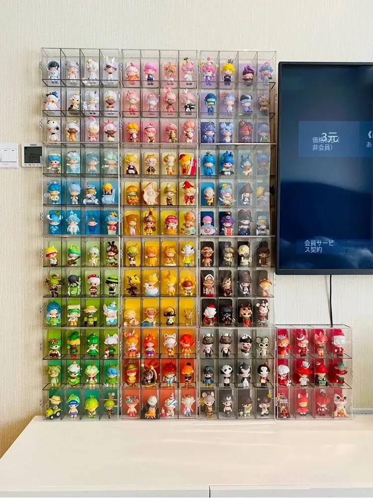 ブラインドボックス収納ラック 壁掛け式 ノーホール設置 ポップマートフィギュアボックス用防塵カバー 陳列キャビネットでお部屋をスタイリッシュに!