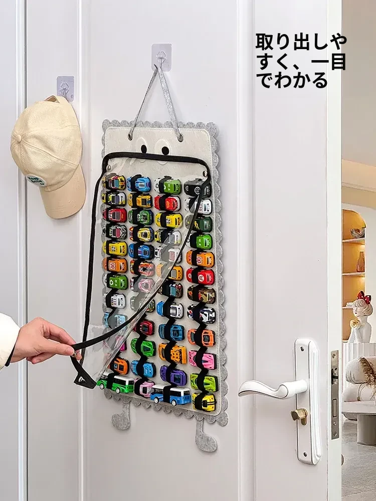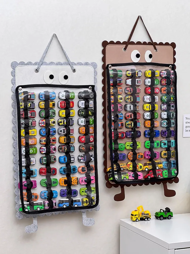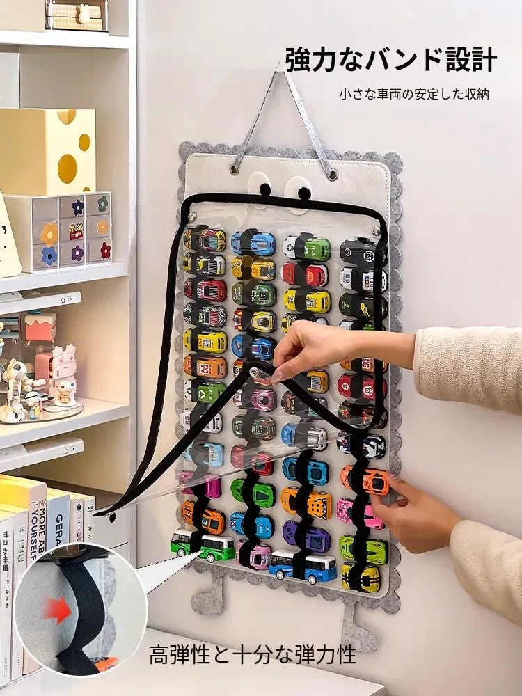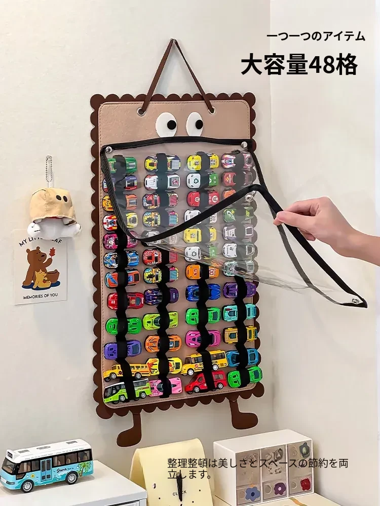 壁掛け式おもちゃカー収納ポケット - 子供向けの風火輪デザイン!多美卡の合金モデルカーを美しく展示し、部屋をスッキリ整理。おしゃれで実用的な収納アイテム!