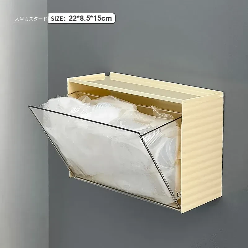 クリームイエロー-大サイズ【接着剤/調整可能な仕切り付き】二段壁掛け収納ボックス SF2809