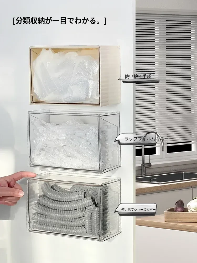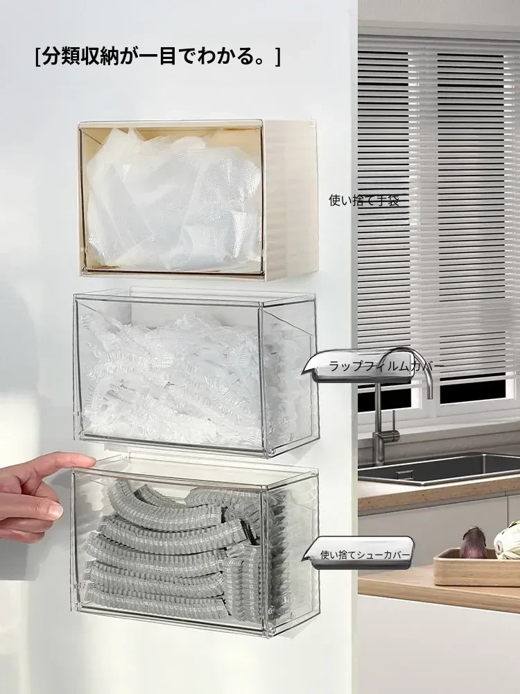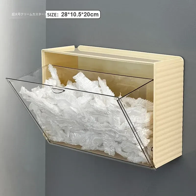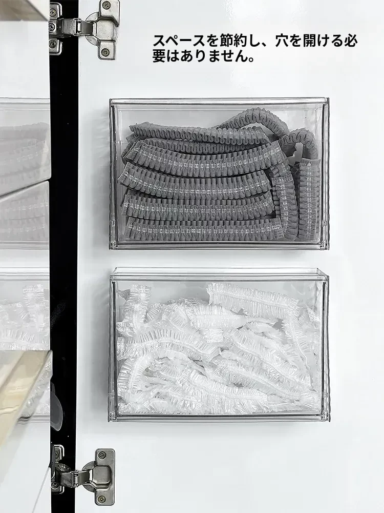 壁掛け式使い捨てシューカバー収納ボックス - 玄関用、穴あけ不要!ラテックス手袋整理ボックス、入室用マスク置き場として最適!あなたの玄関をスッキリ整頓!