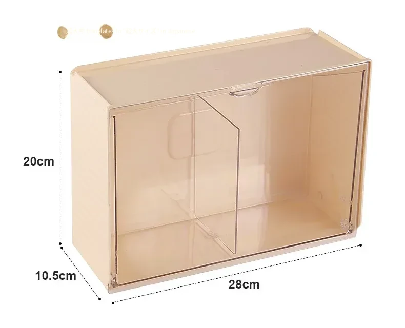 クリーム色-超大サイズ【接着剤/調整可能な仕切り付き】二段壁掛け収納ボックス SF2821