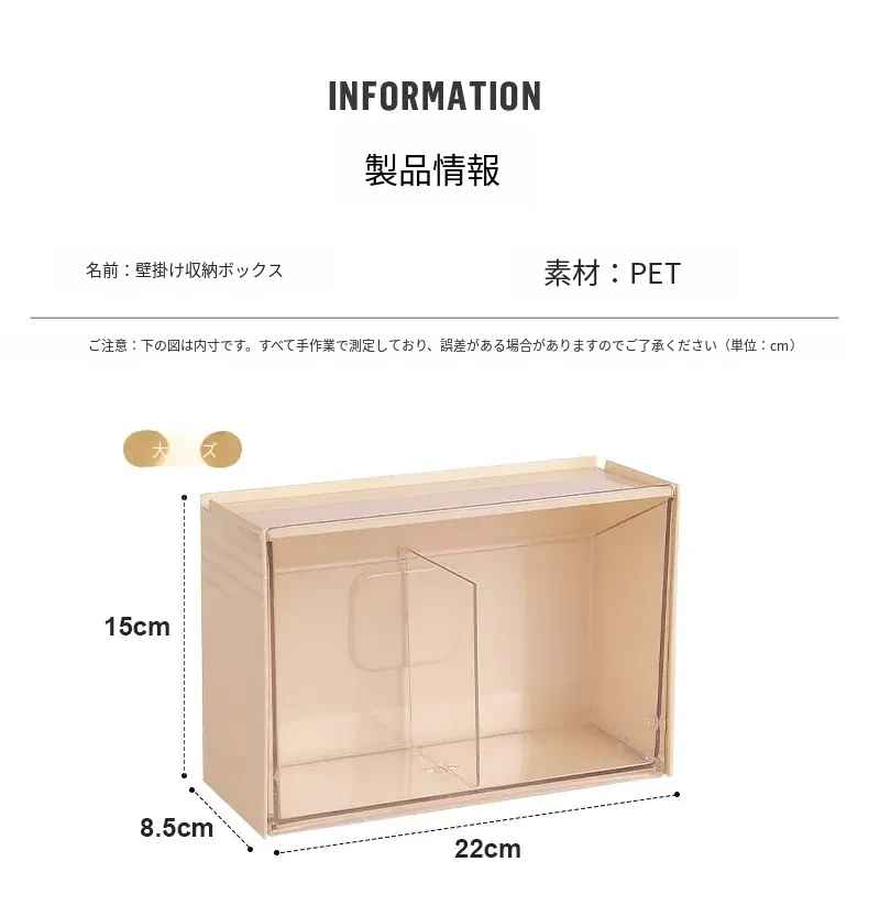 クリア-大サイズ【接着剤/調整可能な仕切り付き】二段壁掛け収納ボックス SF2810