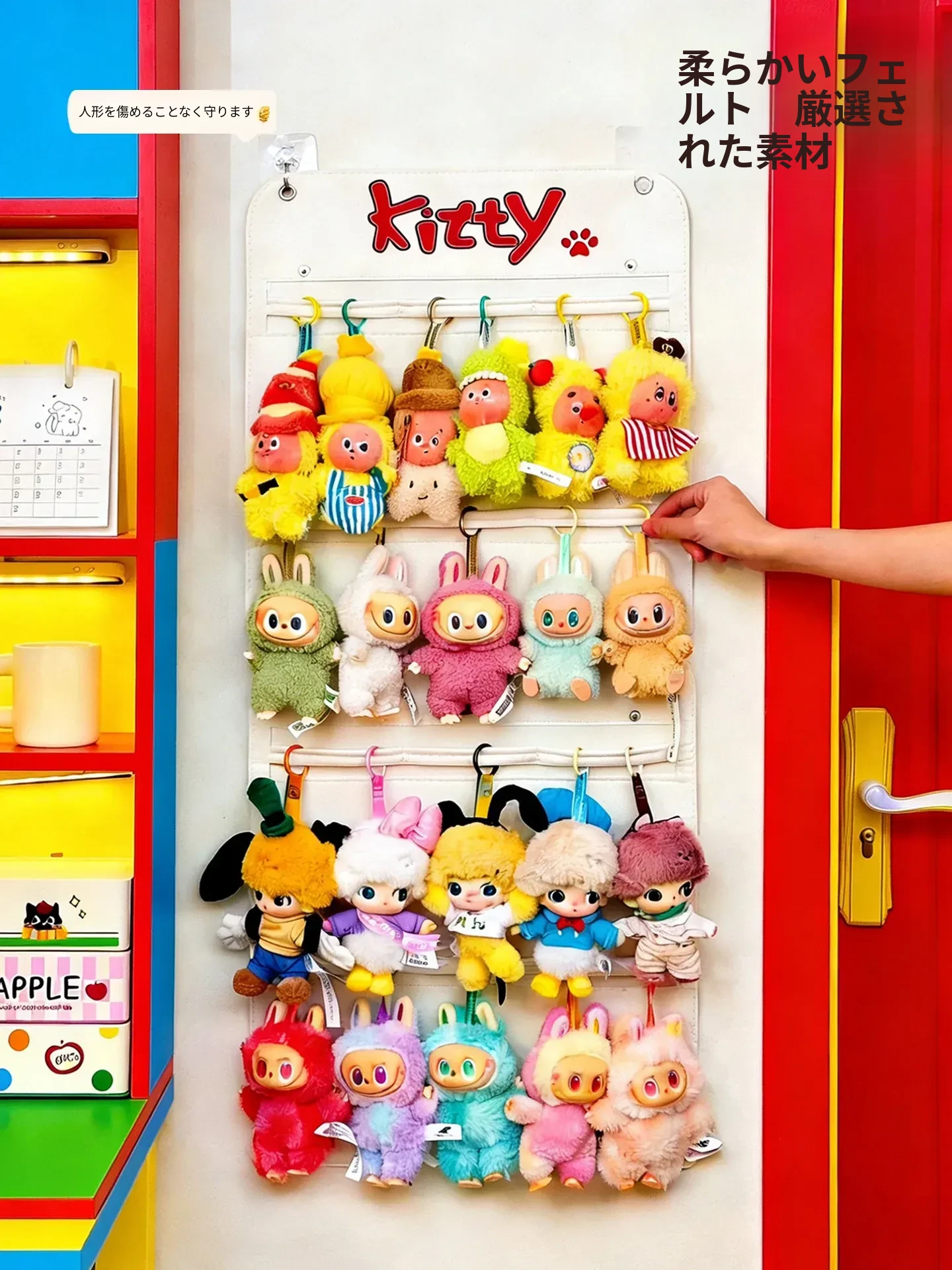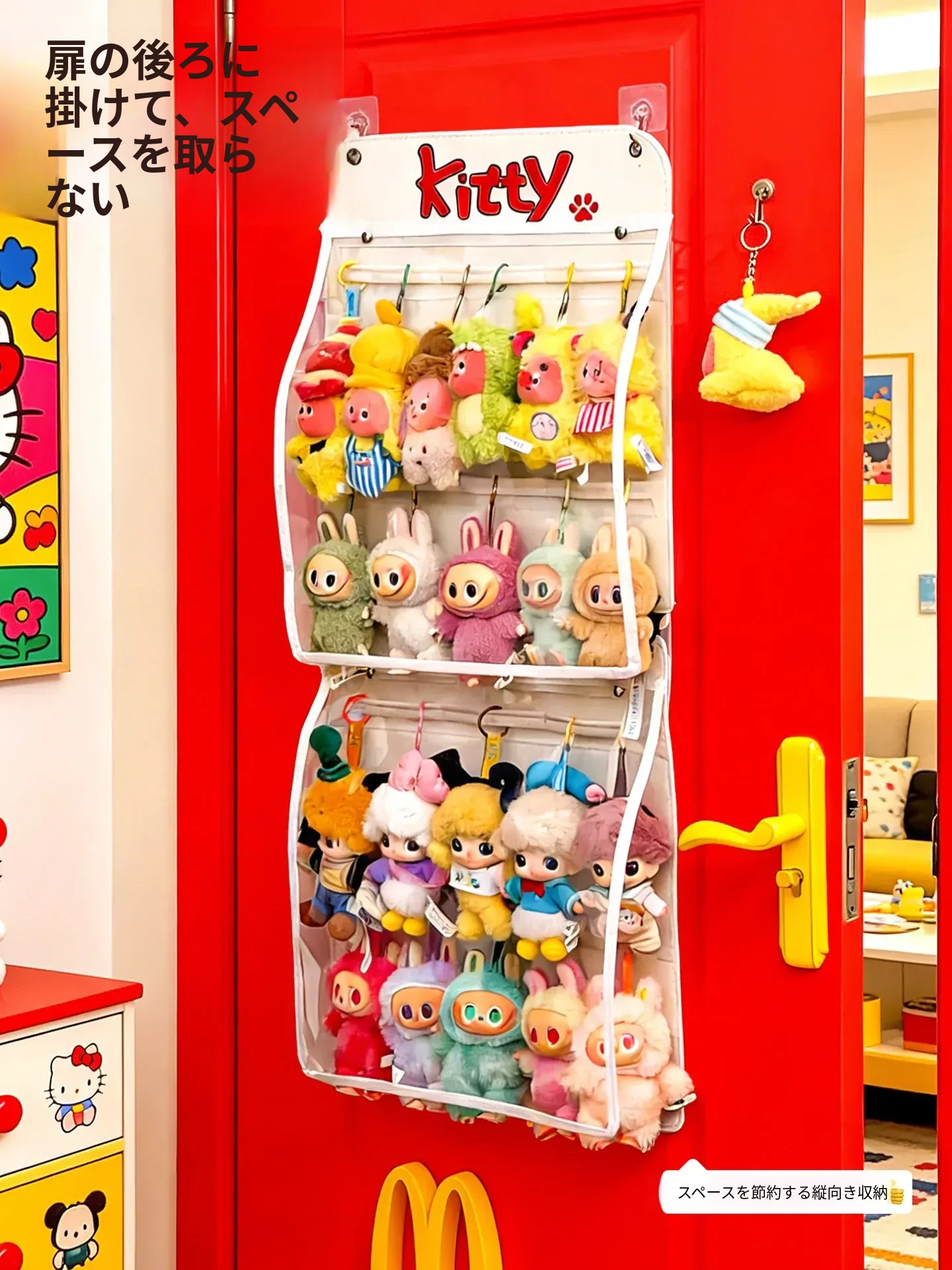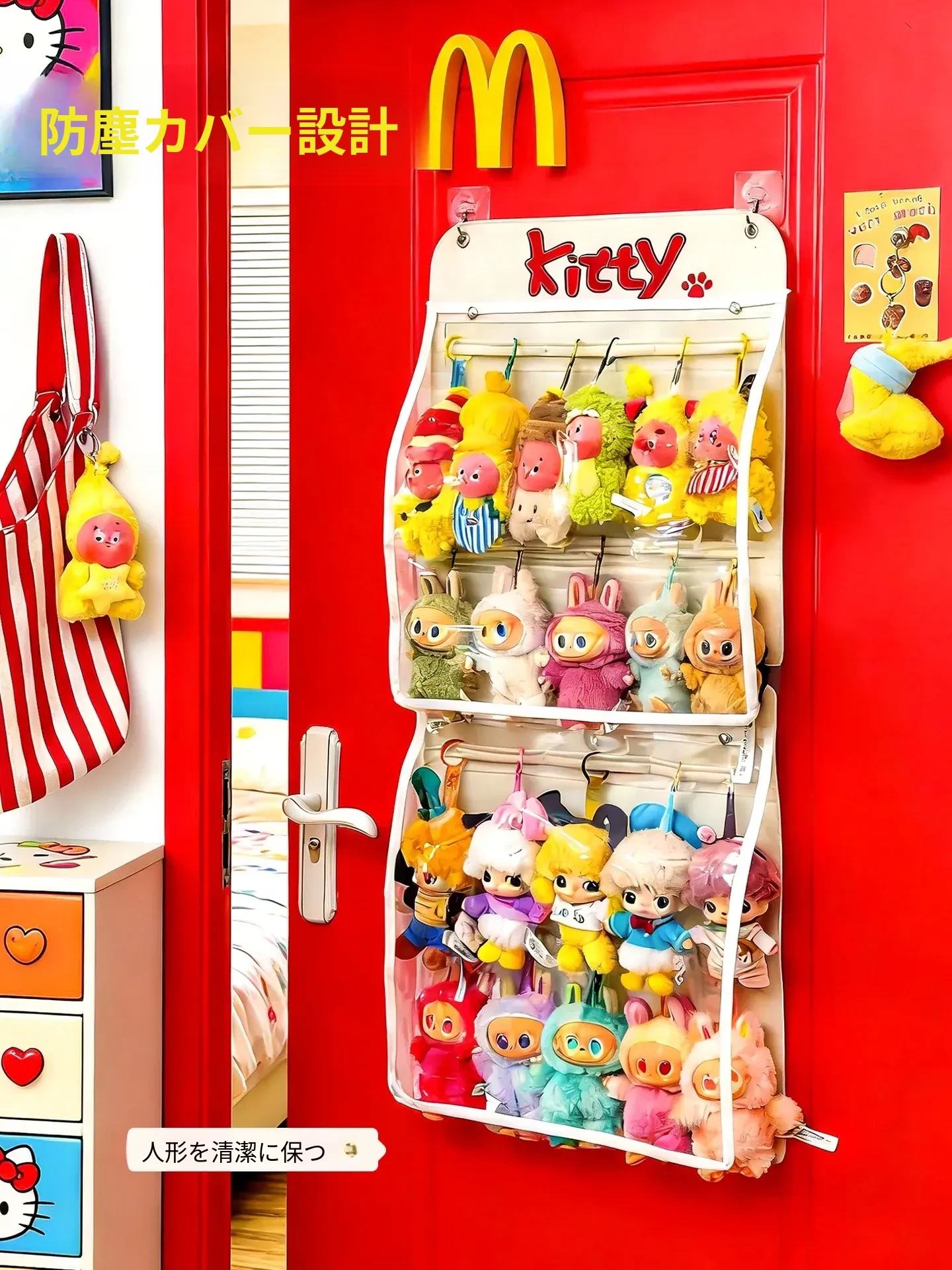 ぬいぐるみ収納ディスプレイラック - 壁掛け式でホコリから守る!おしゃれなぬいぐるみやフィギュアの整理整頓ができる便利な収納バッグ。ドアの裏にも取り付け可能で、スペースを有効活用!