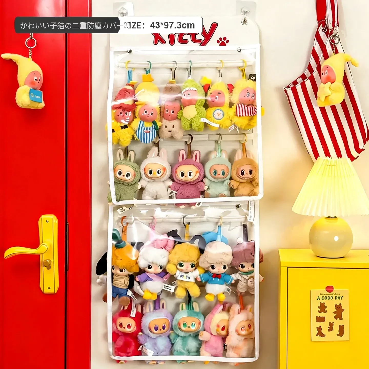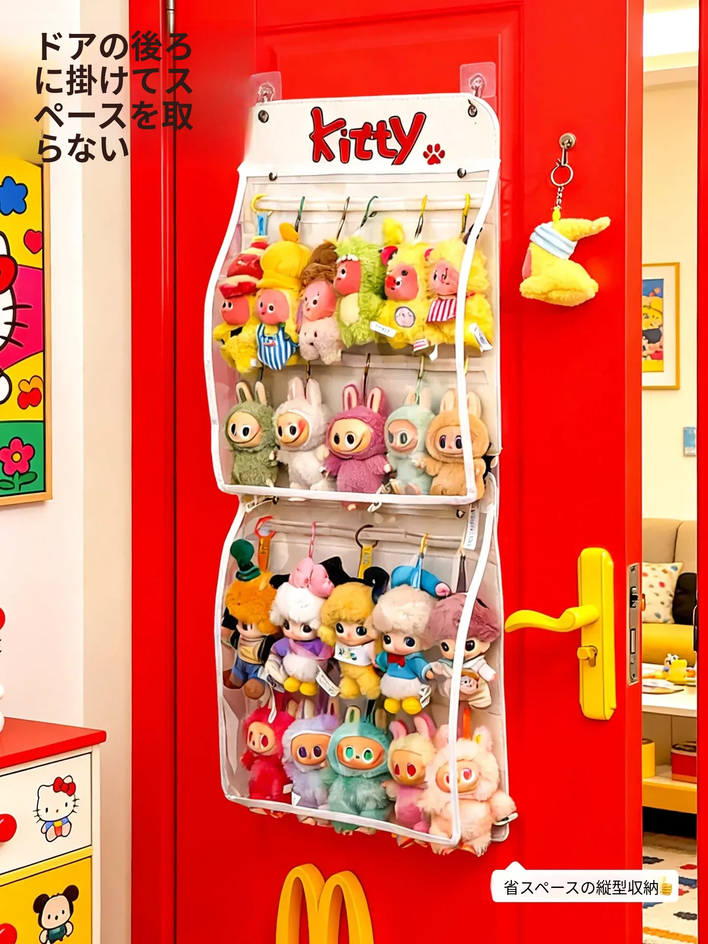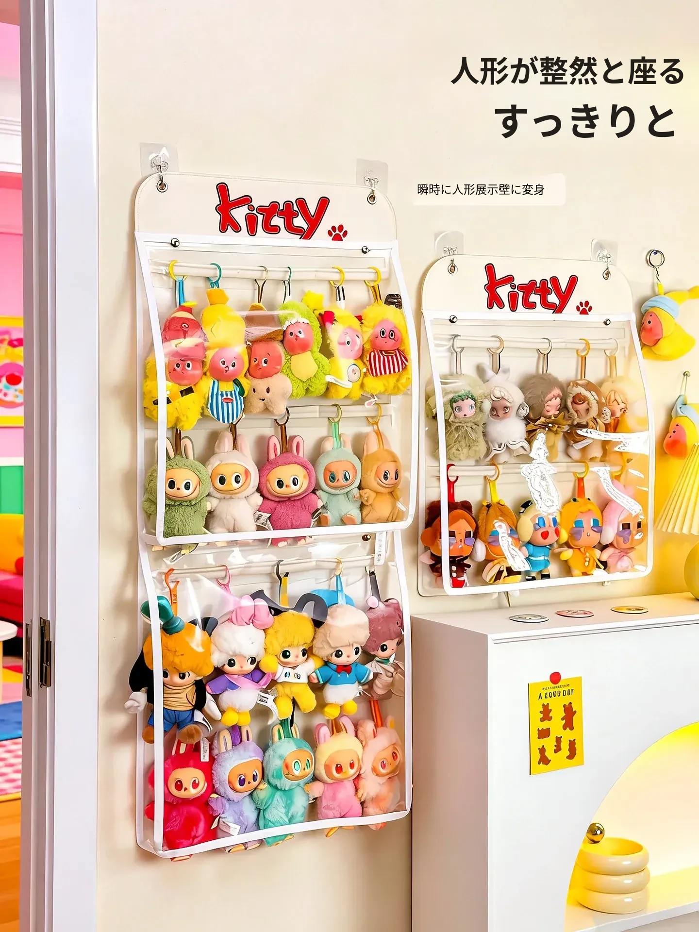 ぬいぐるみ収納ディスプレイラック - 壁掛け式でホコリから守る!おしゃれなぬいぐるみやフィギュアの整理整頓ができる便利な収納バッグ。ドアの裏にも取り付け可能で、スペースを有効活用!