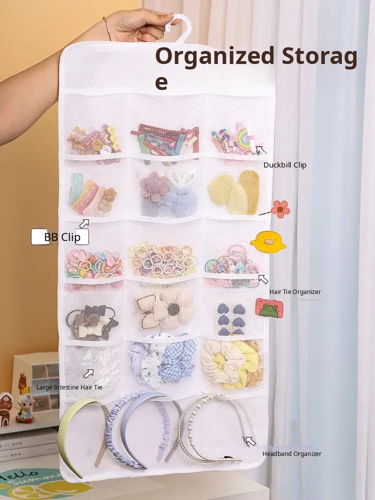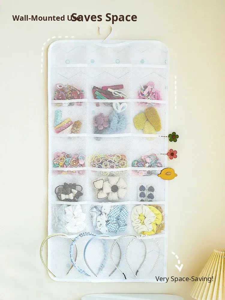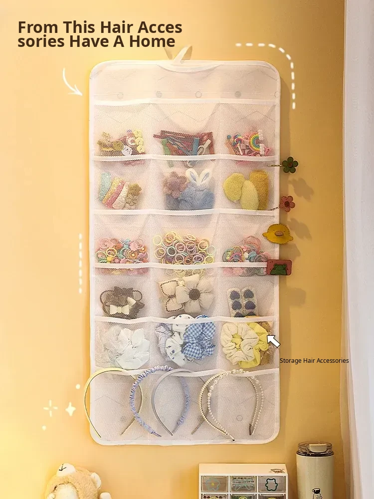 Wall-Mounted Hair Clip Organizer for Kids - Fabric Storage Bag with Dividers for Hair Accessories, Headbands, and Clips - Stylish and Functional INS Decor