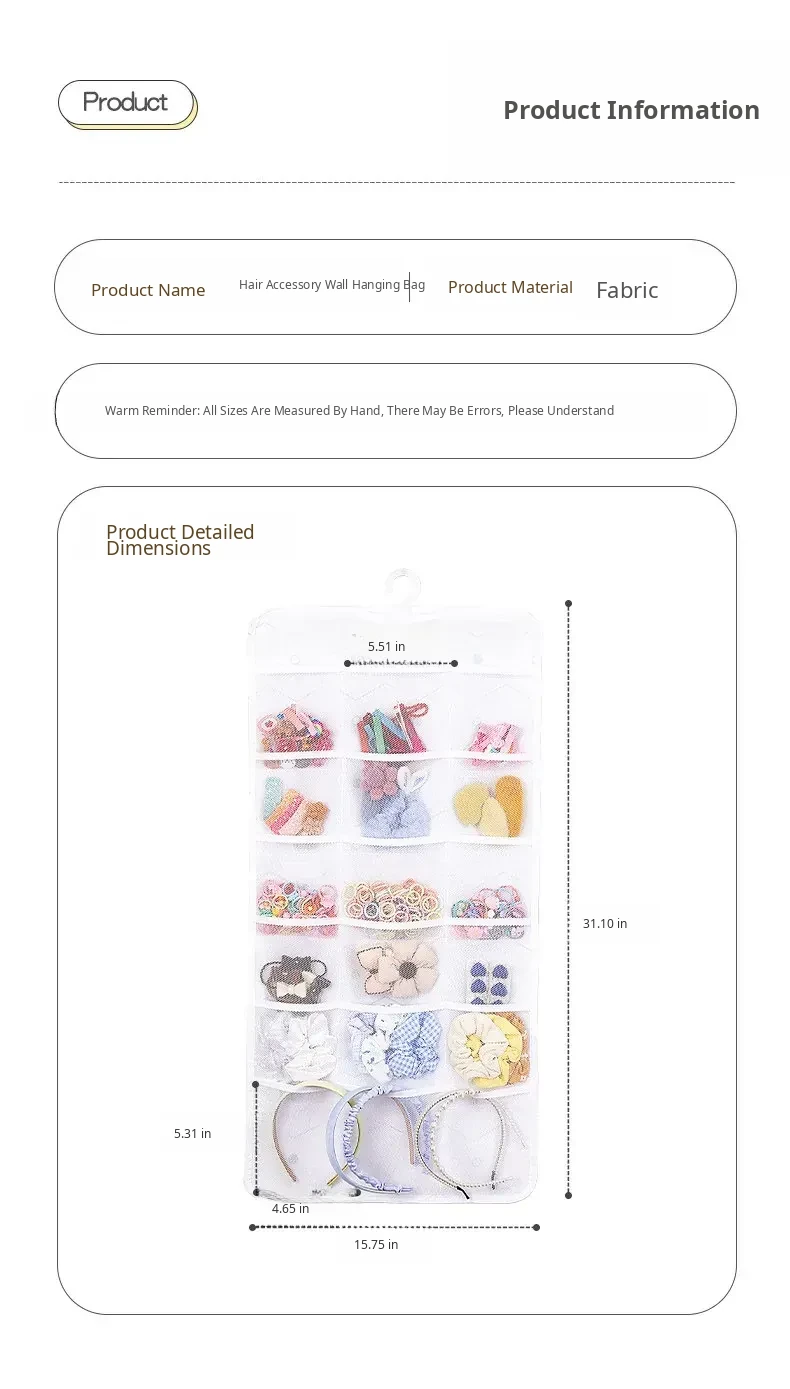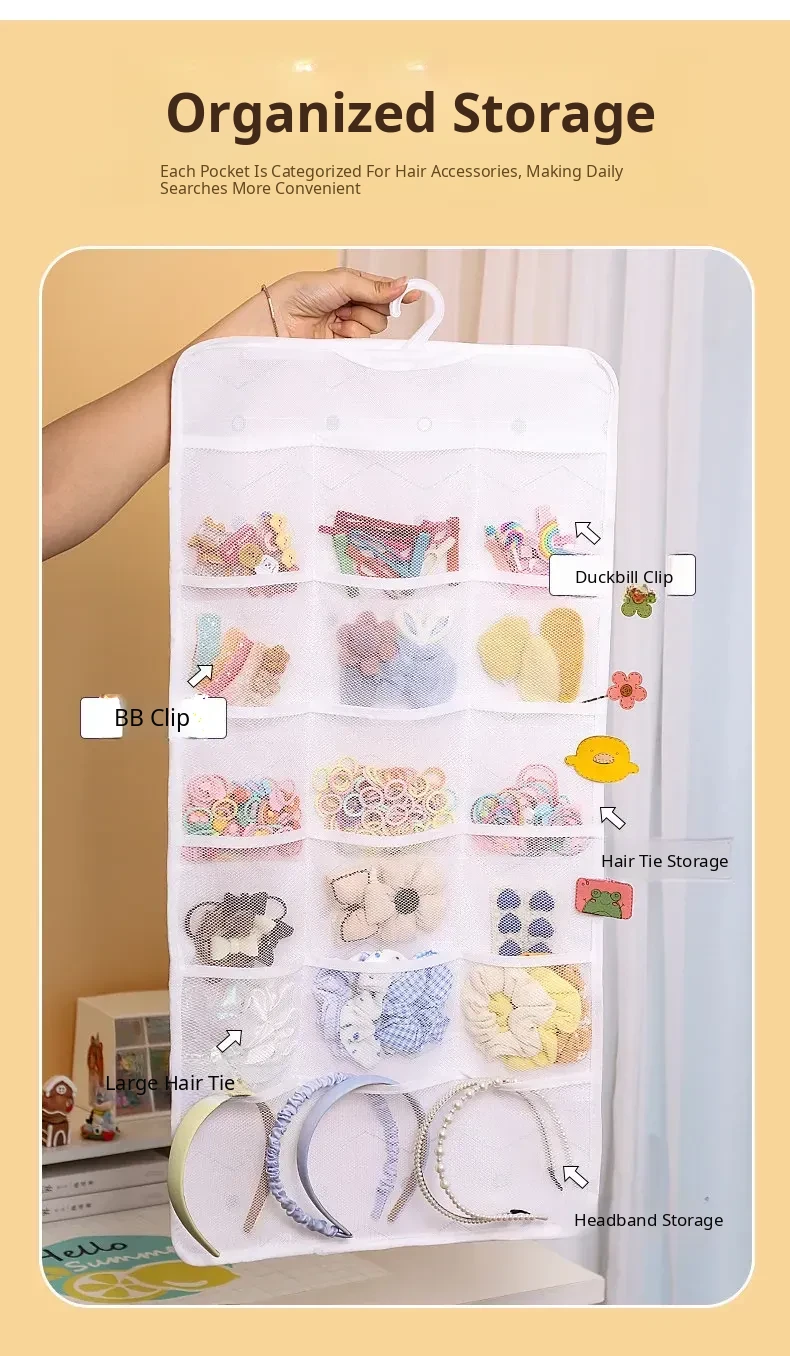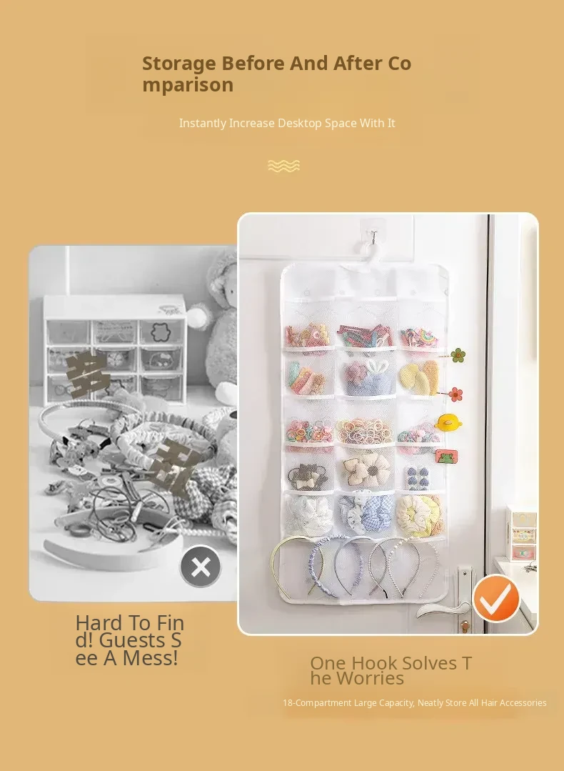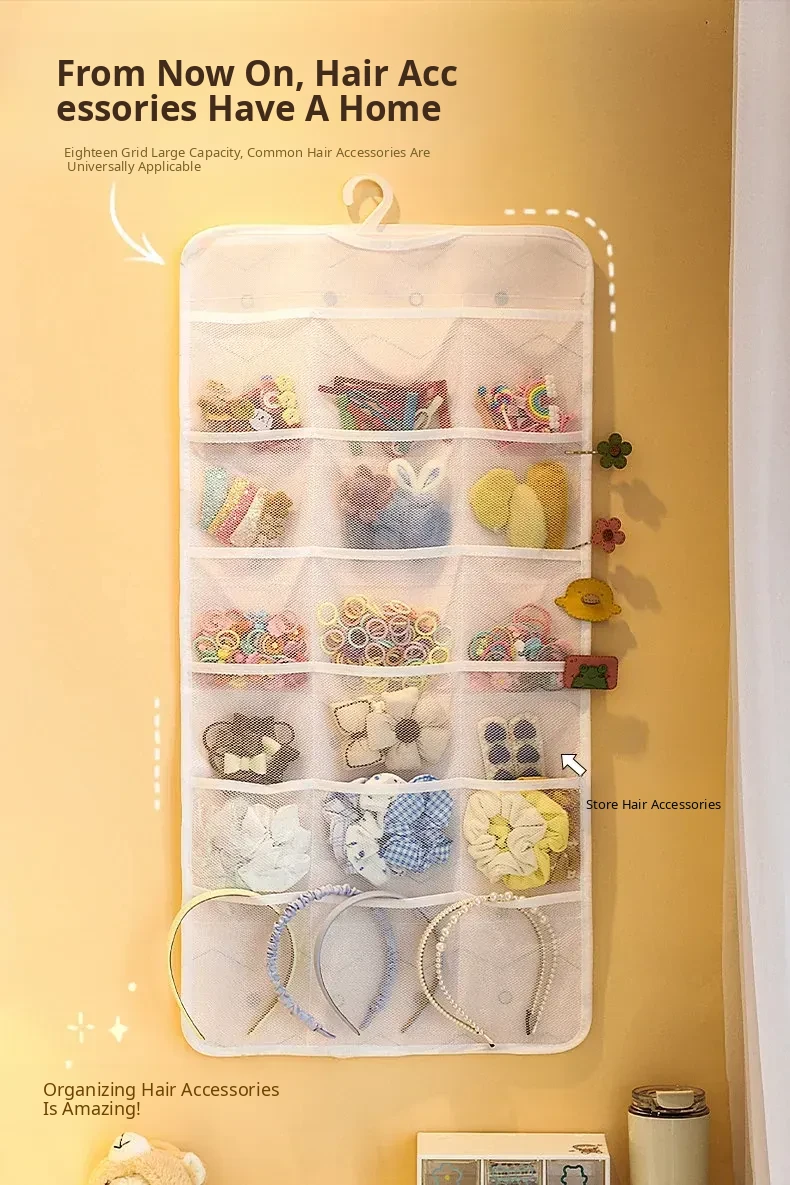 [Single Pack - Free Hook] Eighteen-Compartment Hair Accessory Hanging Organizer - Wg-2978