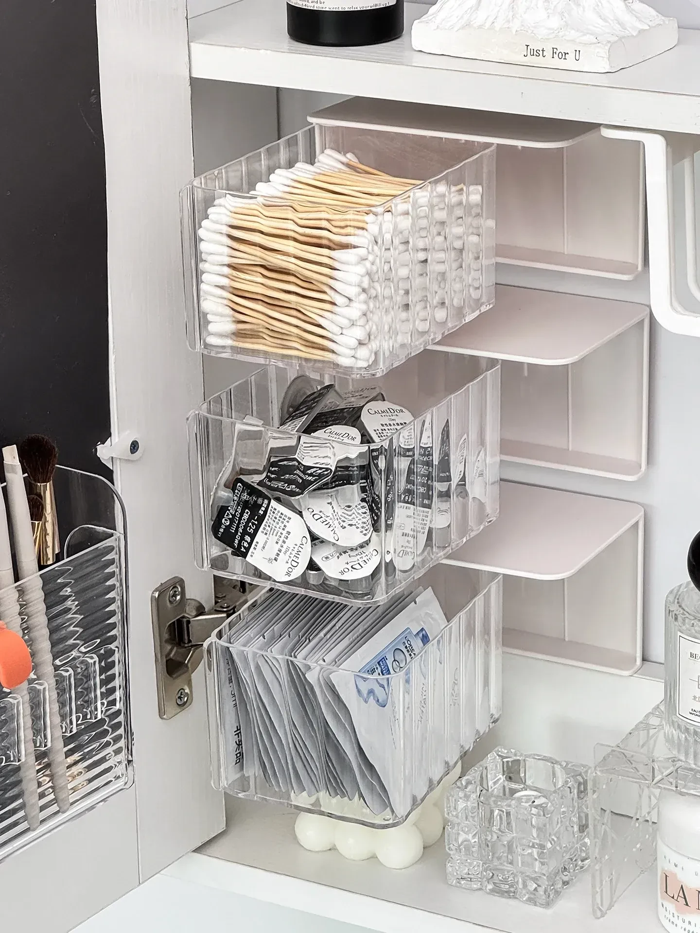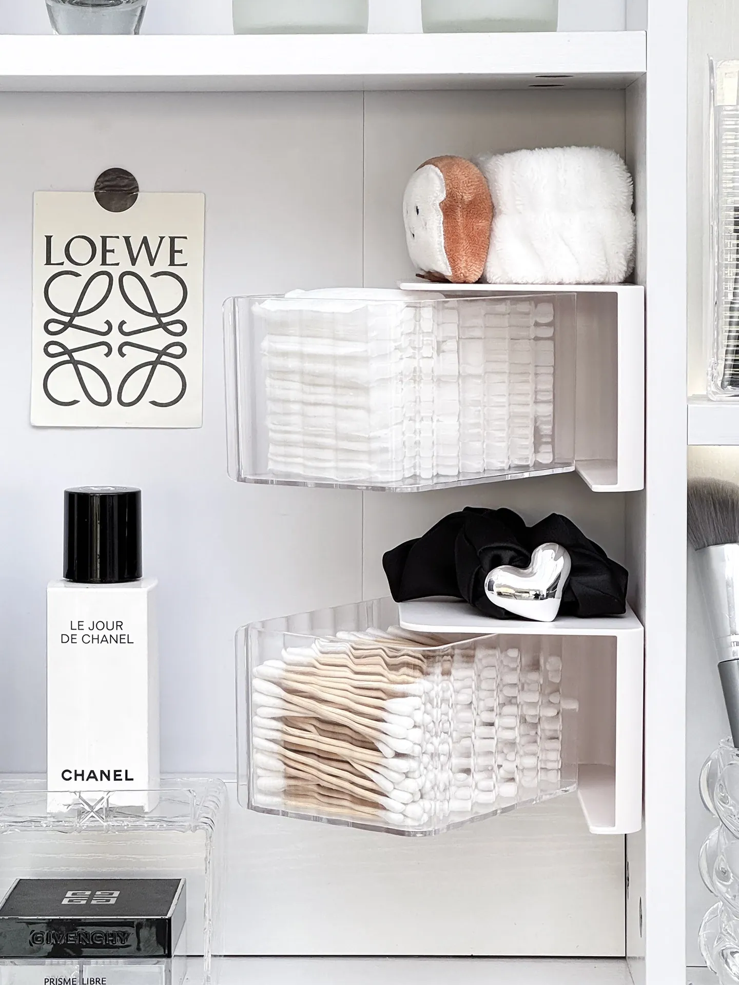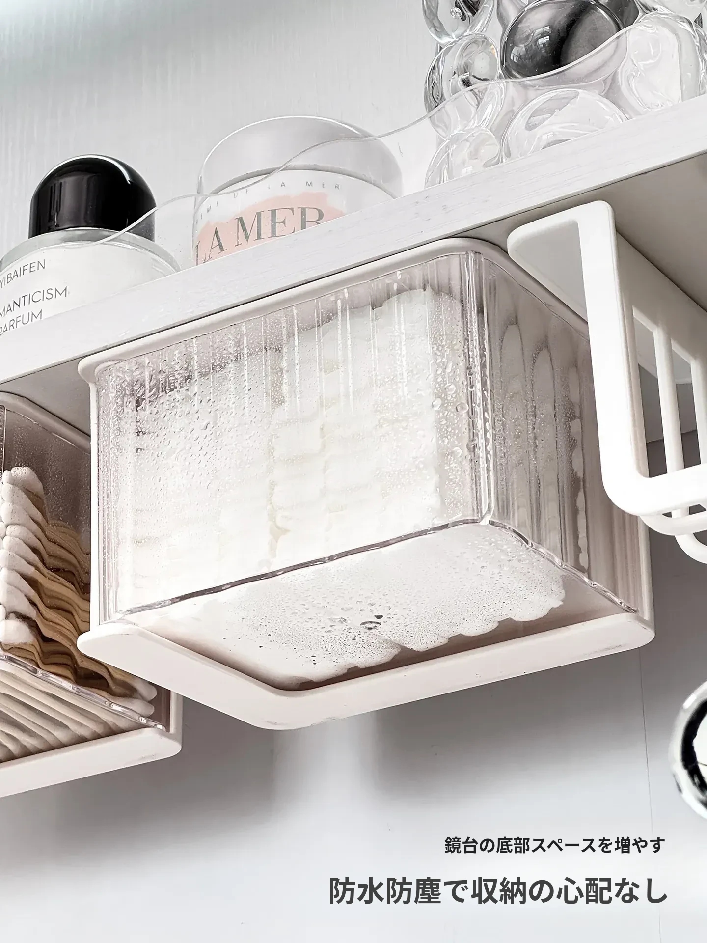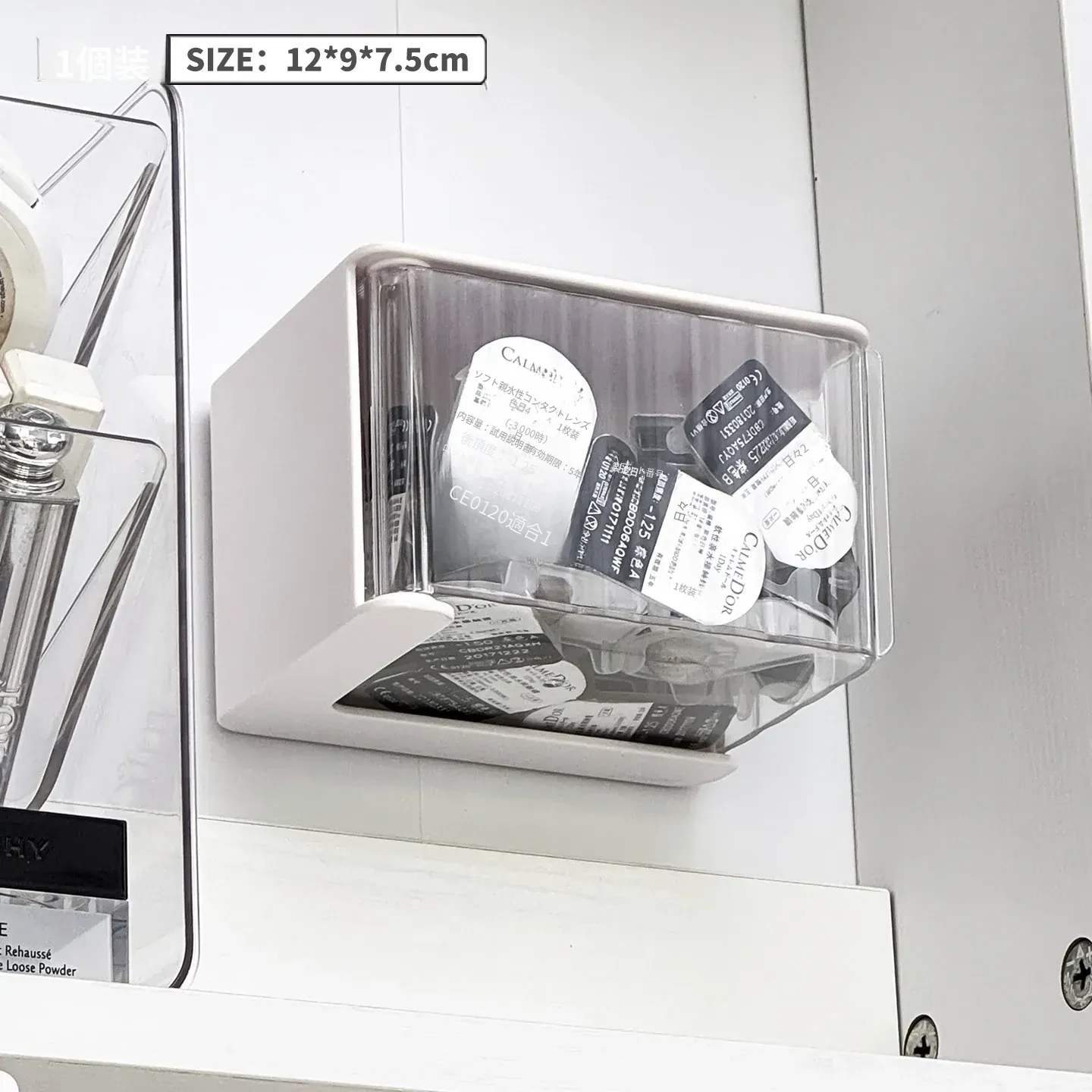 壁掛けメイク用コットン&綿棒収納ボックス - 穴を開けずに取り付け可能!お手入れ簡単で、洗面所のスペースを有効活用。メイク道具をすっきり整理して、毎日のビューティータイムをもっと快適に!
