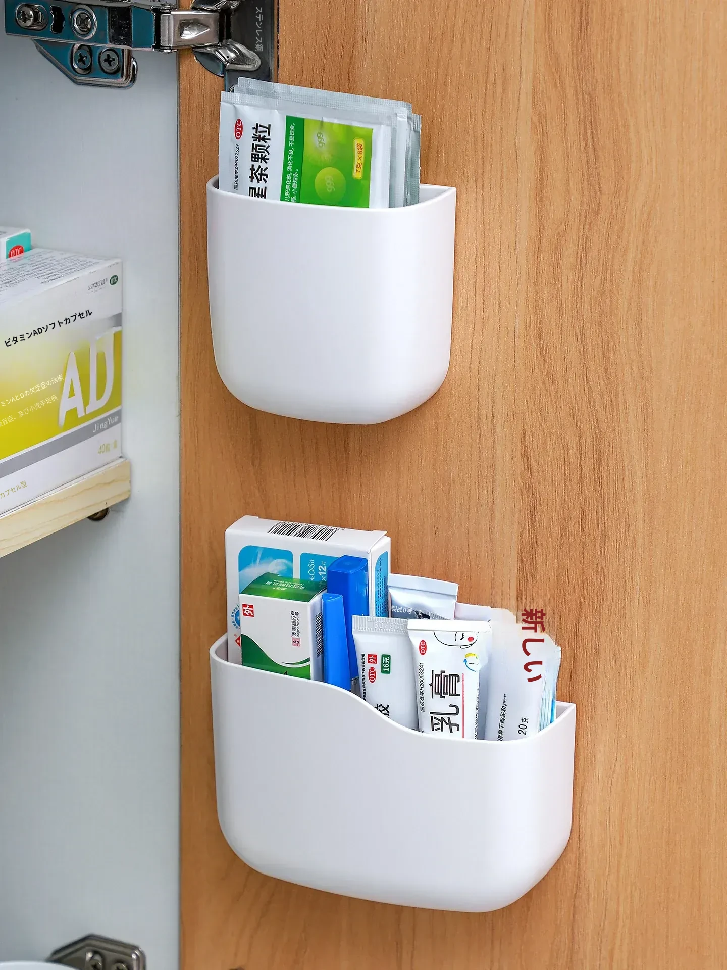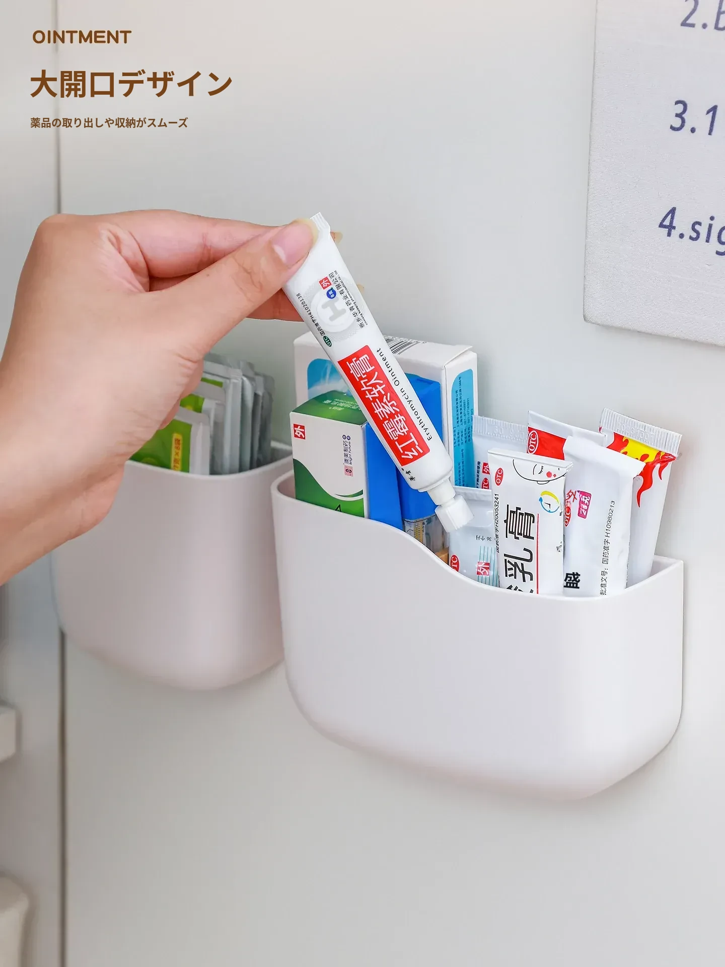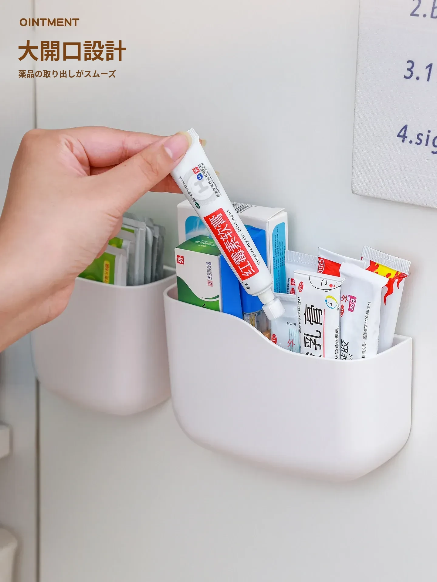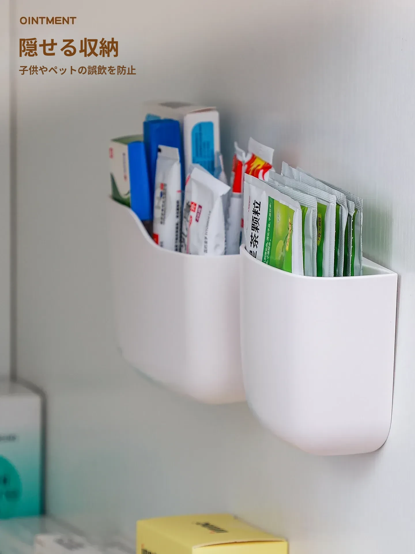 壁掛け式薬膏収納ボックス - 整理整頓に最適!ドアに取り付けるだけの簡単設置、常備薬や応急処置用品をスッキリ収納。穴あけ不要で手軽に使える、家計に優しい整理整頓アイテム!
