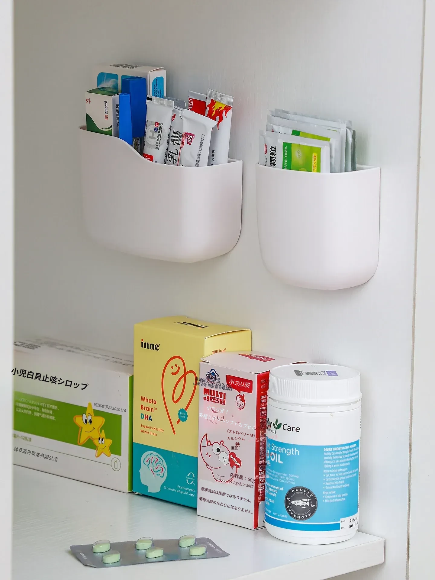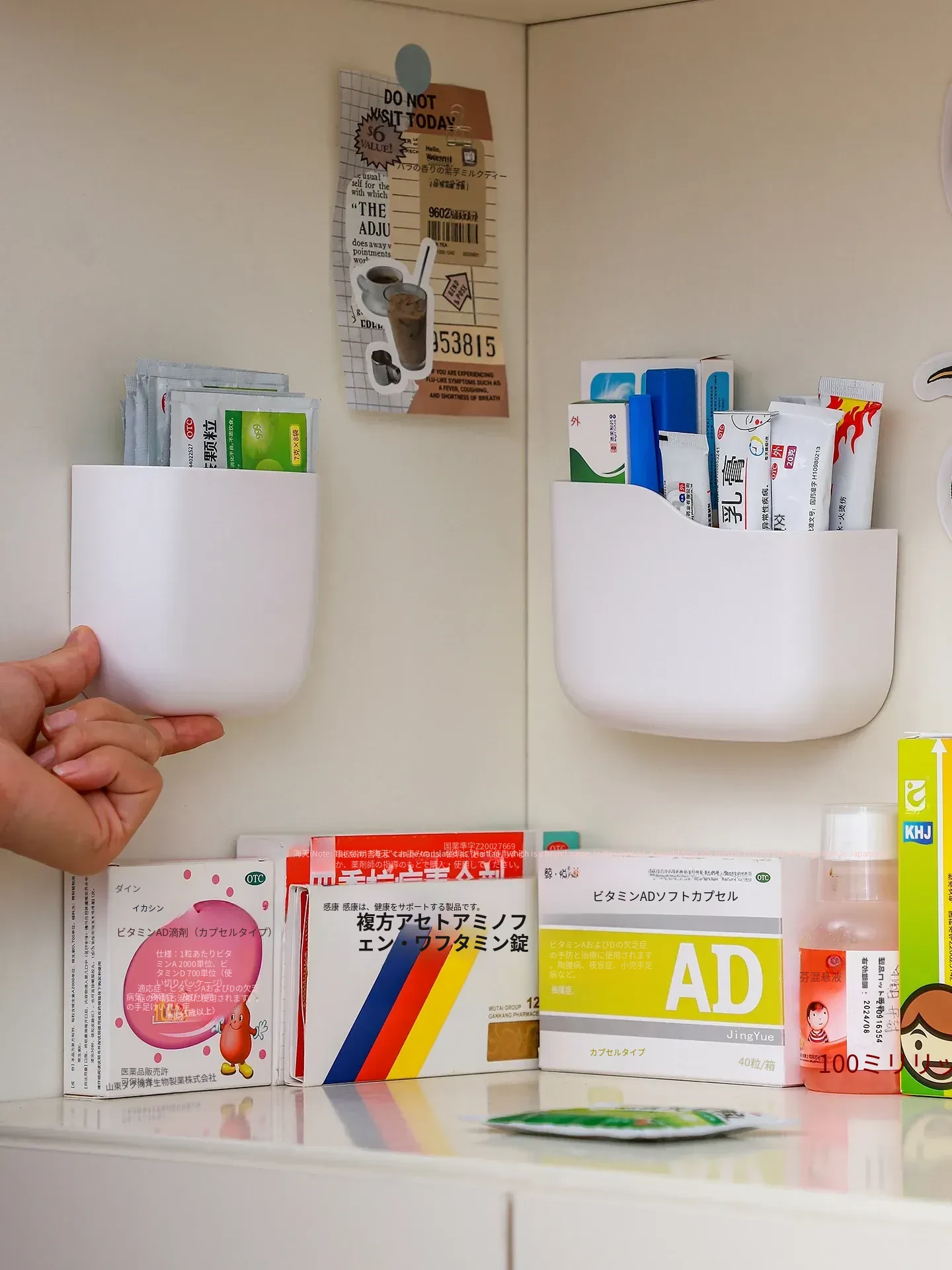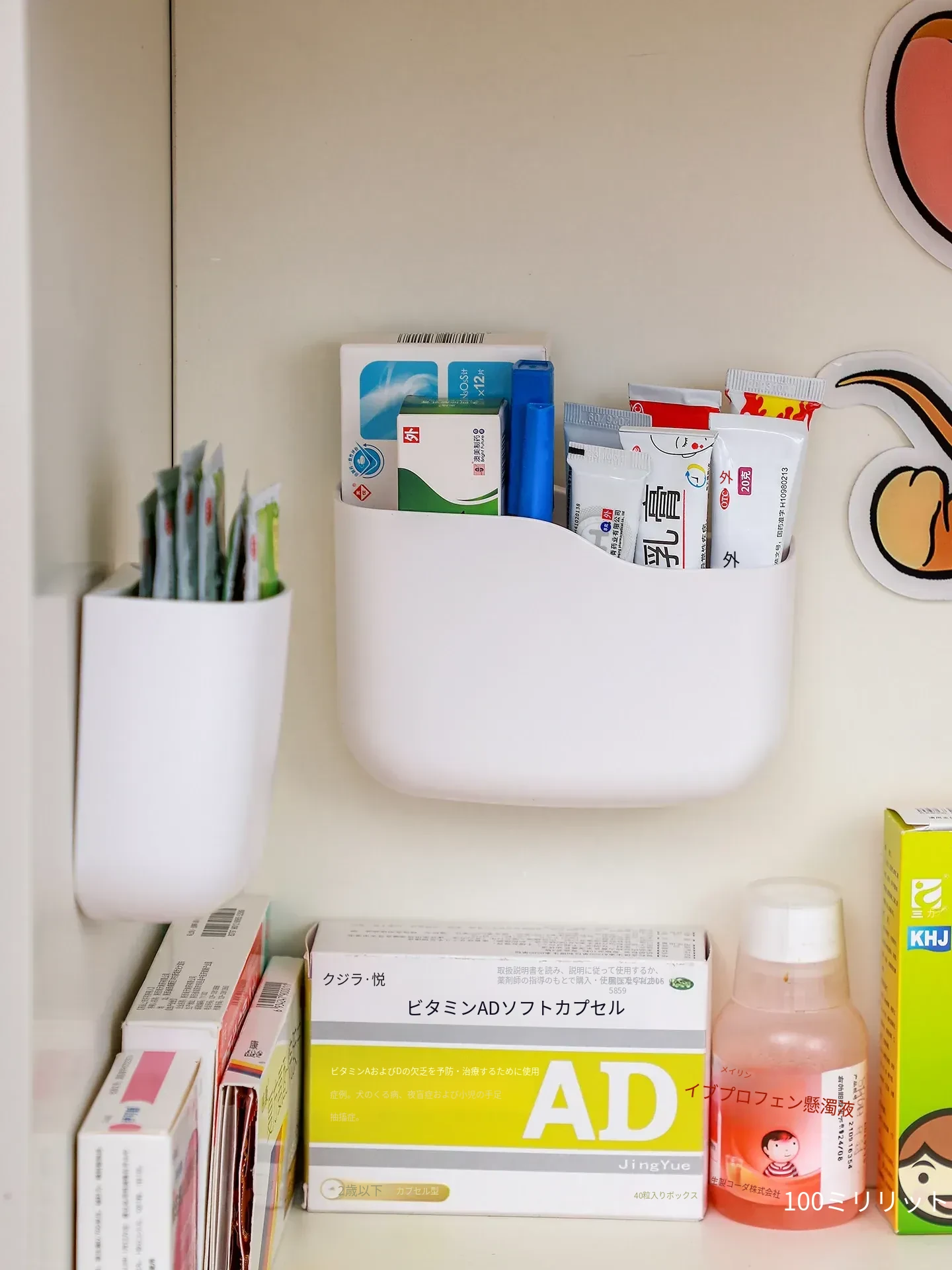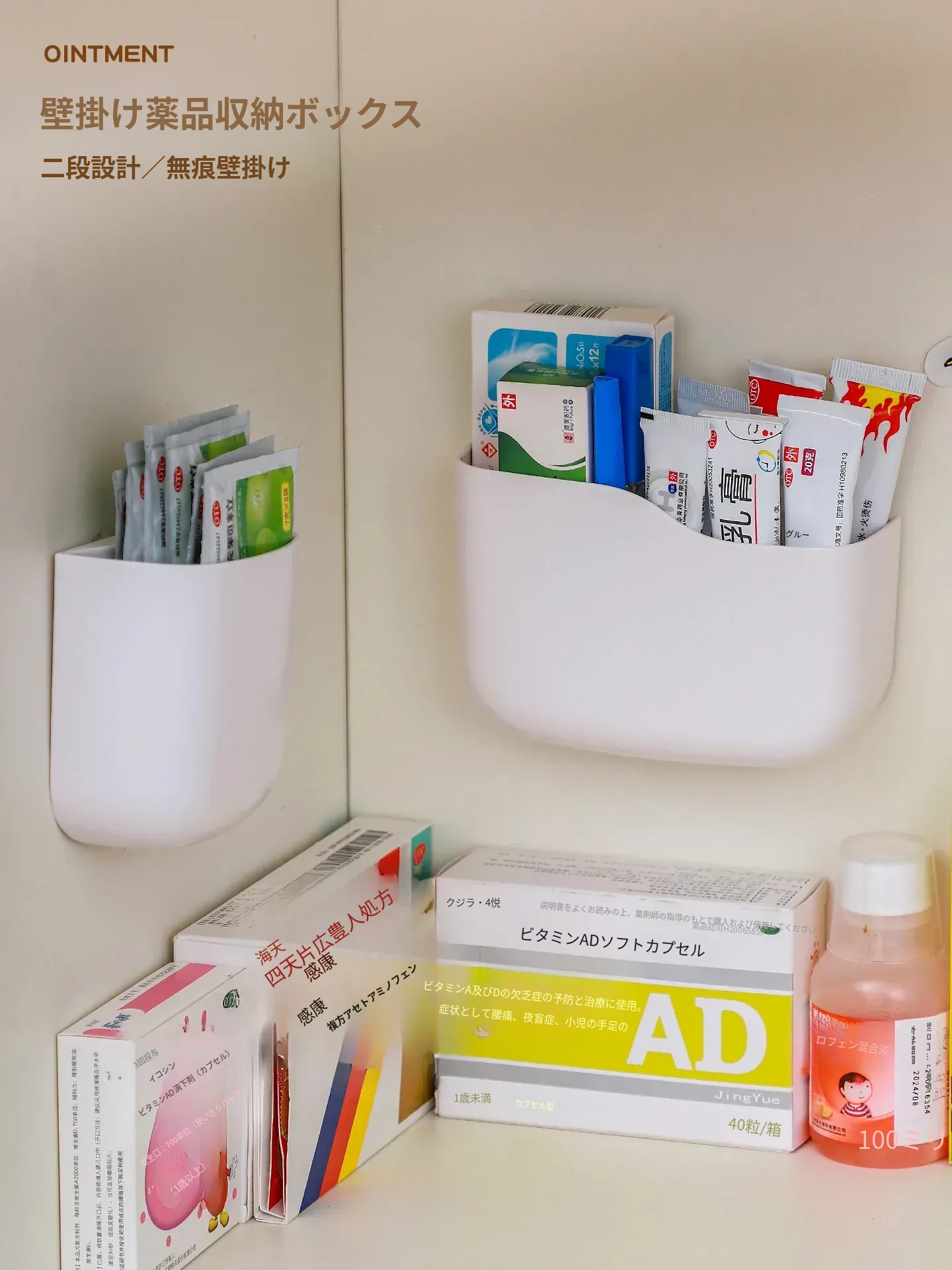 壁掛け式薬膏収納ボックス - 整理整頓に最適!ドアに取り付けるだけの簡単設置、常備薬や応急処置用品をスッキリ収納。穴あけ不要で手軽に使える、家計に優しい整理整頓アイテム!