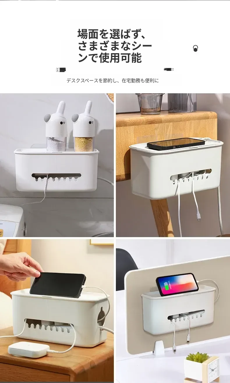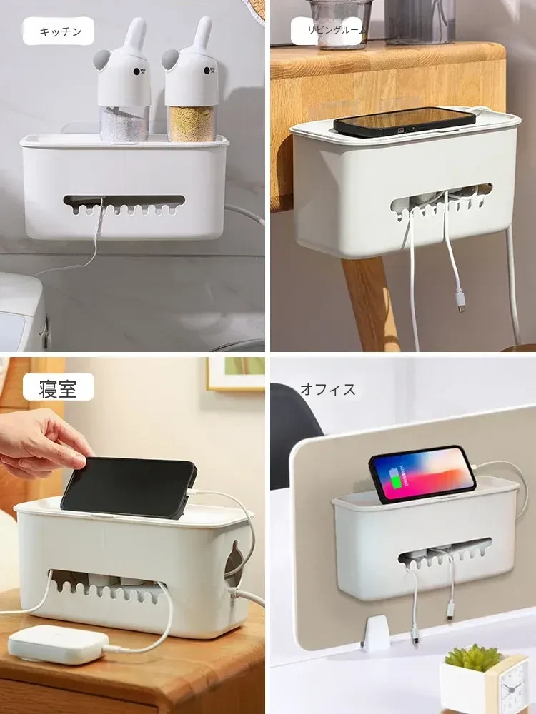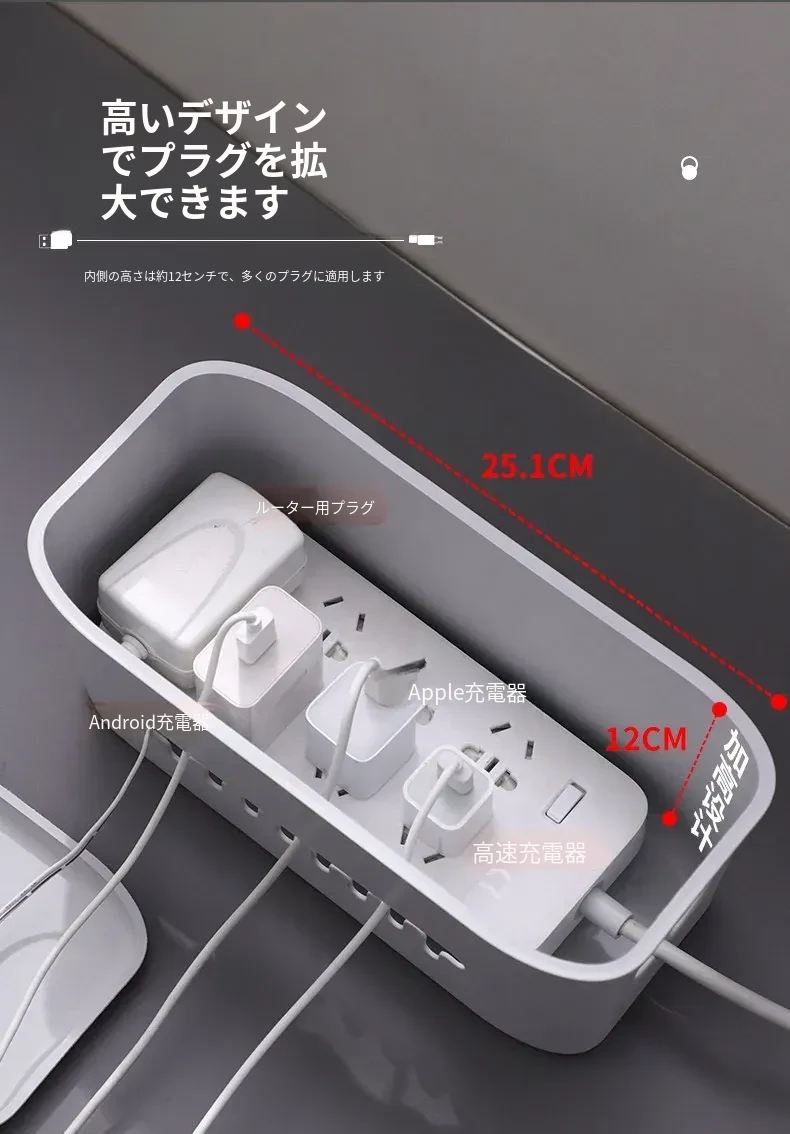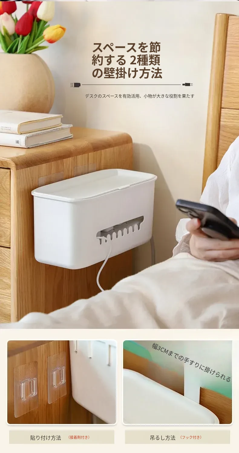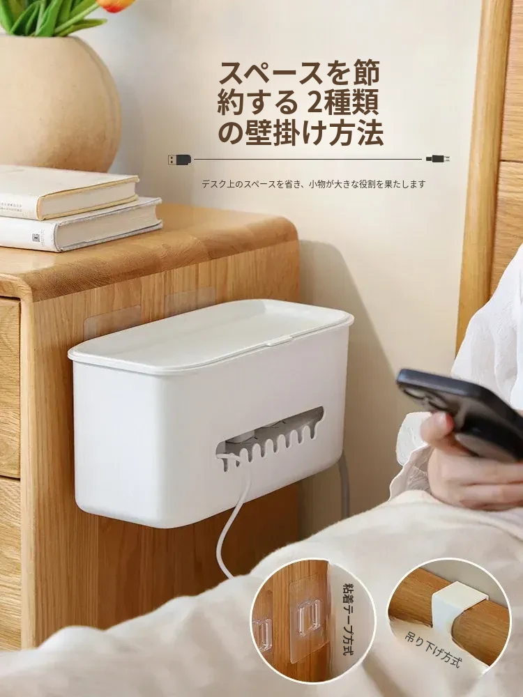 壁掛け式コード収納ボックス - 散らかりを防ぐ!コンセントタップや充電ケーブルをスマートに整理・隠す、シンプルでスタイリッシュなデザイン。あなたの空間をスッキリと整えます!