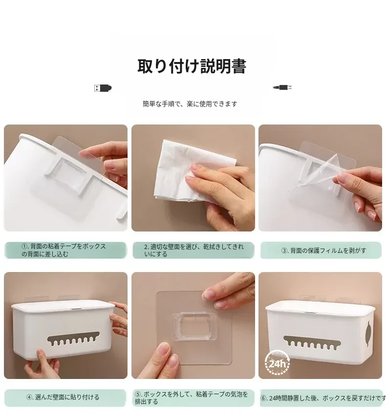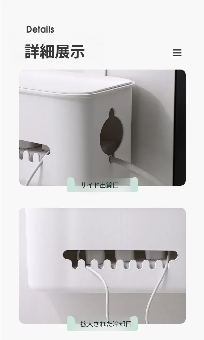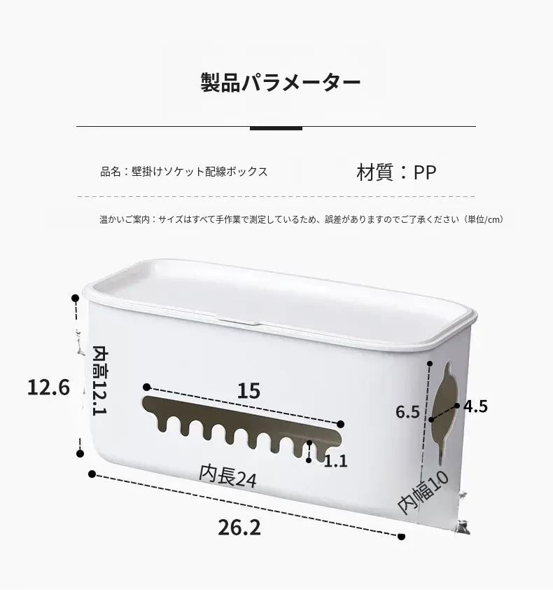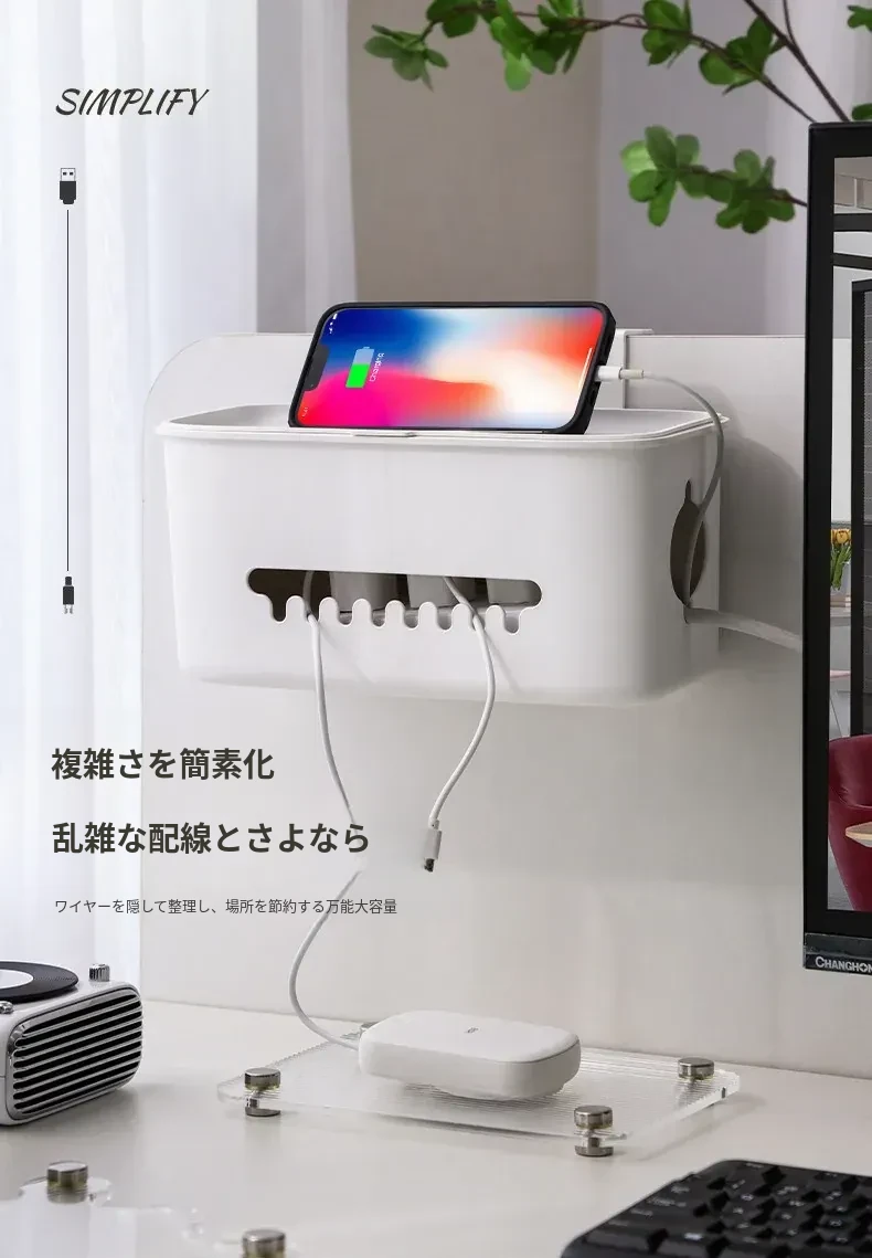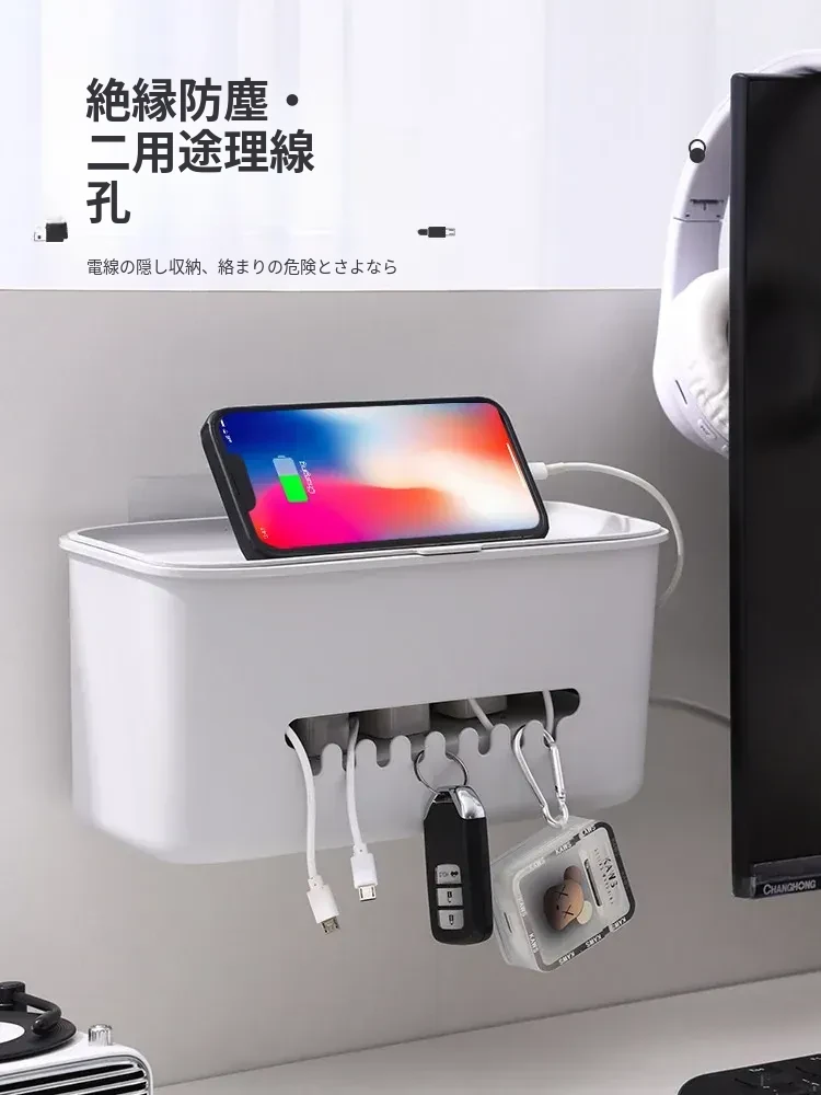 壁掛け式コード収納ボックス - 散らかりを防ぐ!コンセントタップや充電ケーブルをスマートに整理・隠す、シンプルでスタイリッシュなデザイン。あなたの空間をスッキリと整えます!