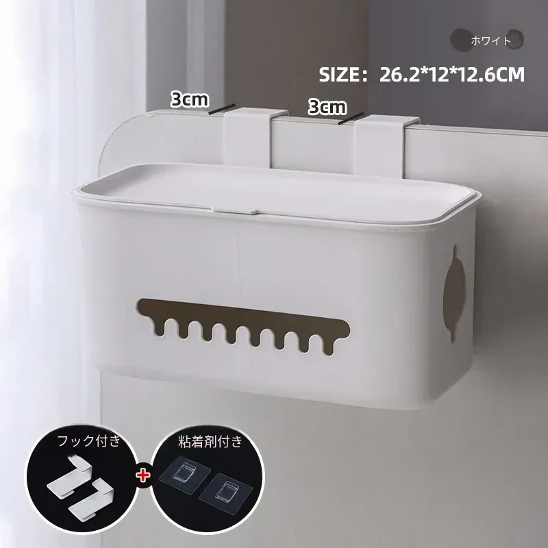 【フック/粘着両用】白色壁掛け収納ボックス-SF-2037