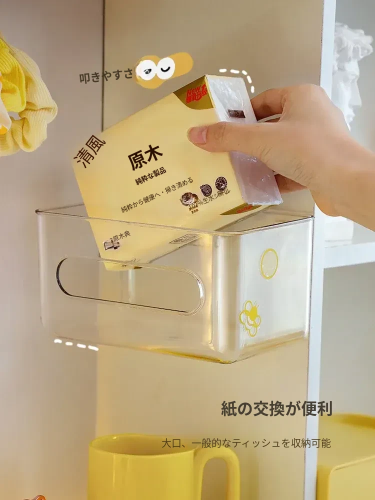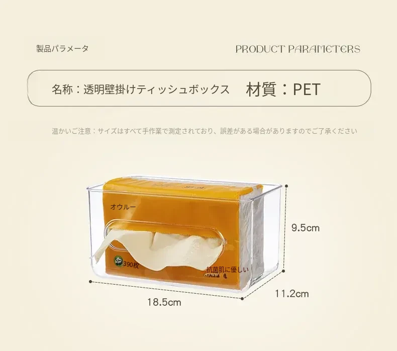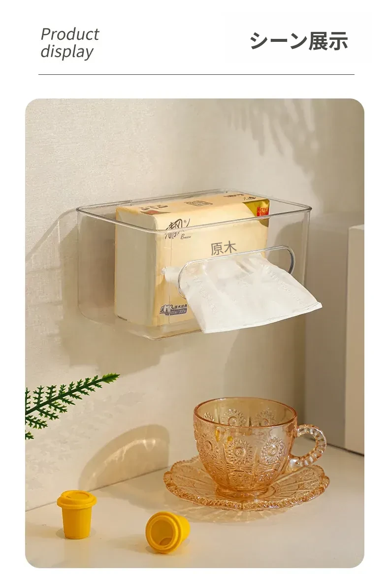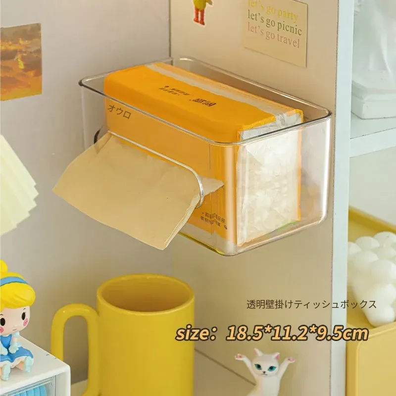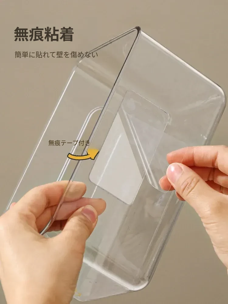 【1個セット-1枚の粘着シート付き】壁掛け式透明ティッシュボックス-SF1398