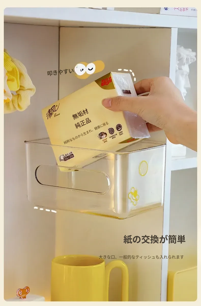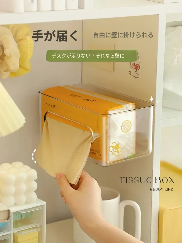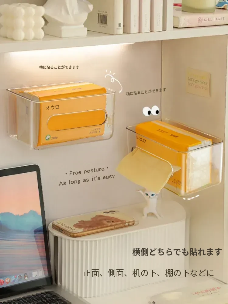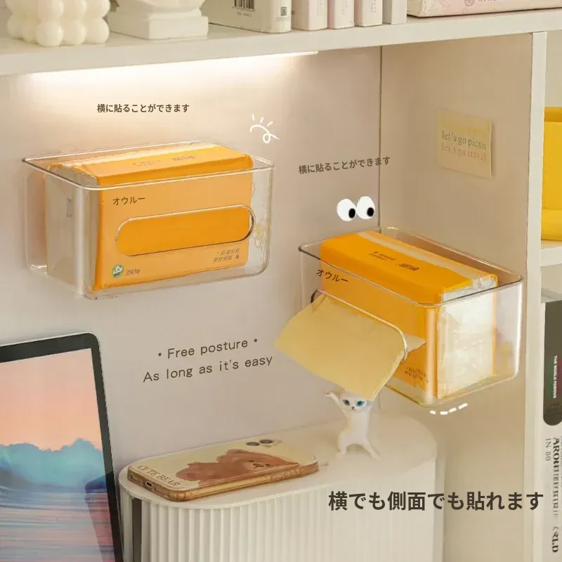 【1個セット-1枚の粘着シート付き】壁掛け式透明ティッシュボックス-SF1398