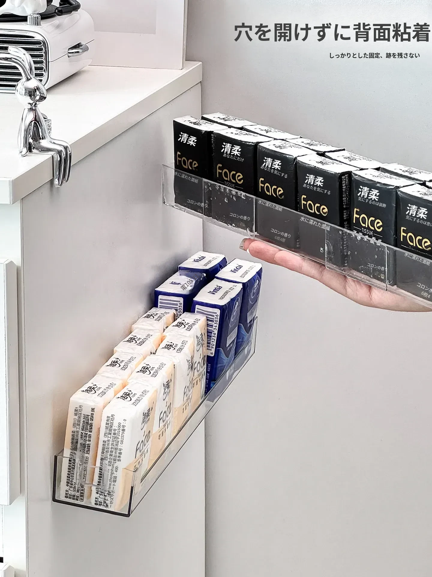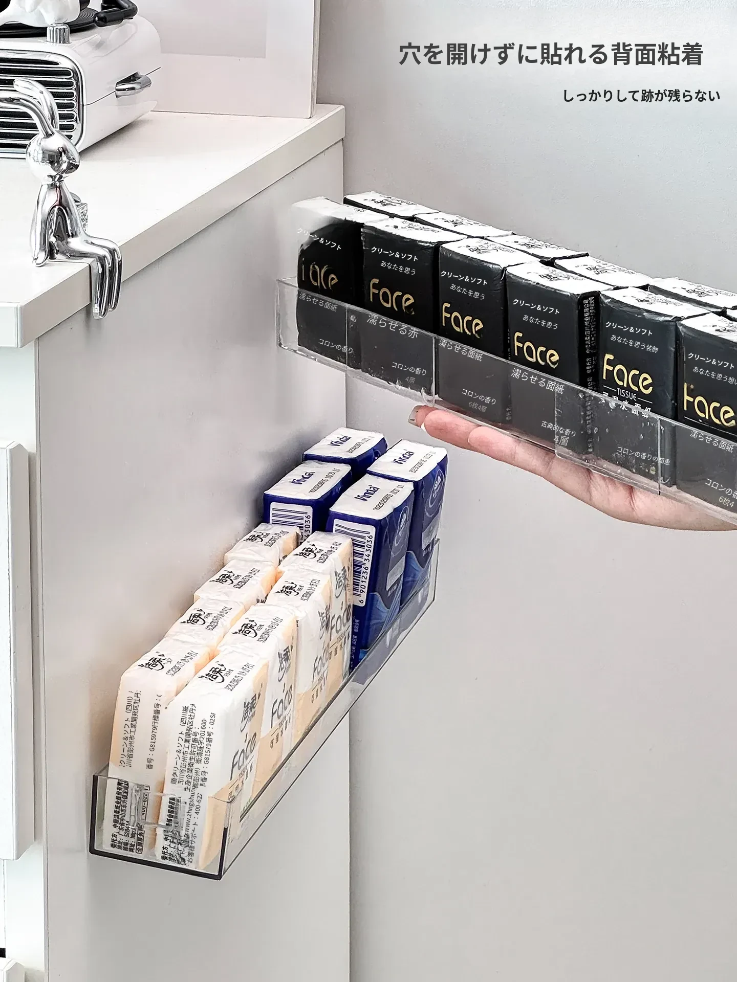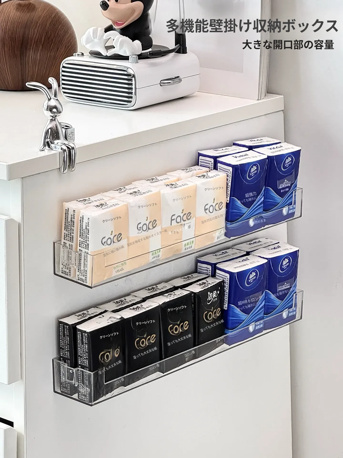 玄関用ハンカチティッシュ収納ボックス 壁掛け式 スマート小物入れ ナプキンホルダー ドア整理 取り付け不要のティッシュケースでスッキリ収納!