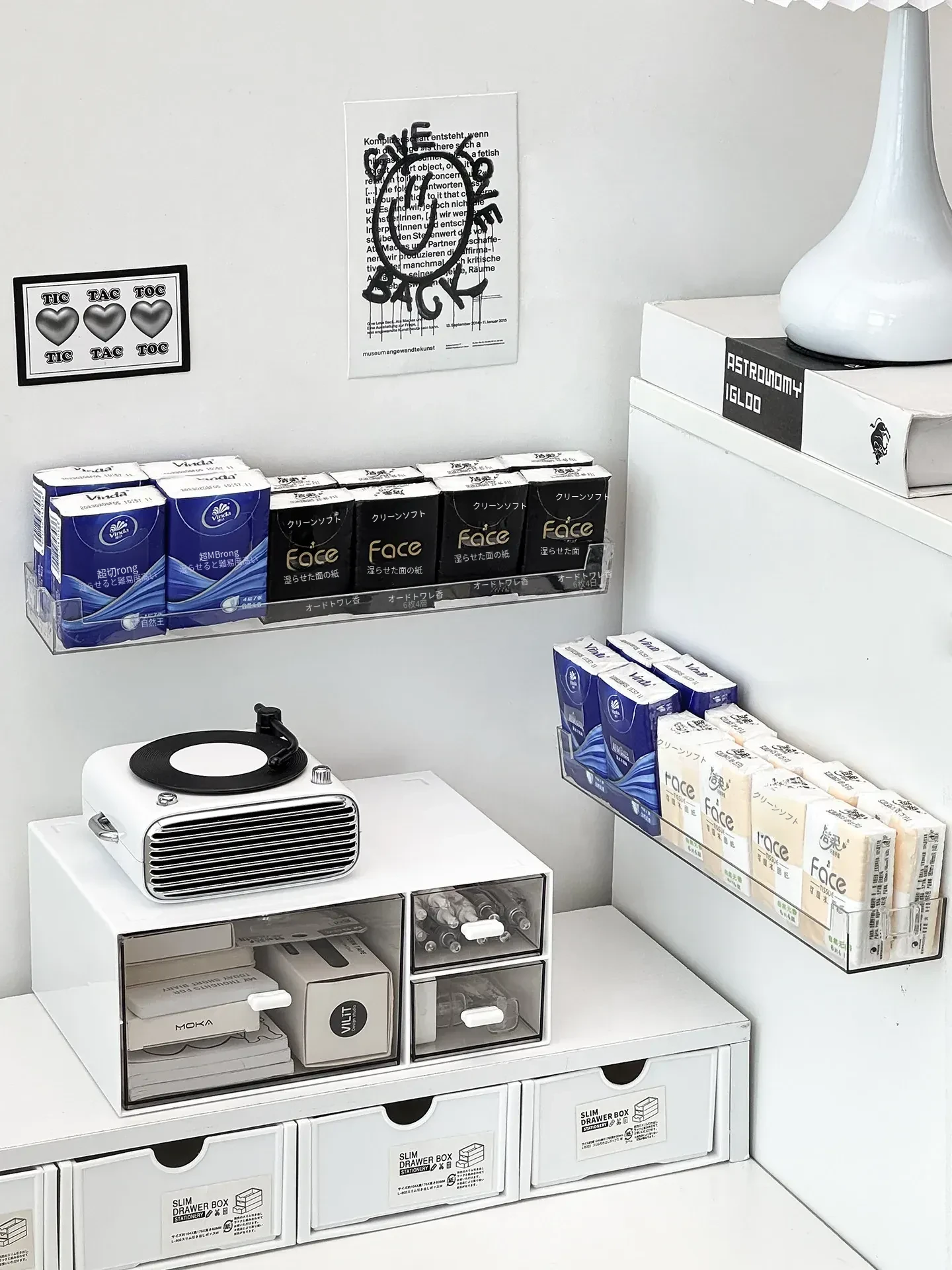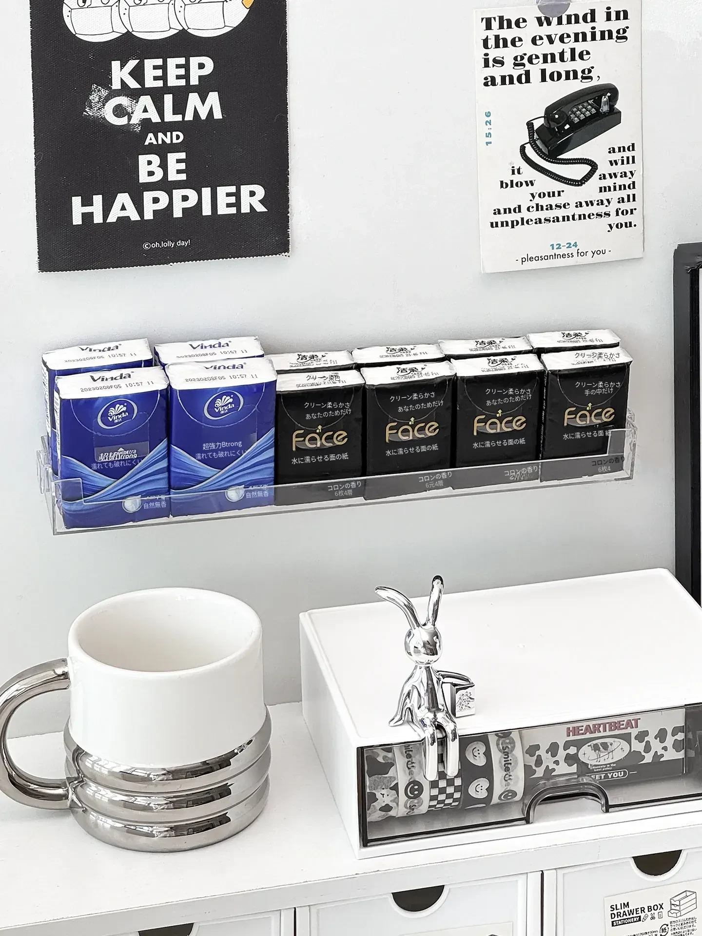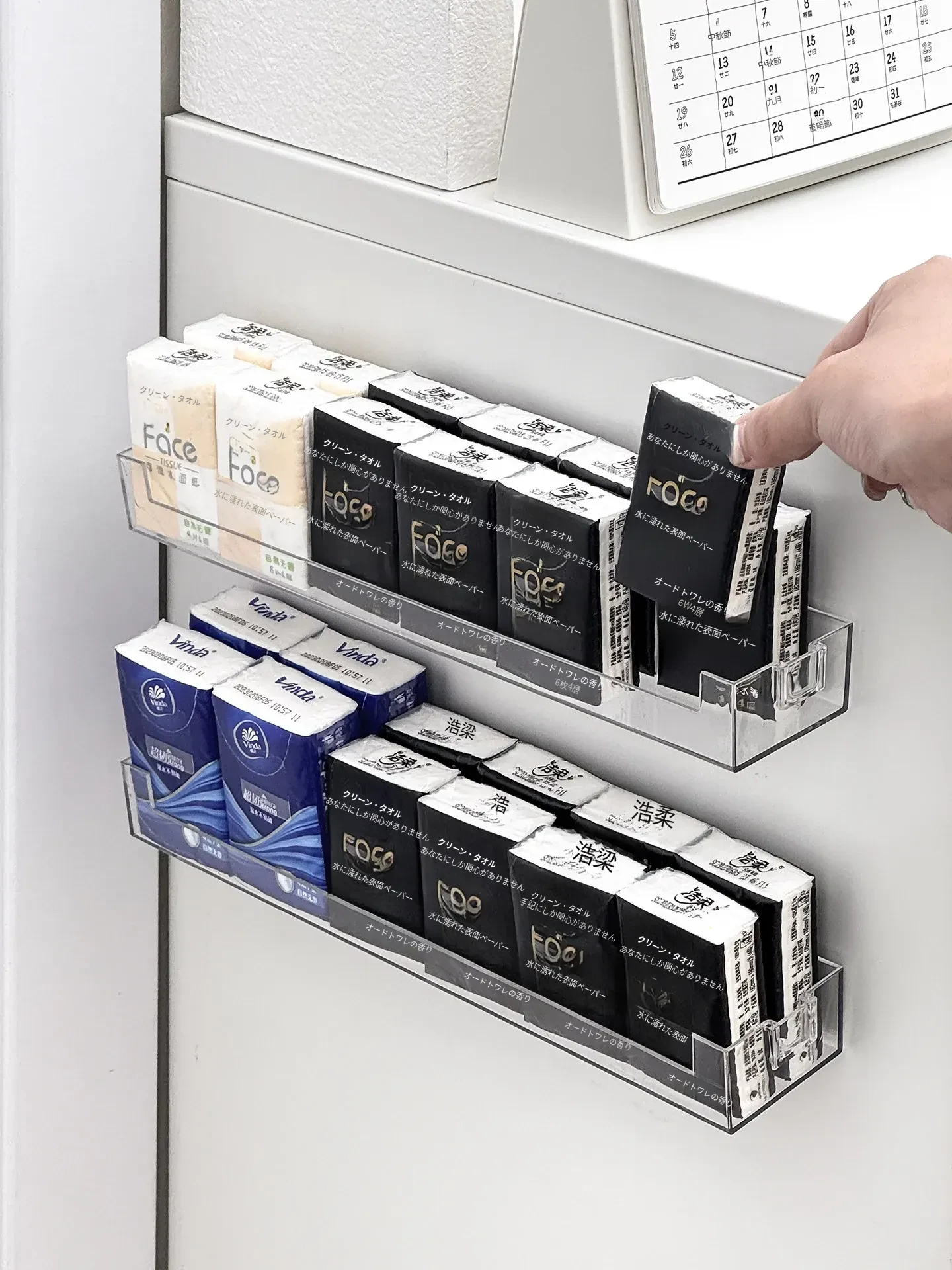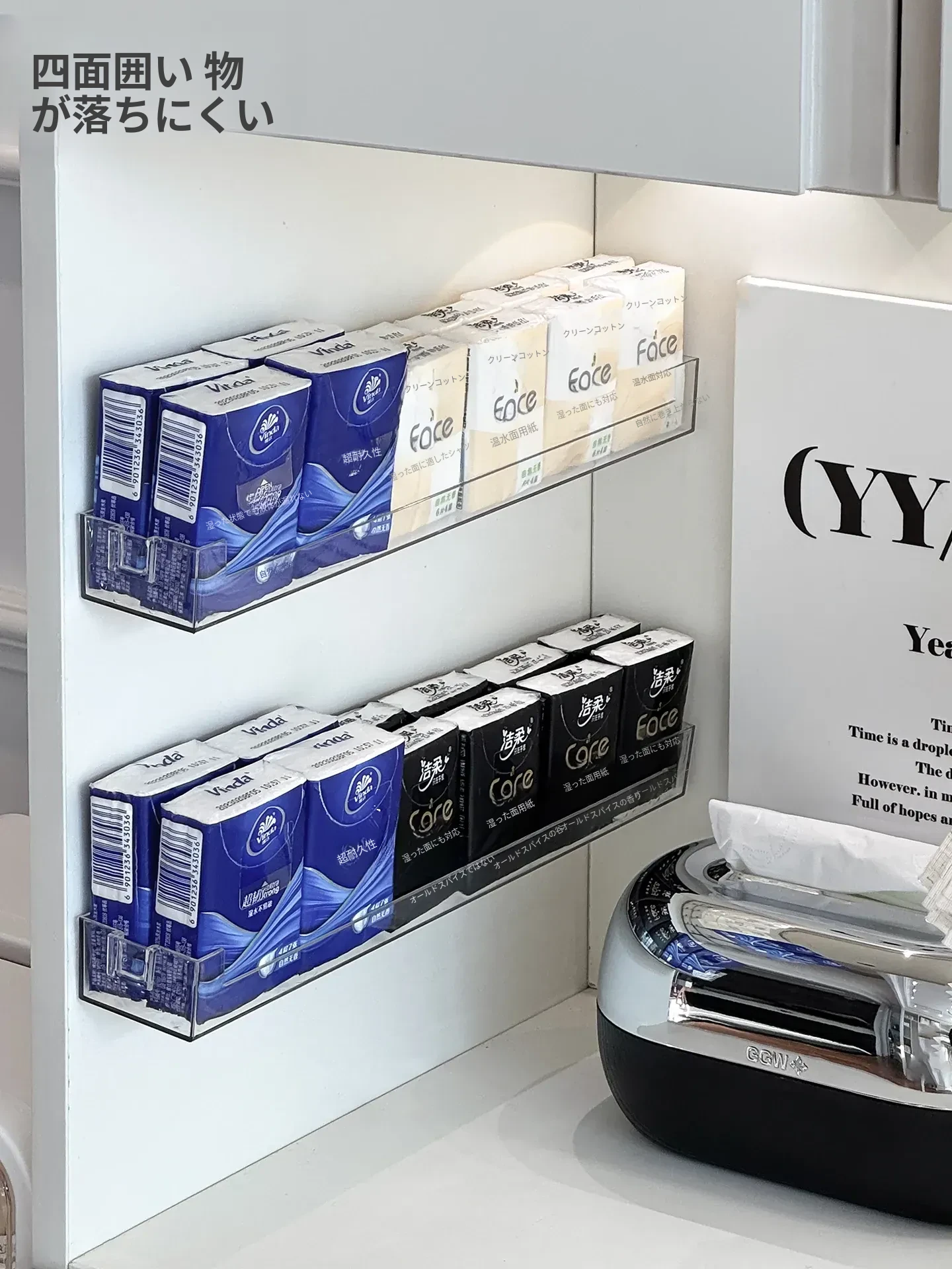 玄関用ハンカチティッシュ収納ボックス 壁掛け式 スマート小物入れ ナプキンホルダー ドア整理 取り付け不要のティッシュケースでスッキリ収納!