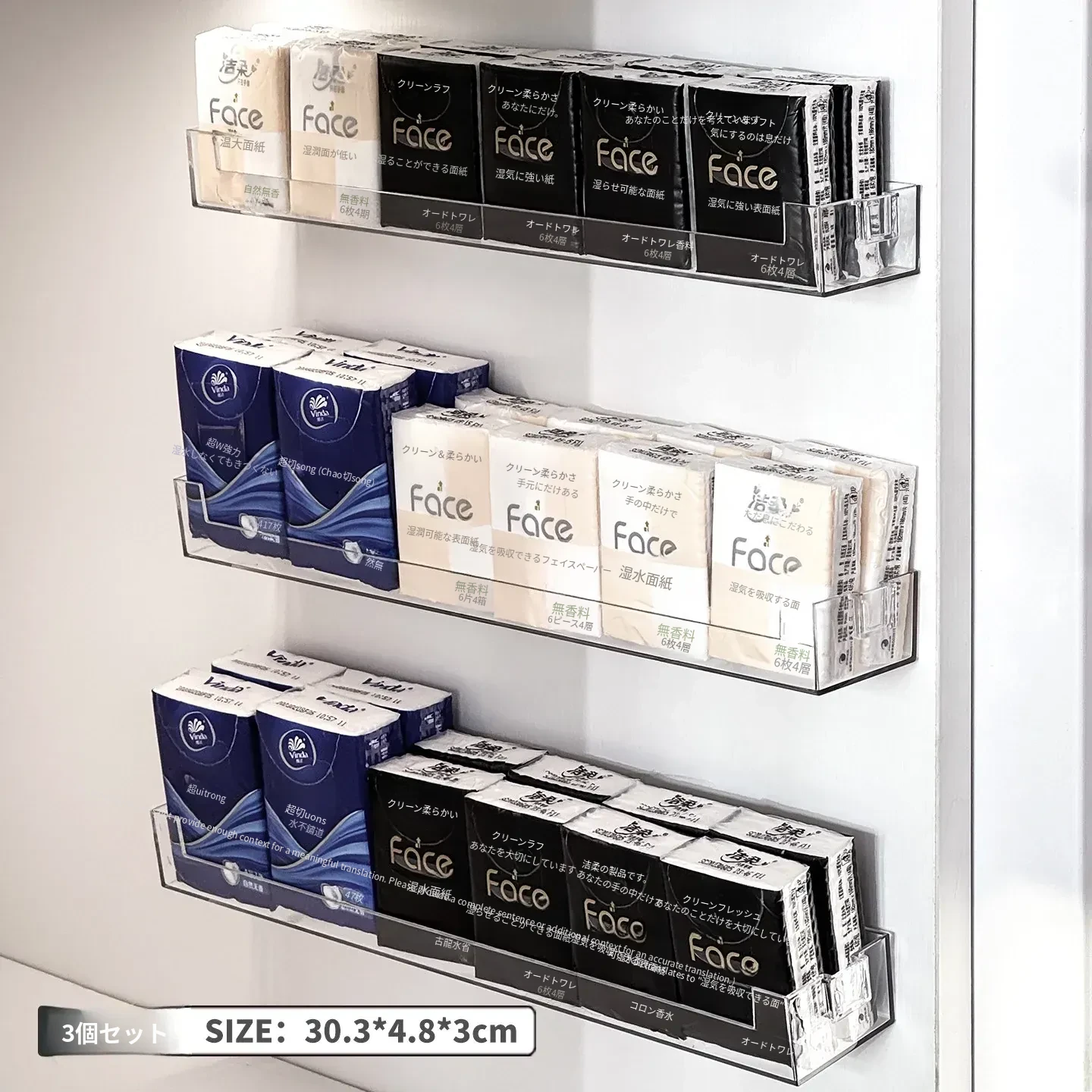 3個入り【穴を開けずに壁掛け/四面囲い】ティッシュペーパー収納ボックス SF379MN