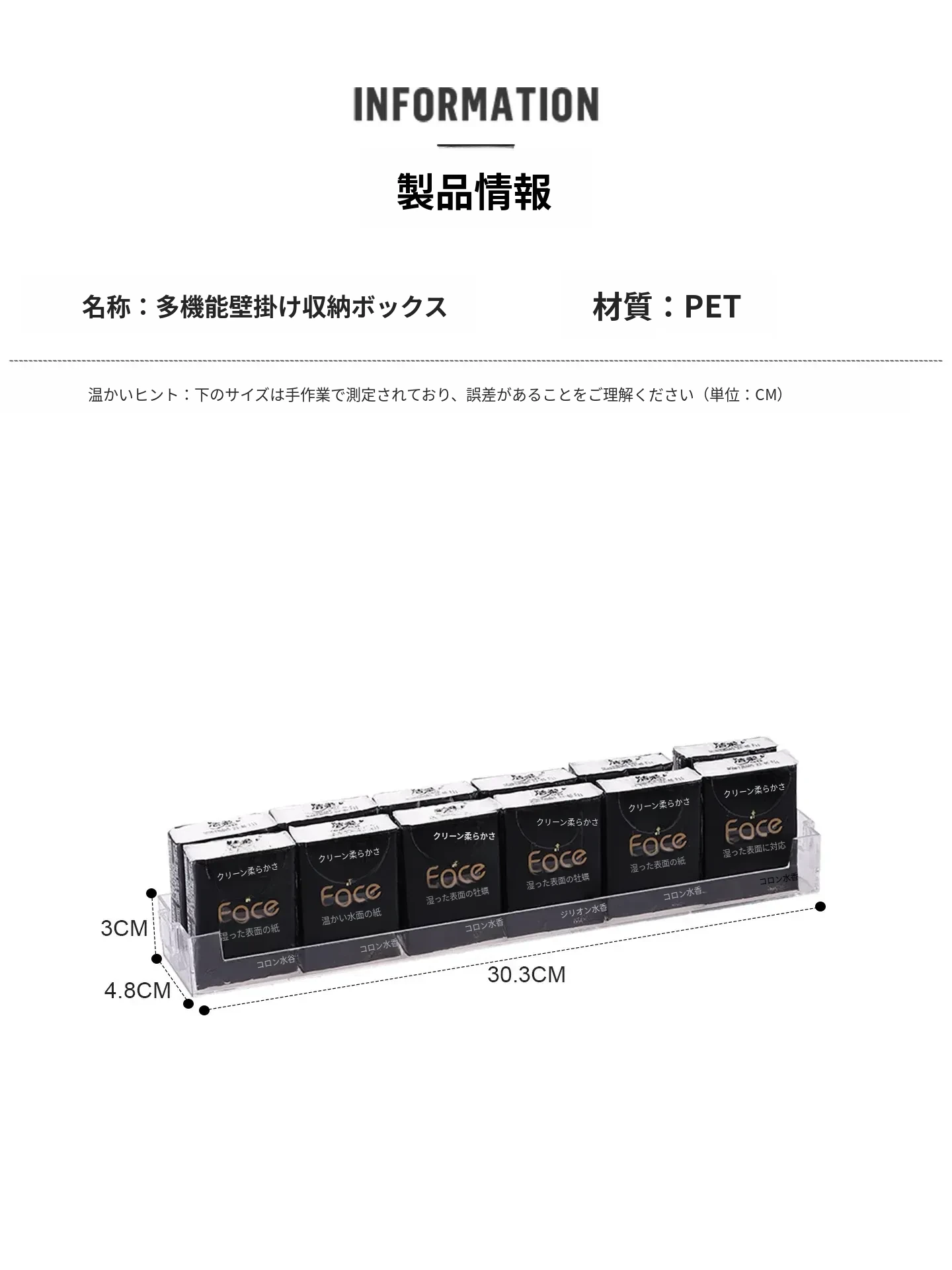 1個入り【穴を開けずに壁掛け/四面囲い】ティッシュペーパー収納ボックス DF-6899
