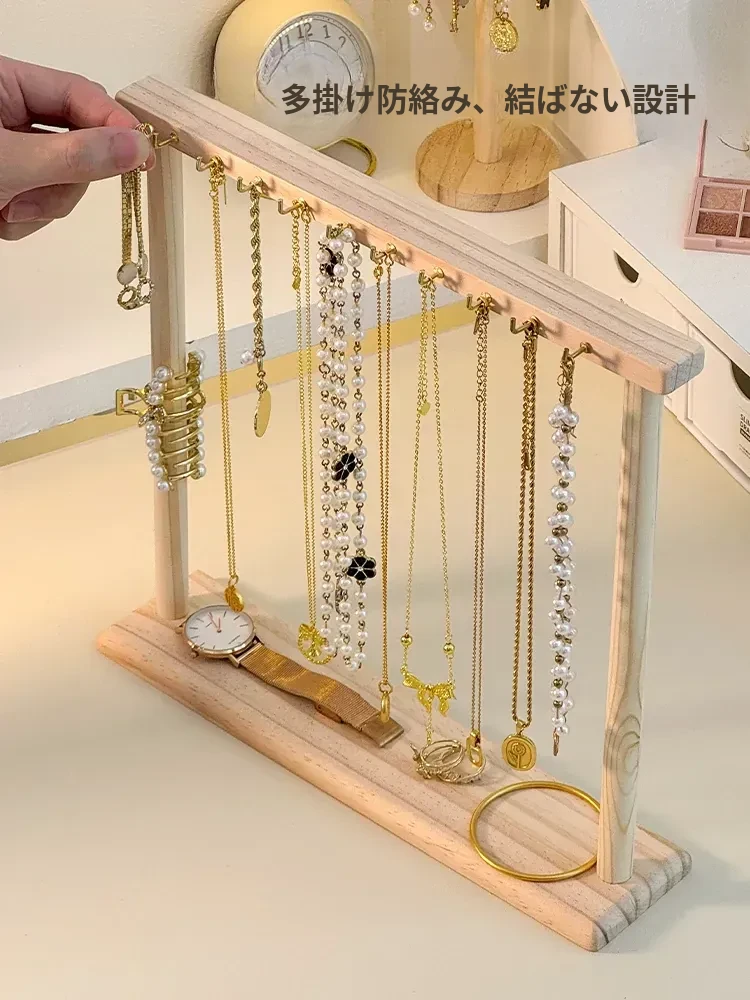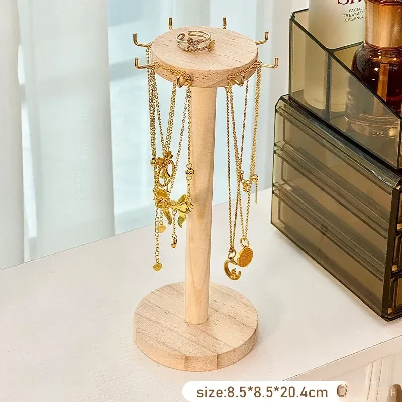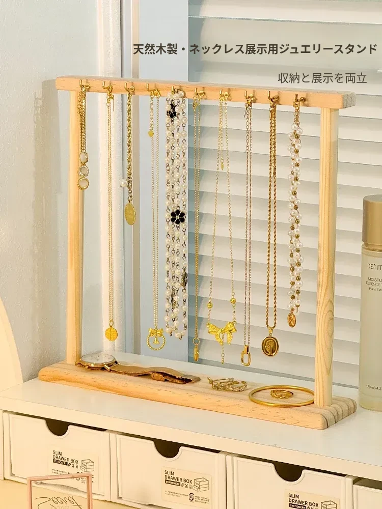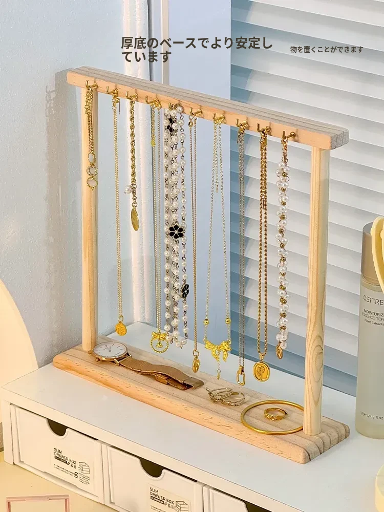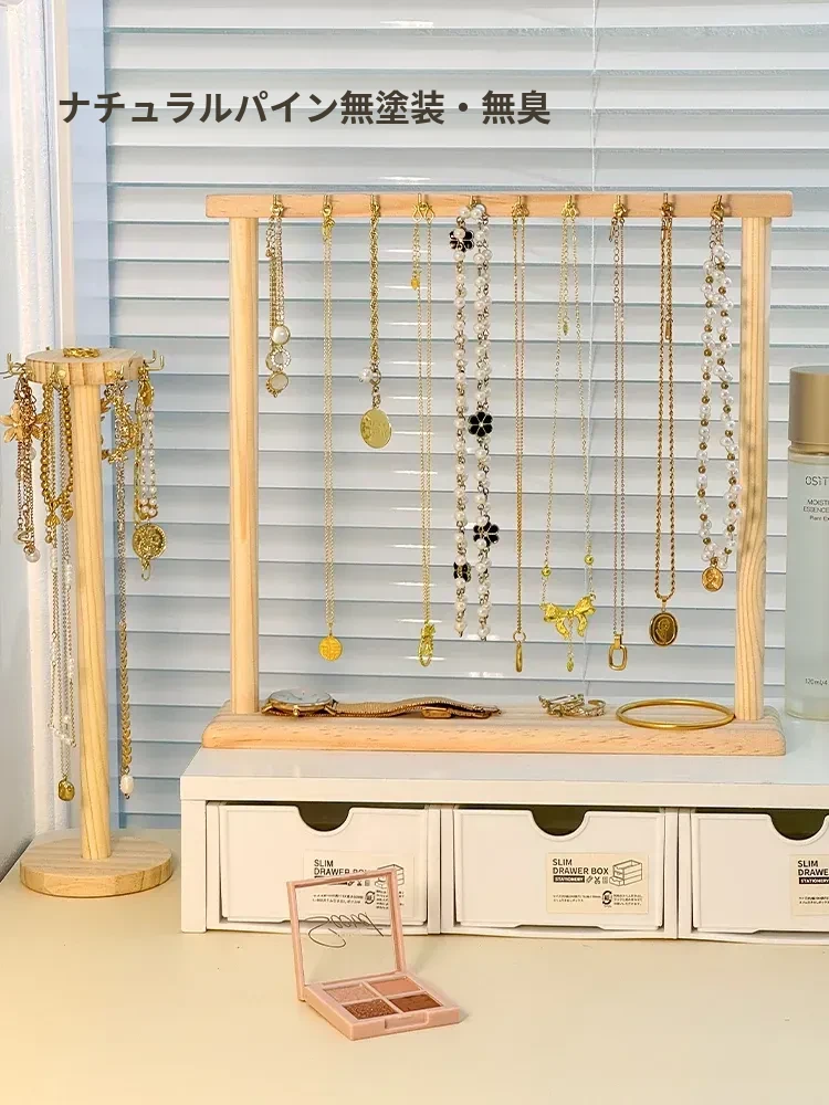 木製ネックレスディスプレイスタンド - デスクトップ用のブレスレットやチェーン、フック付きのアクセサリー、イヤリングを美しく飾る収納ボックス!魅力的なインテリアで、あなたのジュエリーを引き立てます!